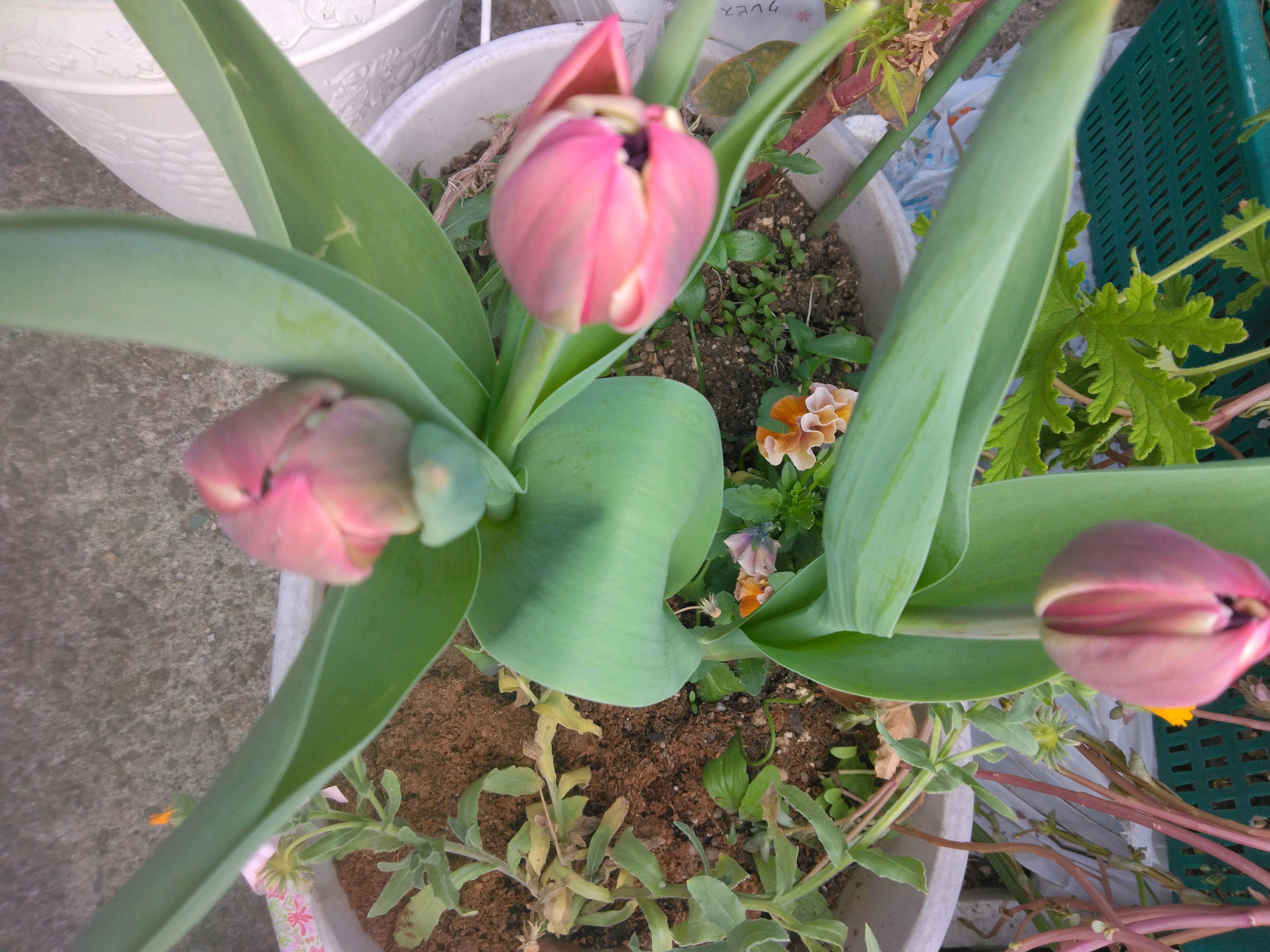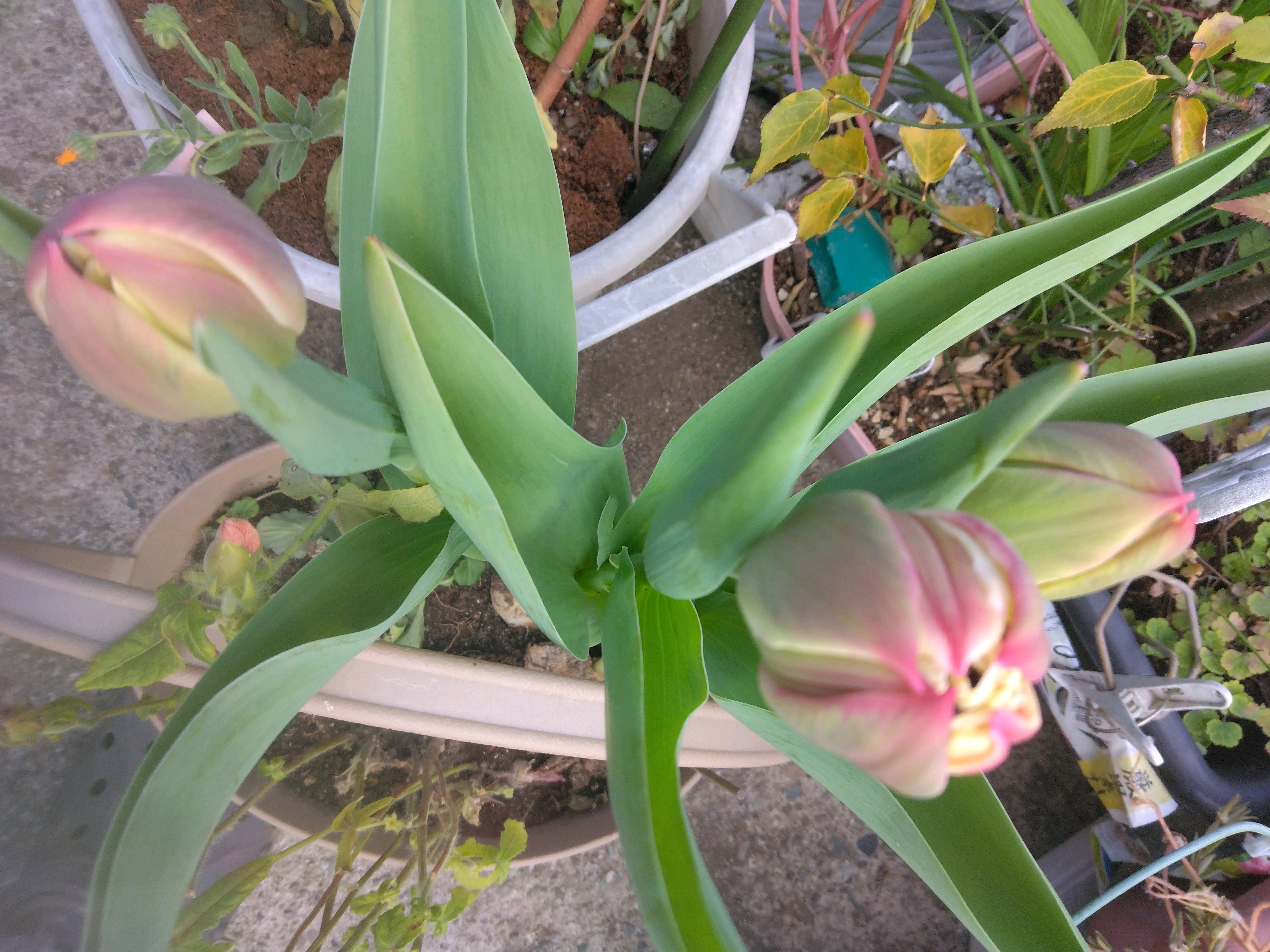 届いてから数週間後に開花するという アイスチューリップコロンブスです。