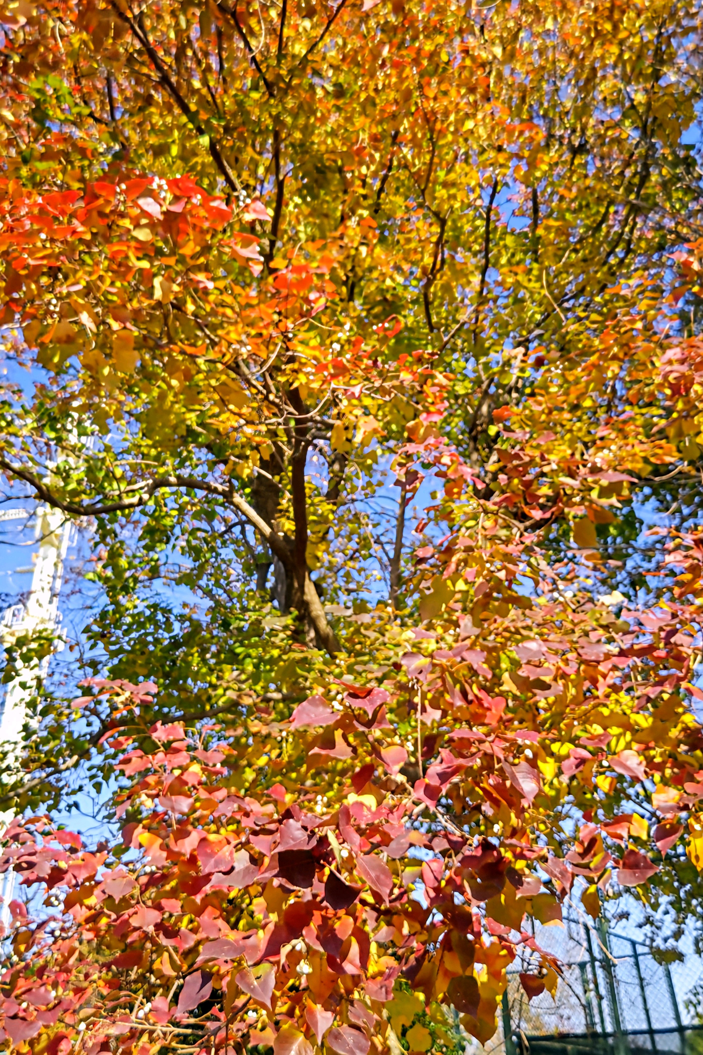 ナンキンハゼの大きな木も紅葉が進んで。