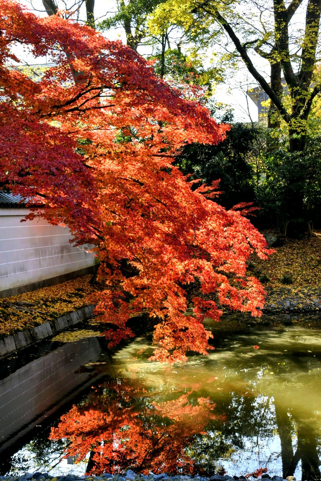 日が差して池の水面に映る紅葉🍁がとても綺麗でした✨✨‼️