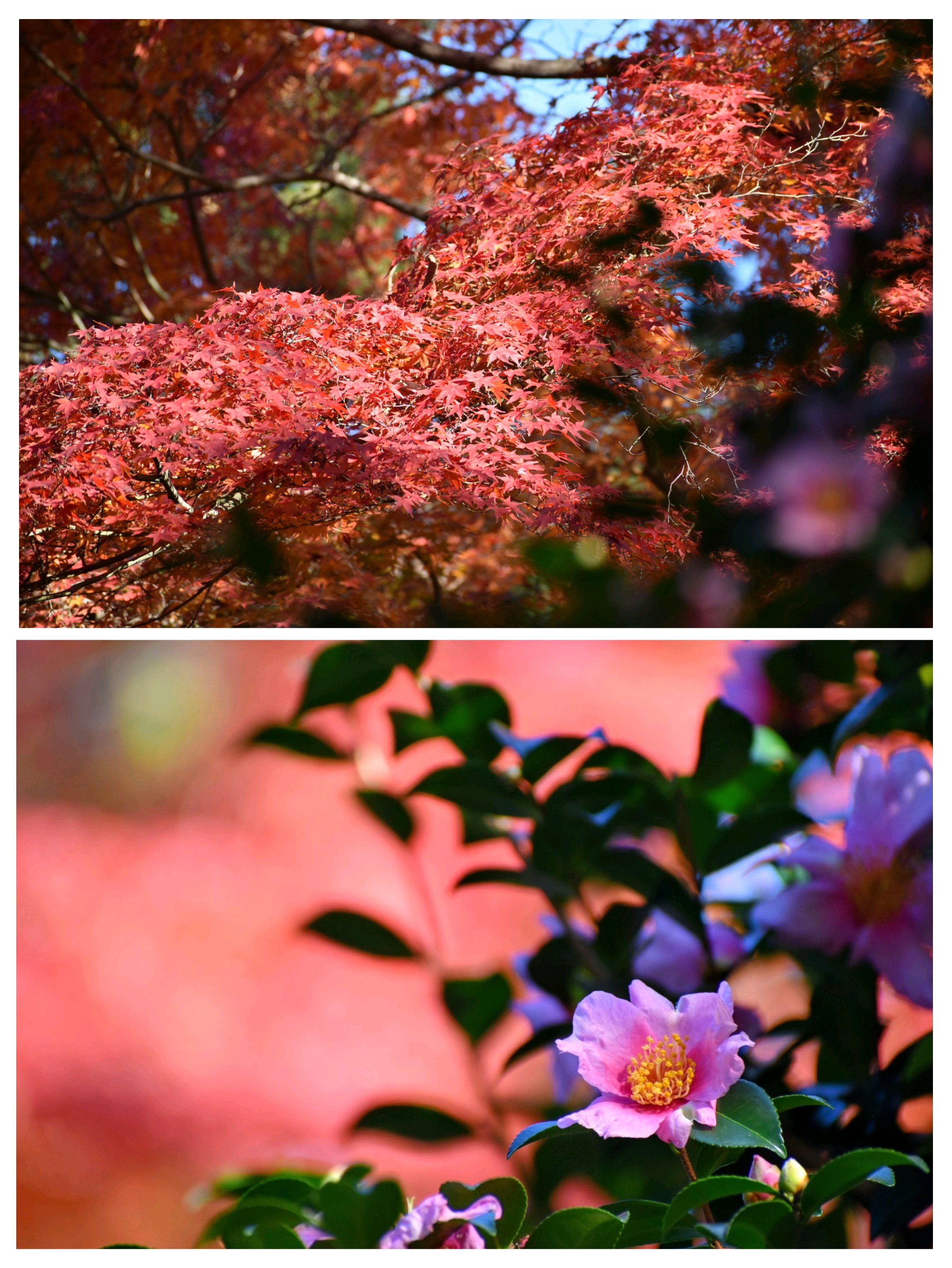 上のpicは紅葉🍁に、下のpicはサザンカに焦点を合わせて撮ってみました✨✨🍁
