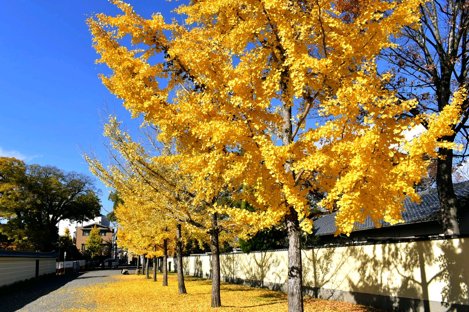 青空とイチョウ並木とイチョウの絨毯✨🤗