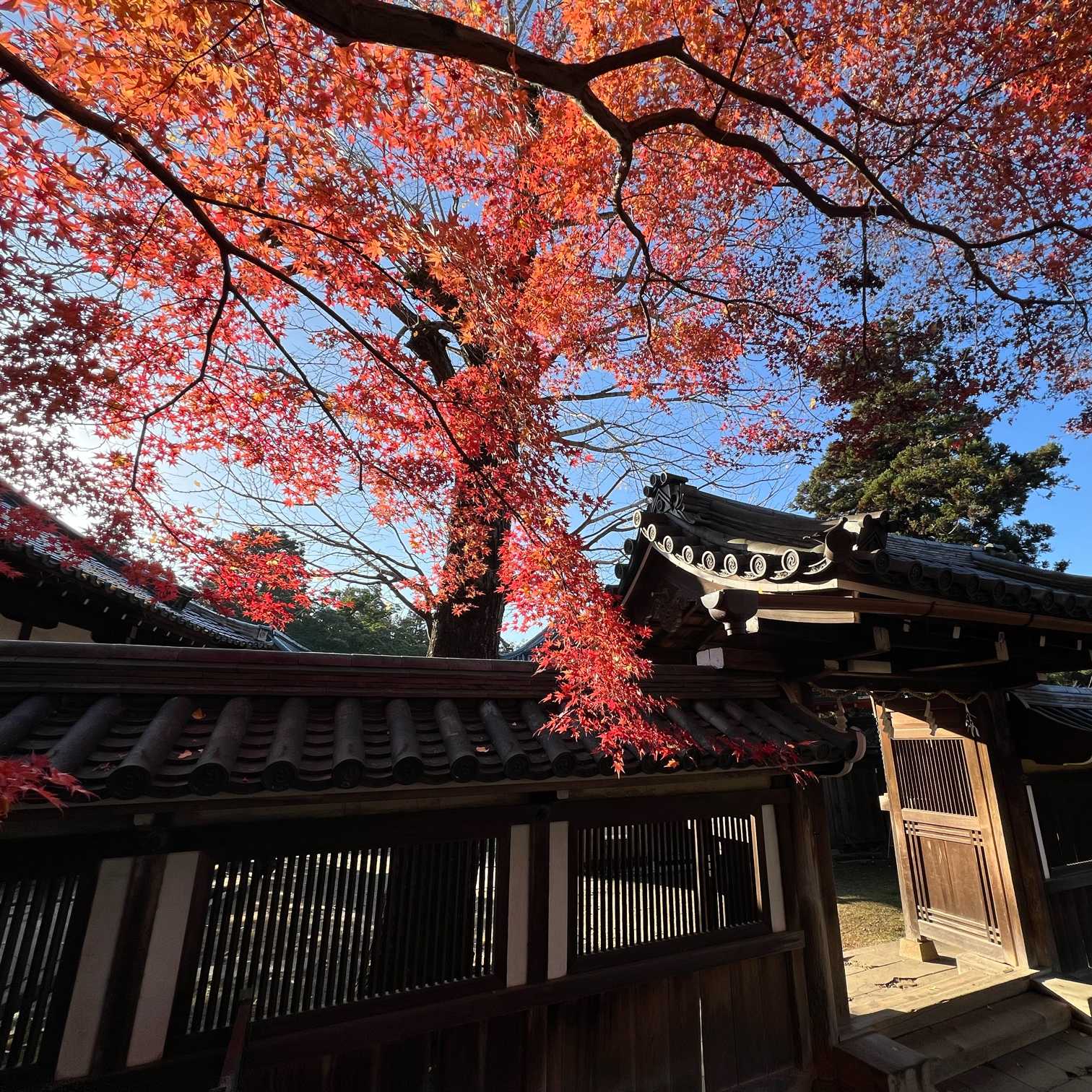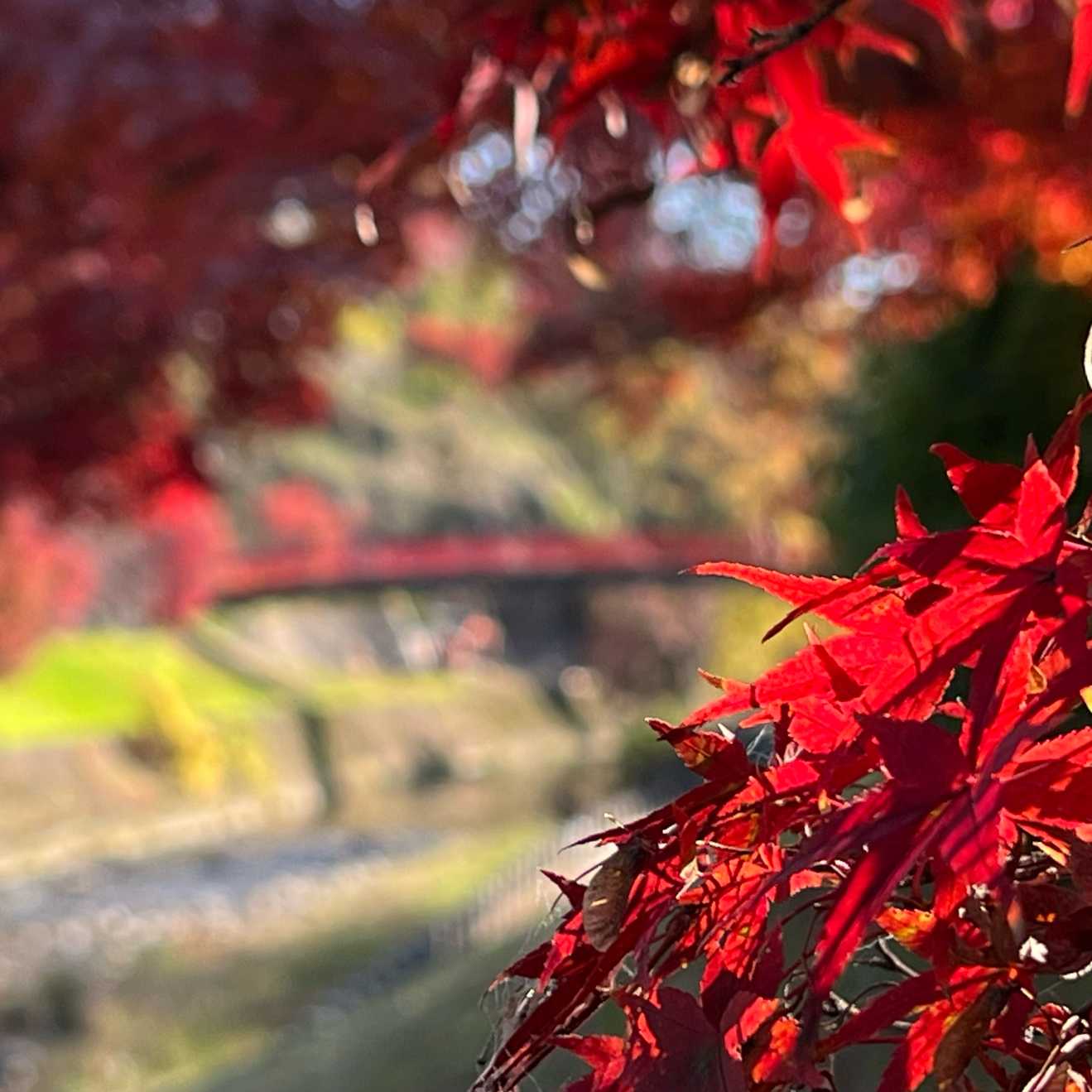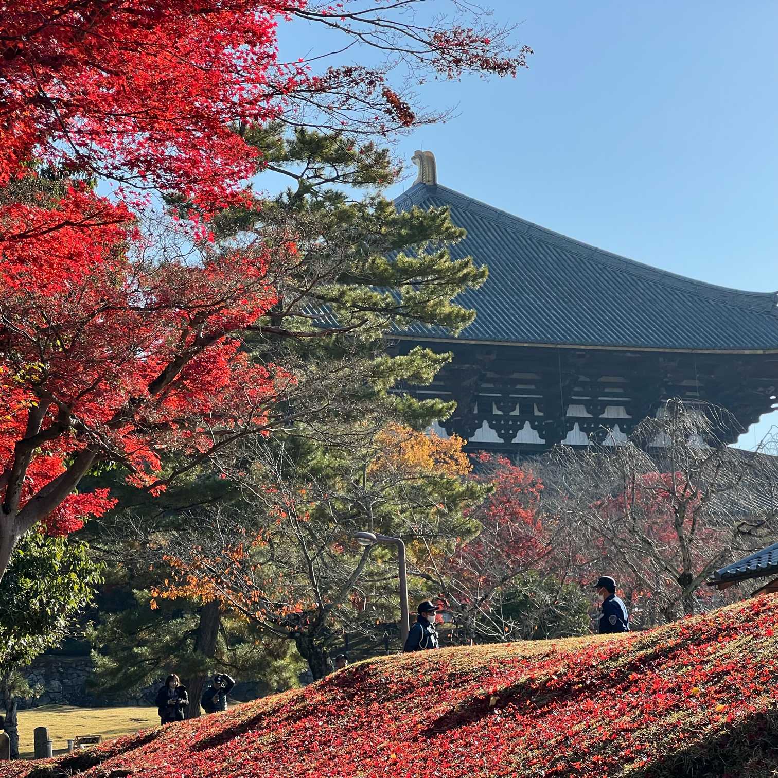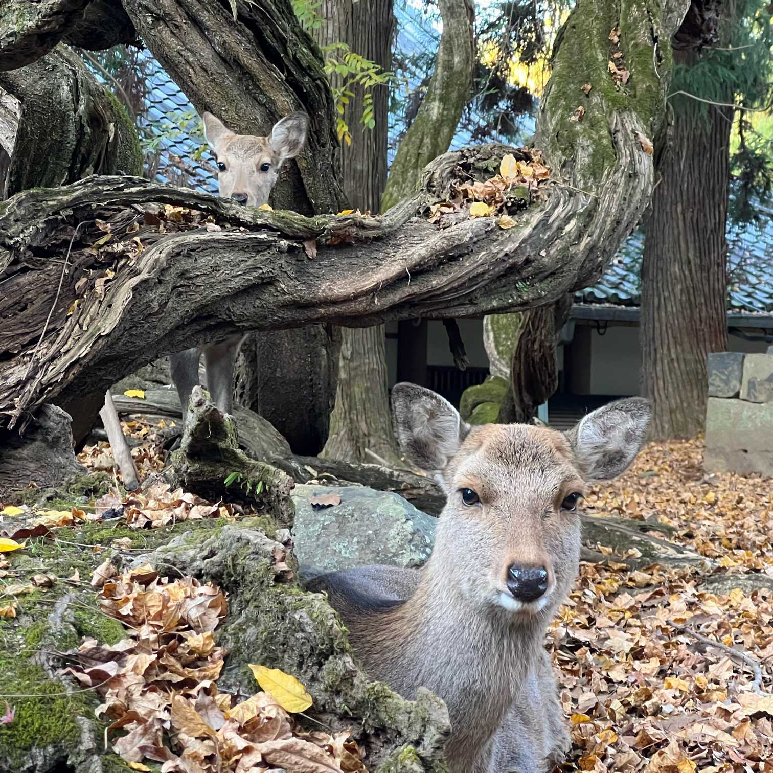久しぶりの投稿、真っ赤な紅葉🍁と鹿🦌、苔の上の散り紅葉🍁、良い雰囲気ですね✨️