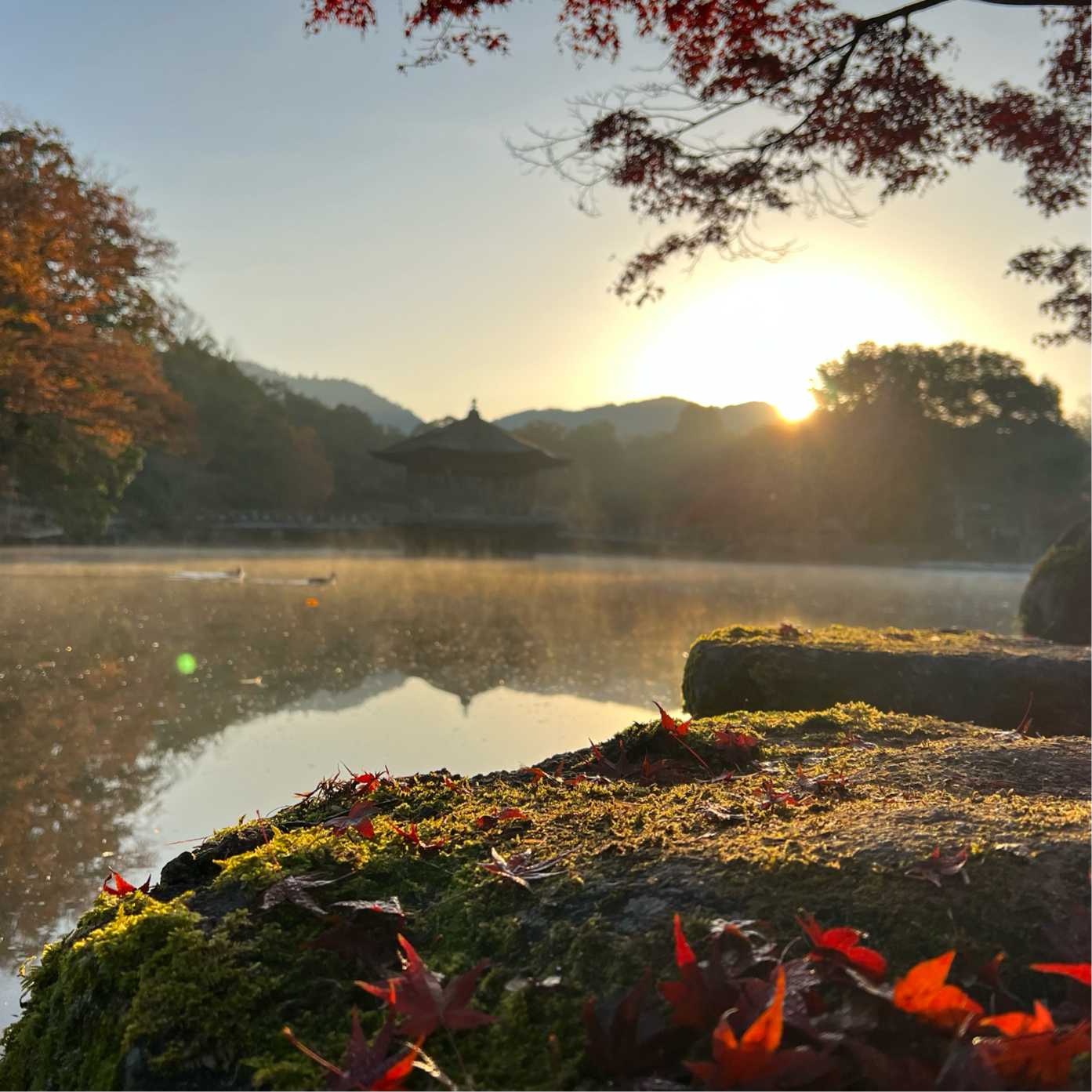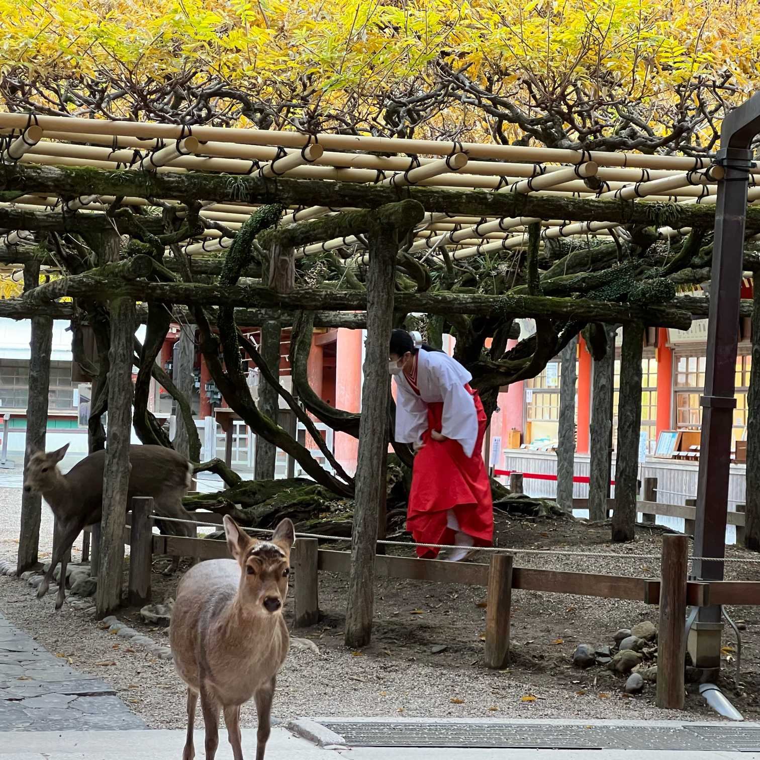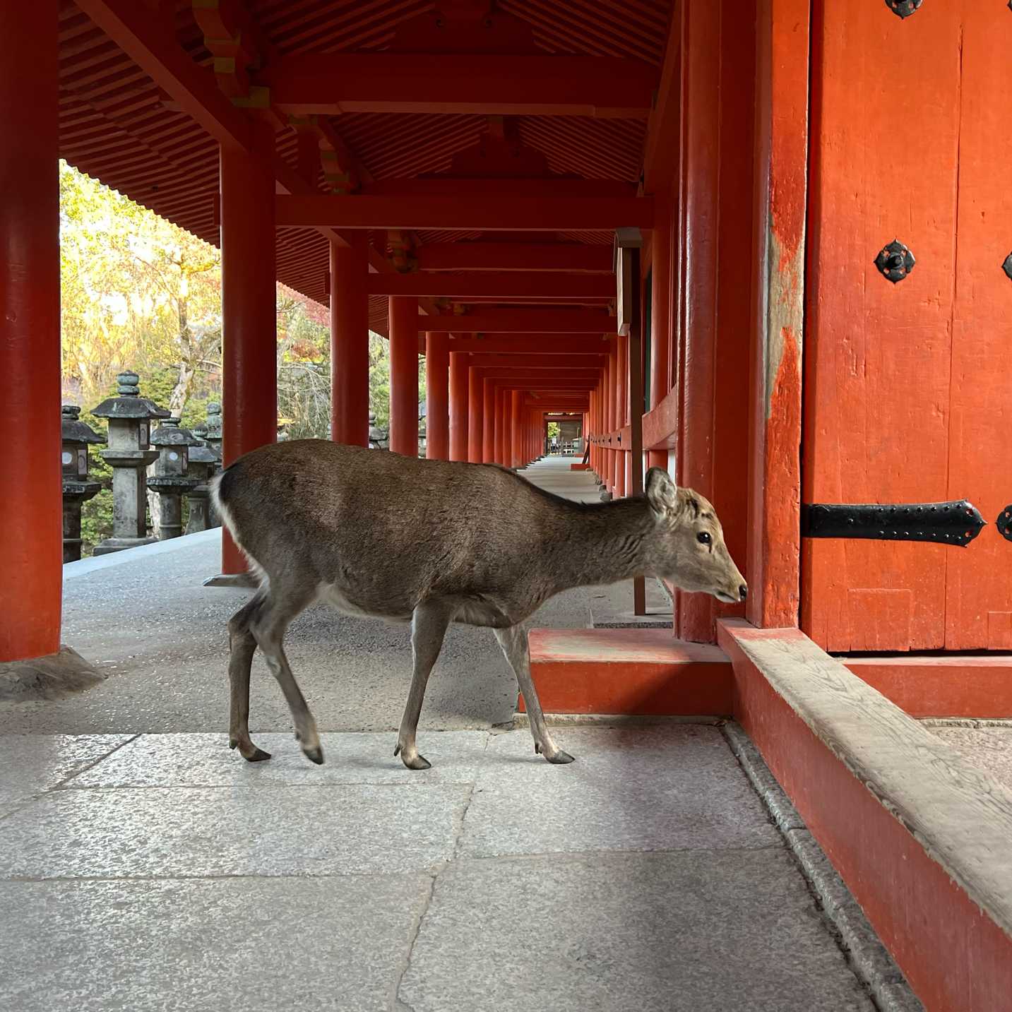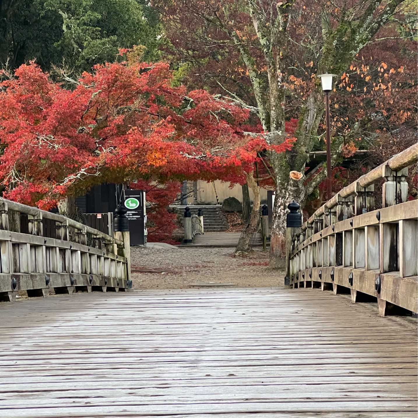 久しぶりの投稿、真っ赤な紅葉🍁と鹿🦌、苔の上の散り紅葉🍁、良い雰囲気ですね✨️