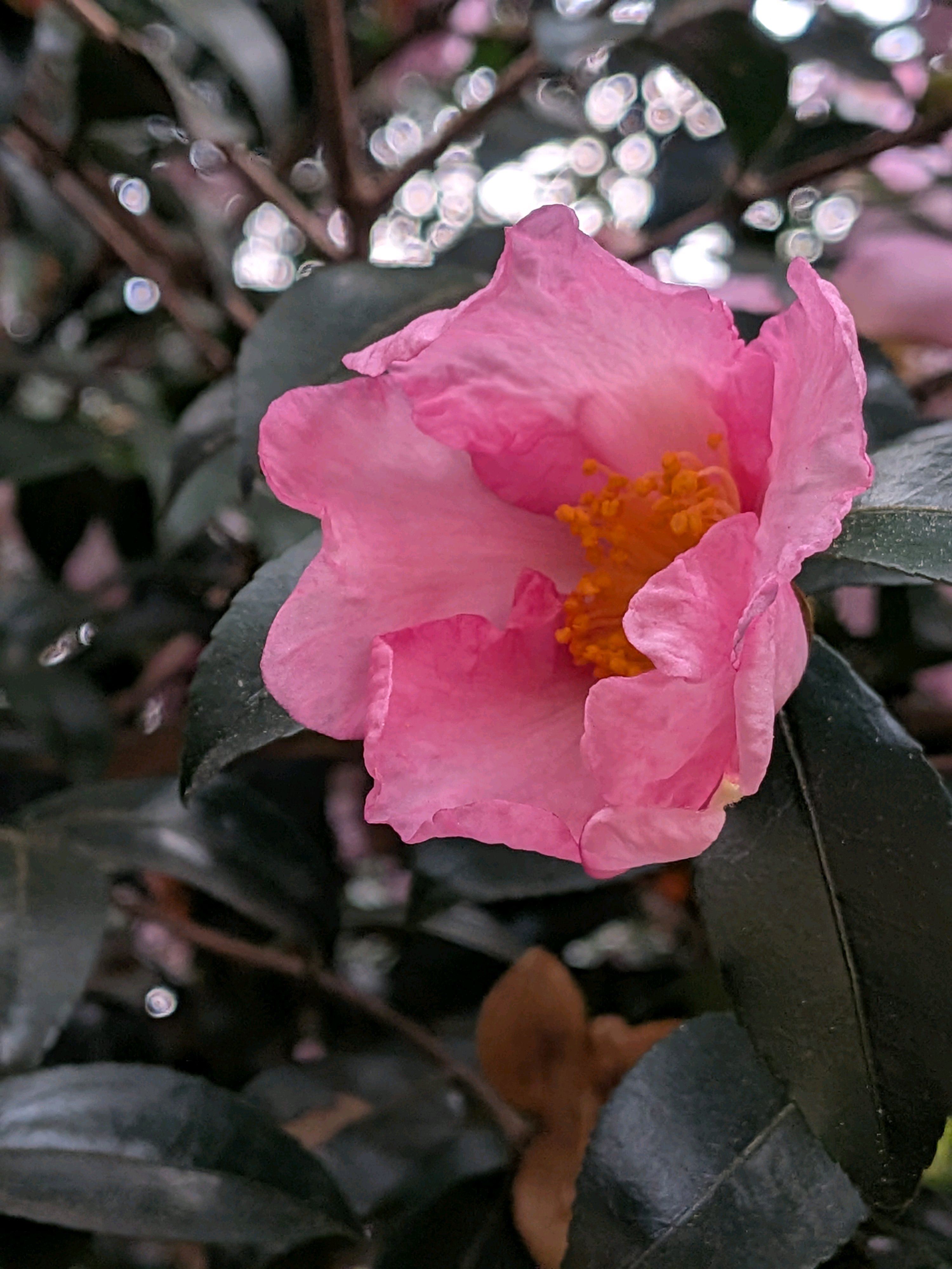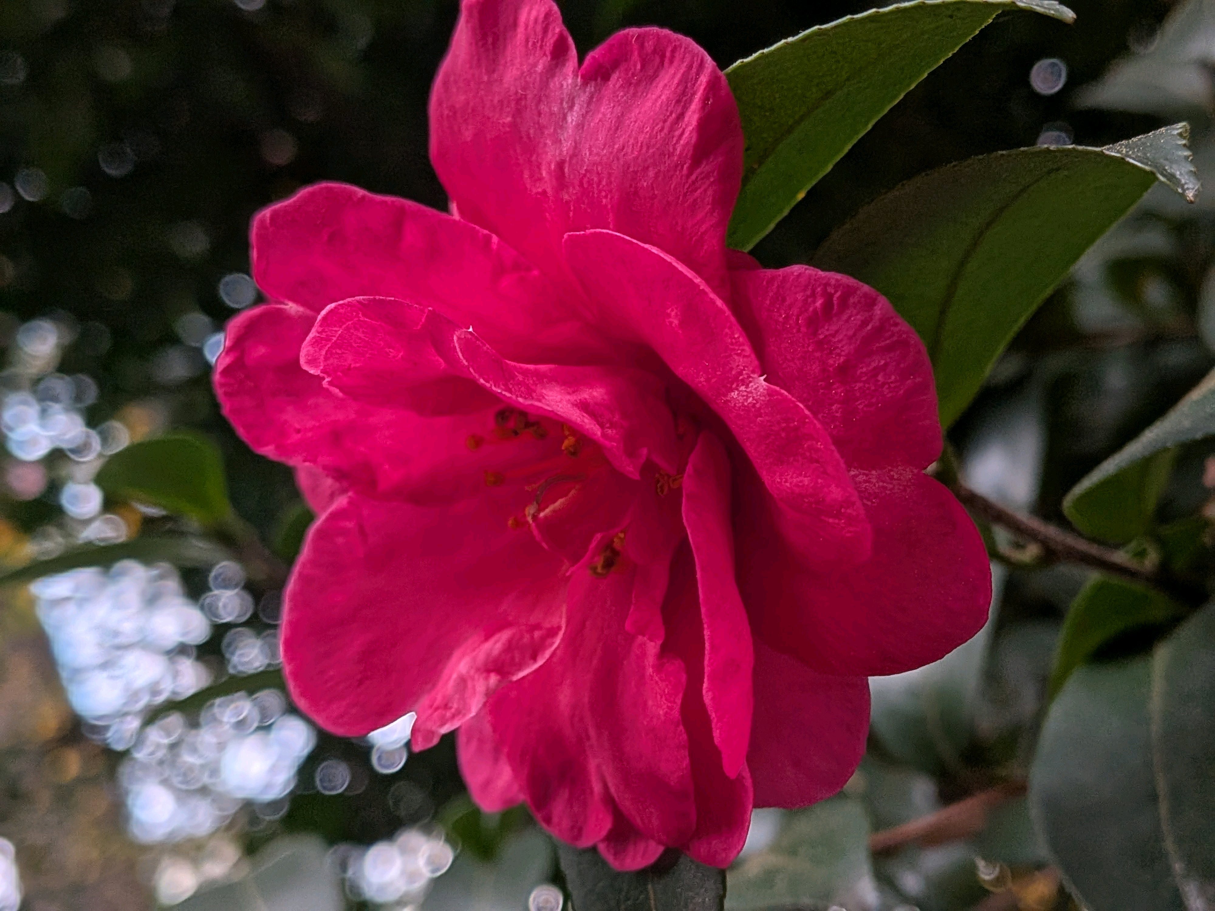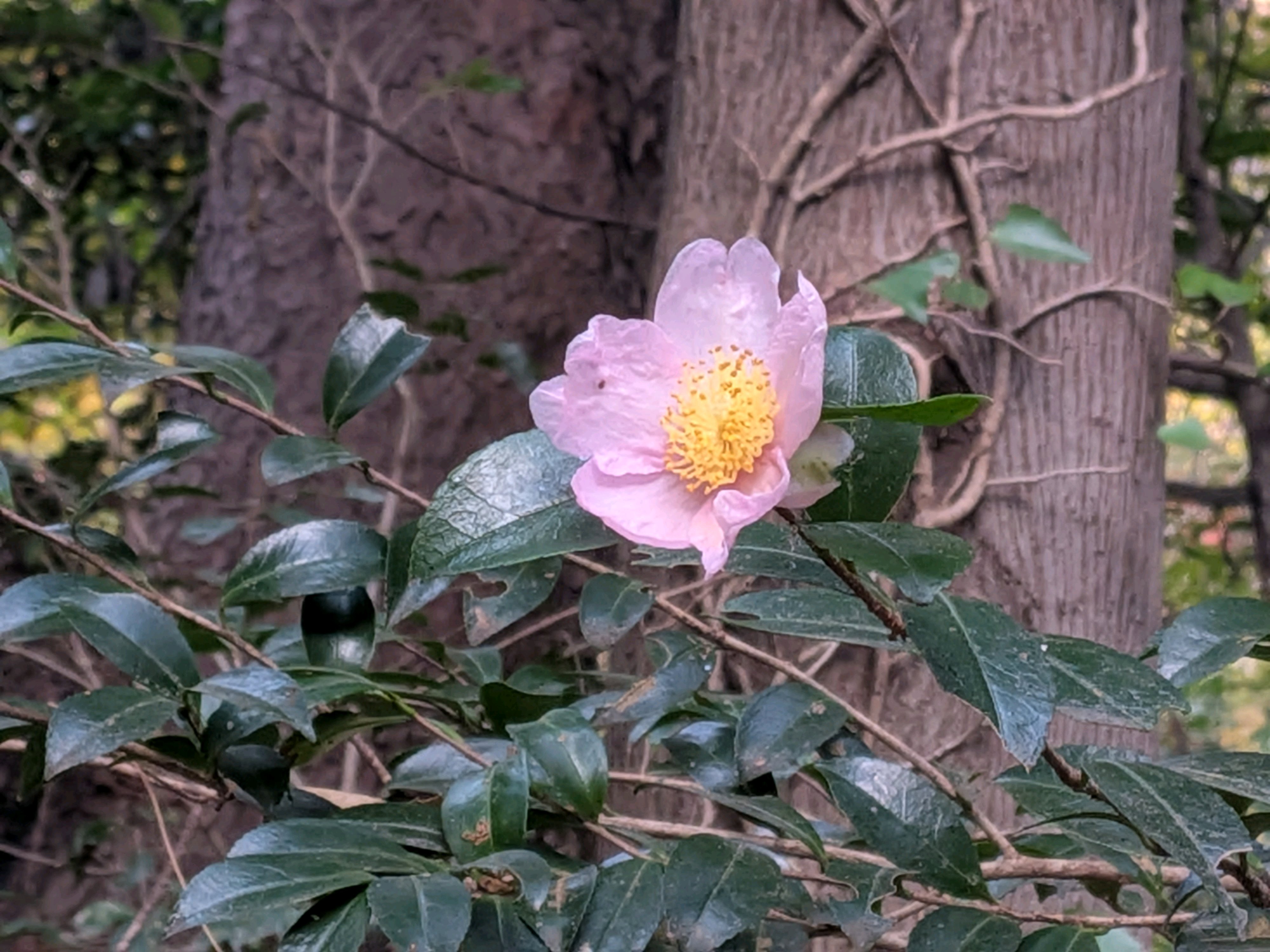 このサザンカの花びらの繊細な美しさが素晴らしい。