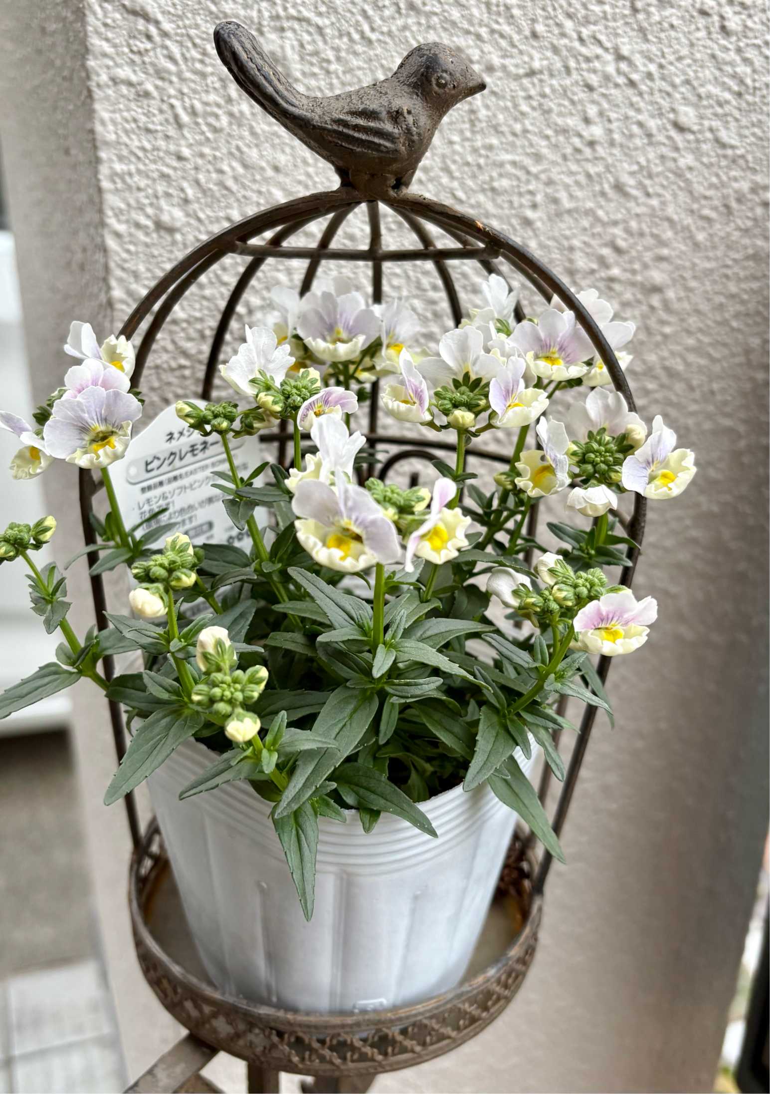 淡いピンクとほんのりレモンイエローの落ち着いたカラーのネメシア。