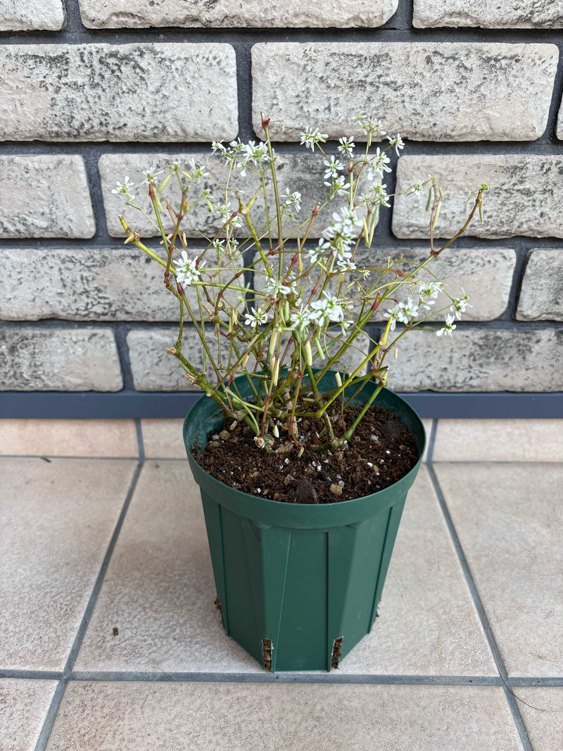 ふわふわっとしたエアリー感がある花姿なので、白い陶器鉢に単独植え。