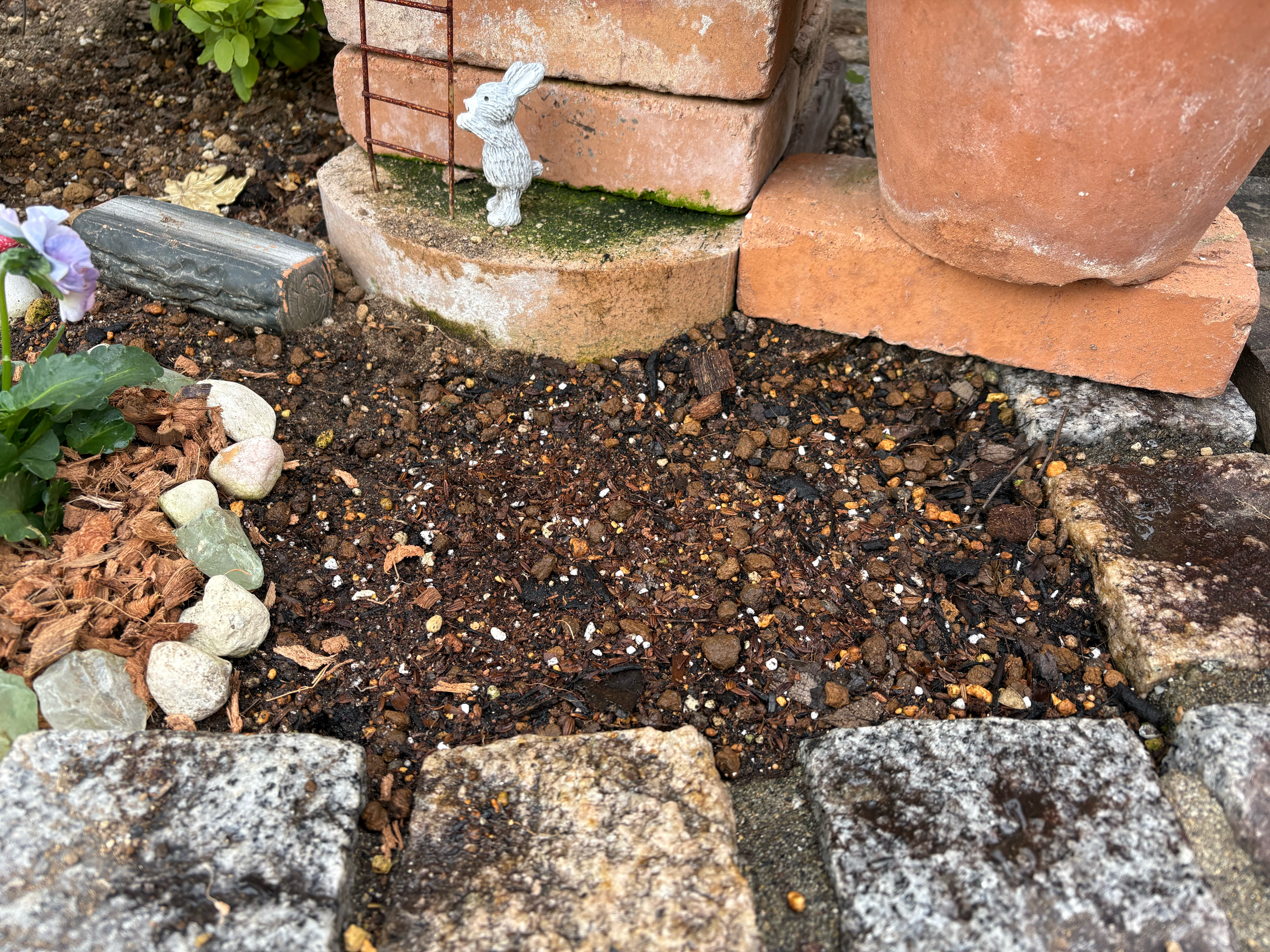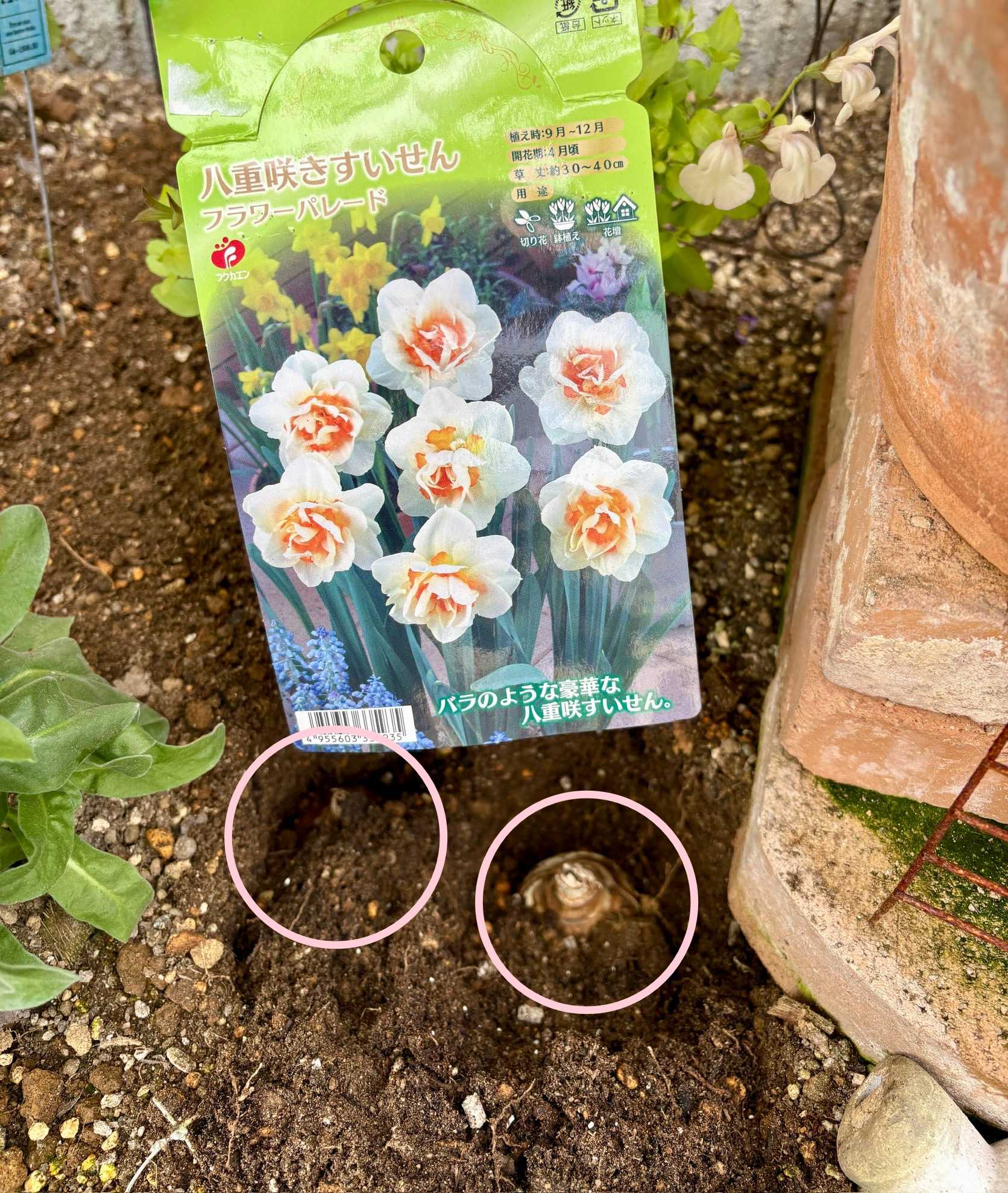 チューリップの球根の上にさらに土を入れ、こちらの苗を植え込みました。