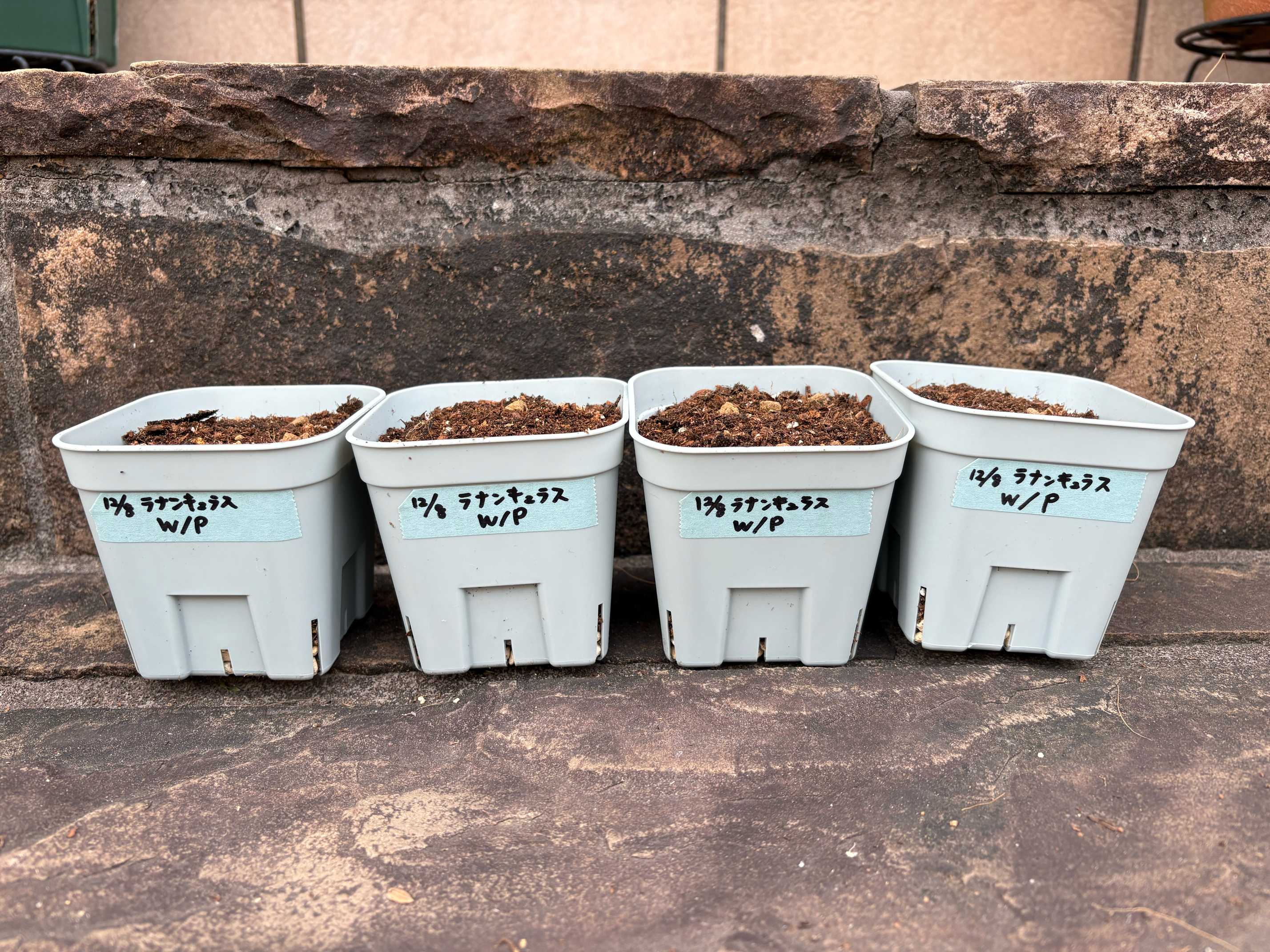 今回は、花色は淡いパープル、葉はシルバーから取った種のみを蒔いてみました!
