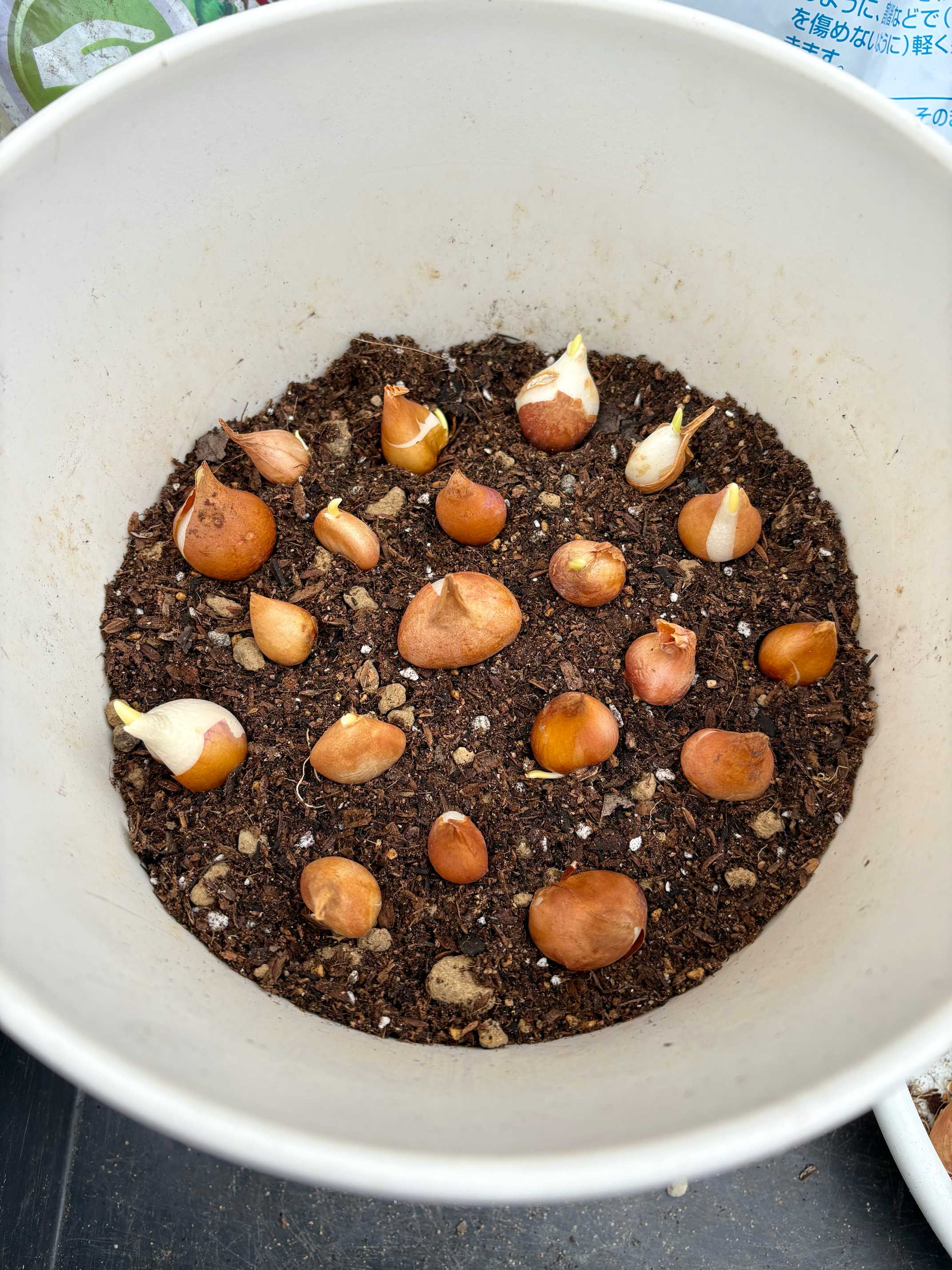 小さいものなどもありますが、残った球根をプランターにすべて植え付け!たくさん咲いてくれるといいな🎵