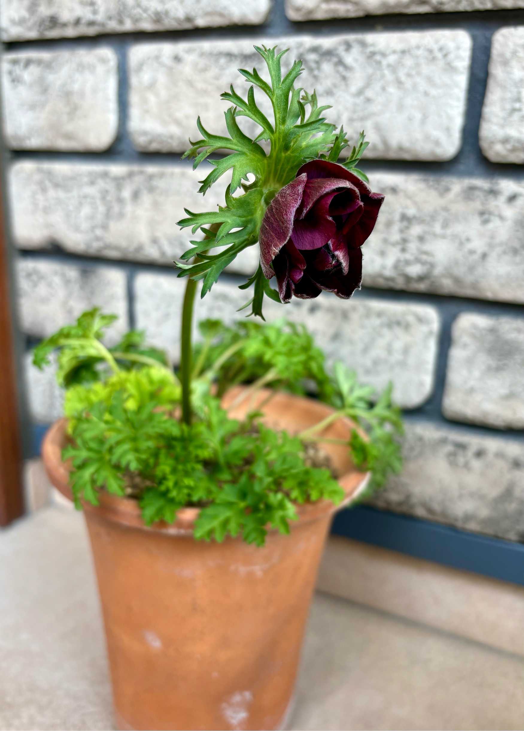 今年は、テラコッタの鉢に単独植えで育てることにしました。