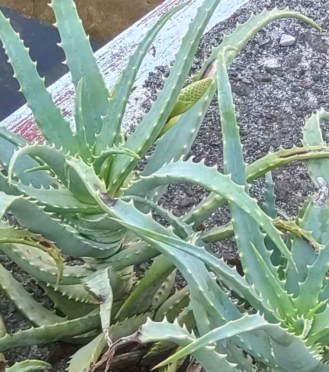 手すりに手をやった時に、こんなところにアロエがいたことを知りました。