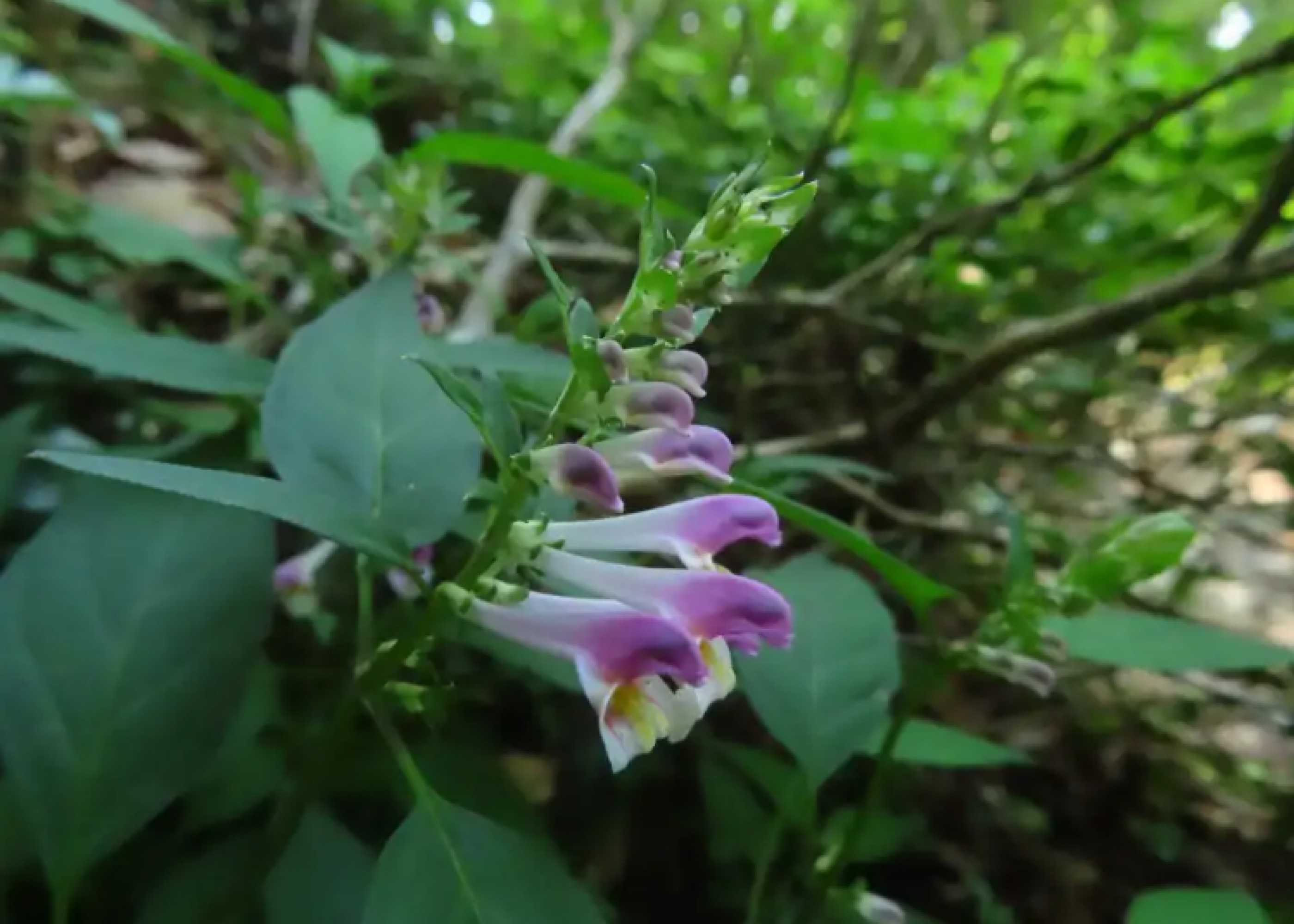 花期は8~9月頃で、紅紫色の唇形の花を咲かせます。