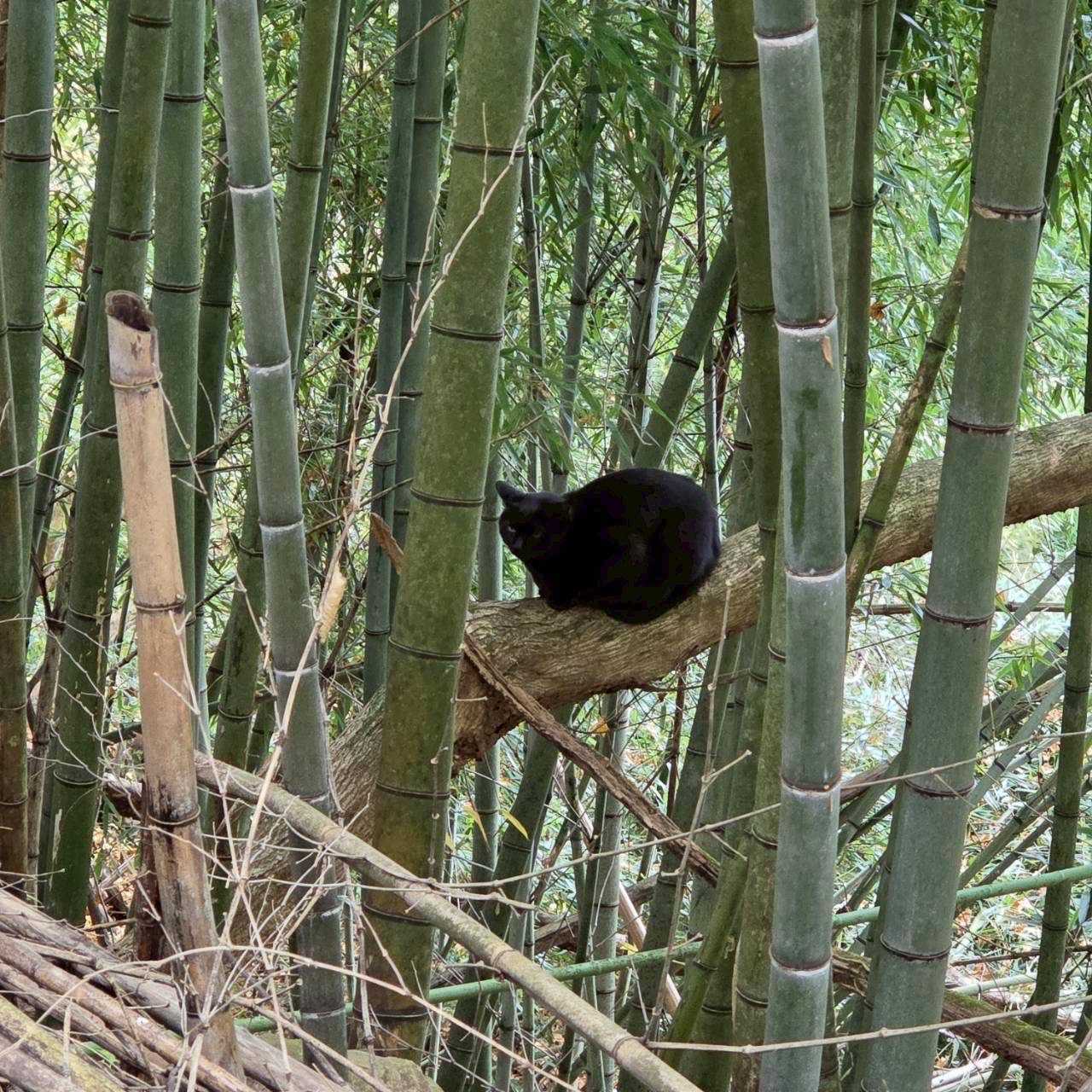 🌱日の出山に向かう途中の竹林に黒い影🫢💦よく見たら黒ネコちゃん😅