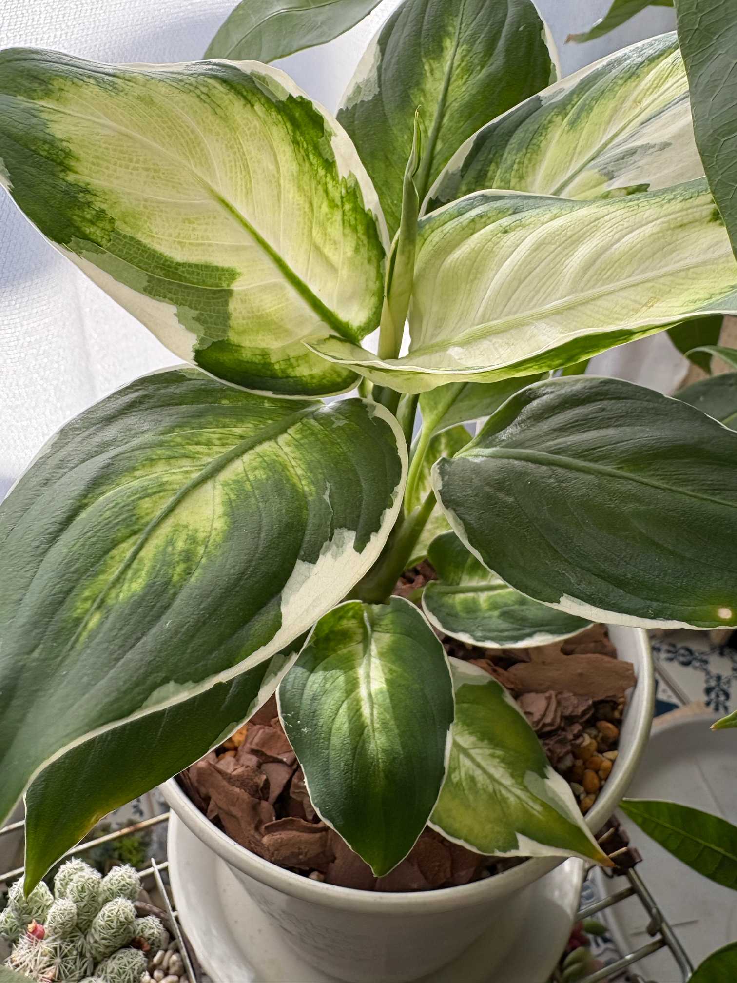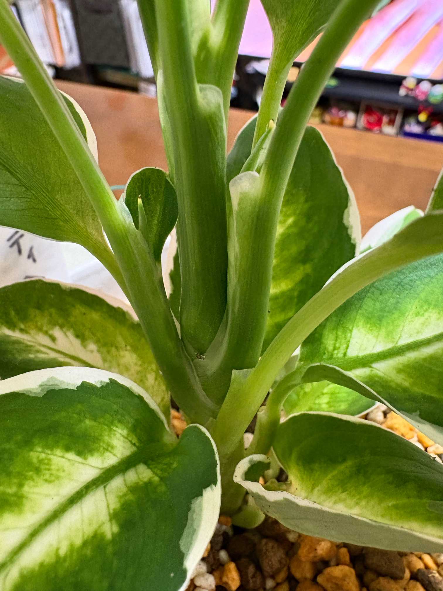 中心の葉っぱが伸びてきたのと隠れてますが下の葉っぱの付け根から新芽🌱が…