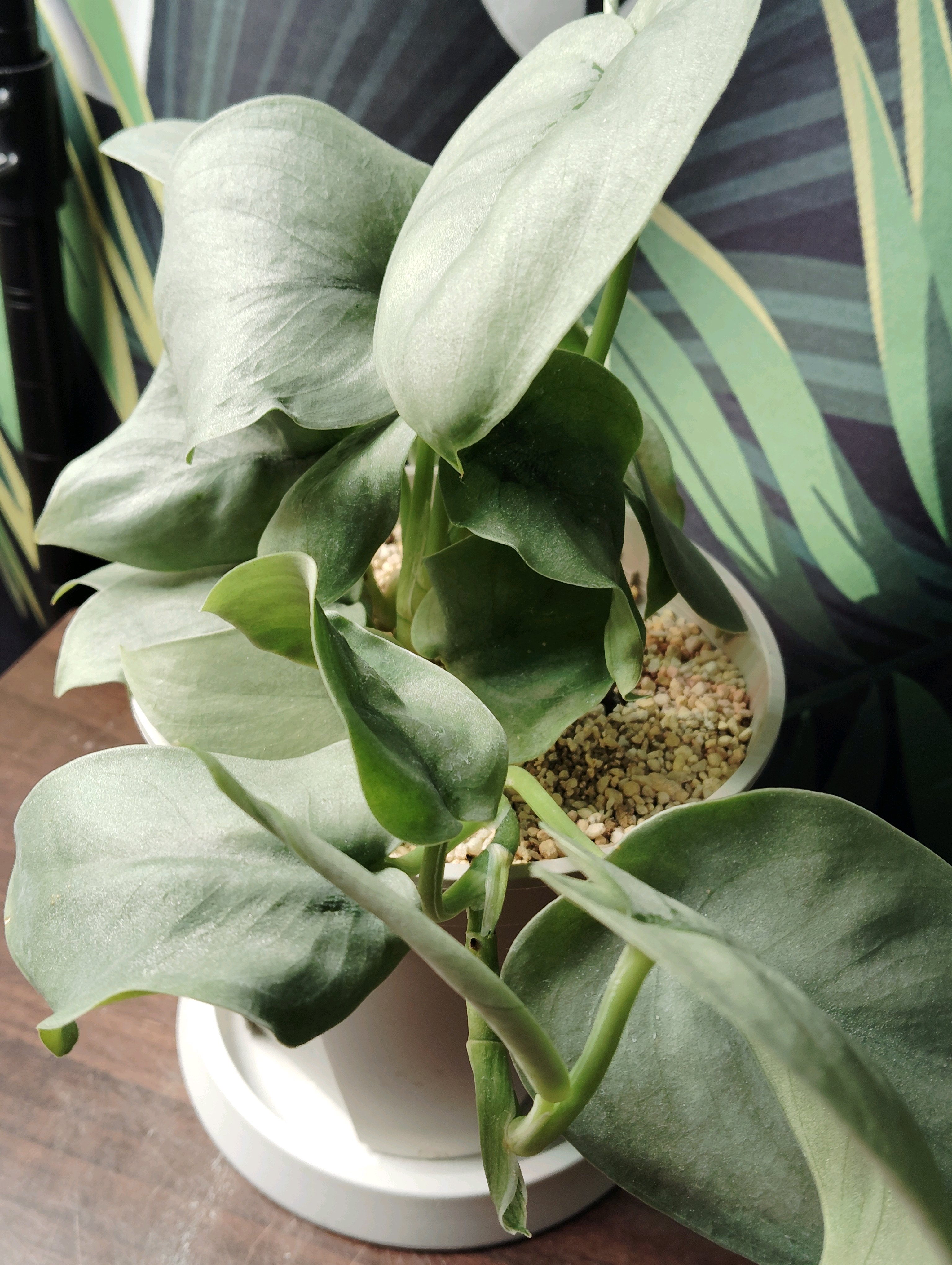 茎の色と同じまま新芽が伸びてきていましたが、今日見ると少し葉の色のシルバーっぽい色味が見える感じに変化していました。