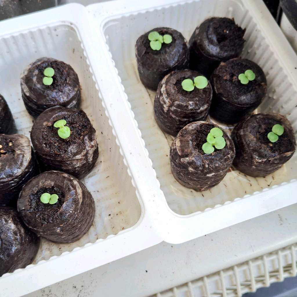 ポット上げの前は徒長のびのびで心配でしたが意外となんとかなるものですね。よかった!