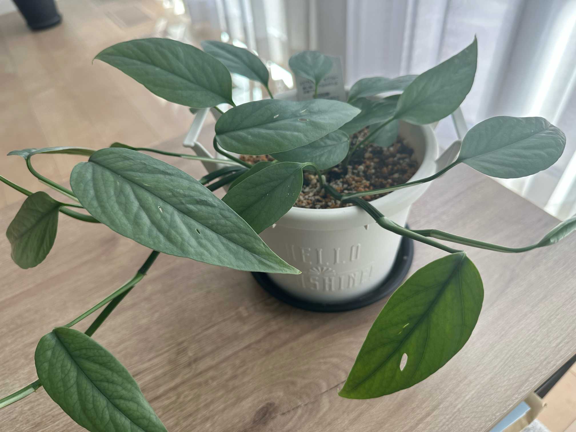 セブブルー の気になる切れ込みが艶のある葉に沢山見える。バランス良く穴🕳️が開いている。