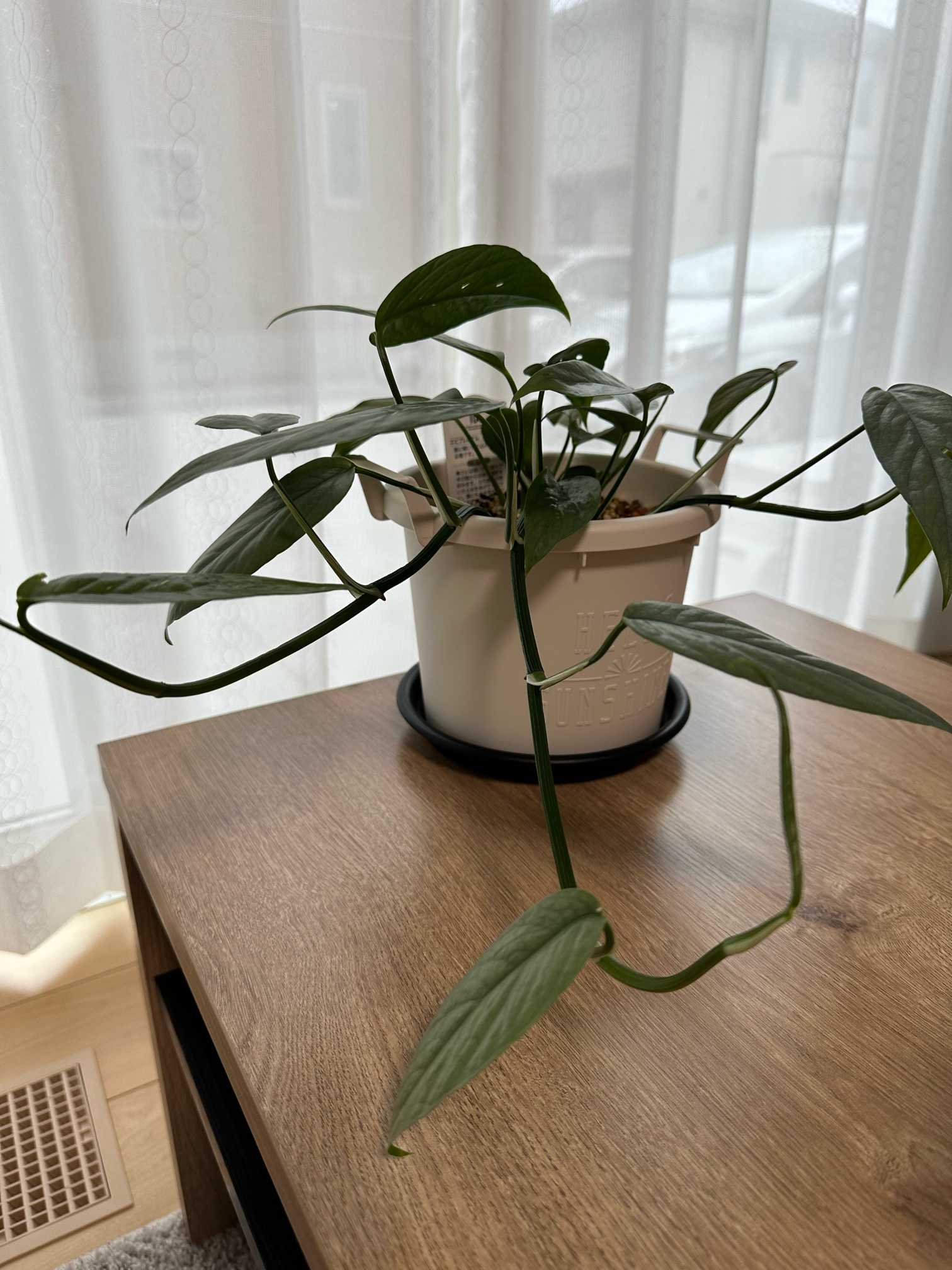 リビングでカーテン越しの太陽光をいっぱい浴びて、元氣に育っている。