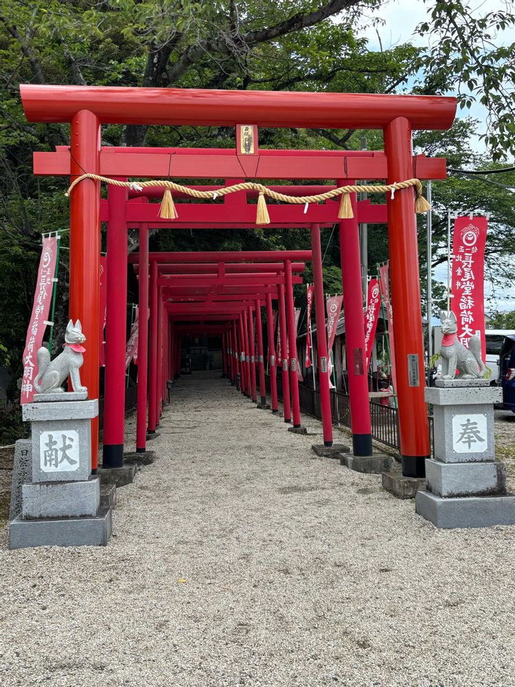 鯉のぼり🎏の両脇には絵馬に代わる「かない風車」も飾られ、爽やかな風が通り抜ける参道を抜けて参拝することができます。