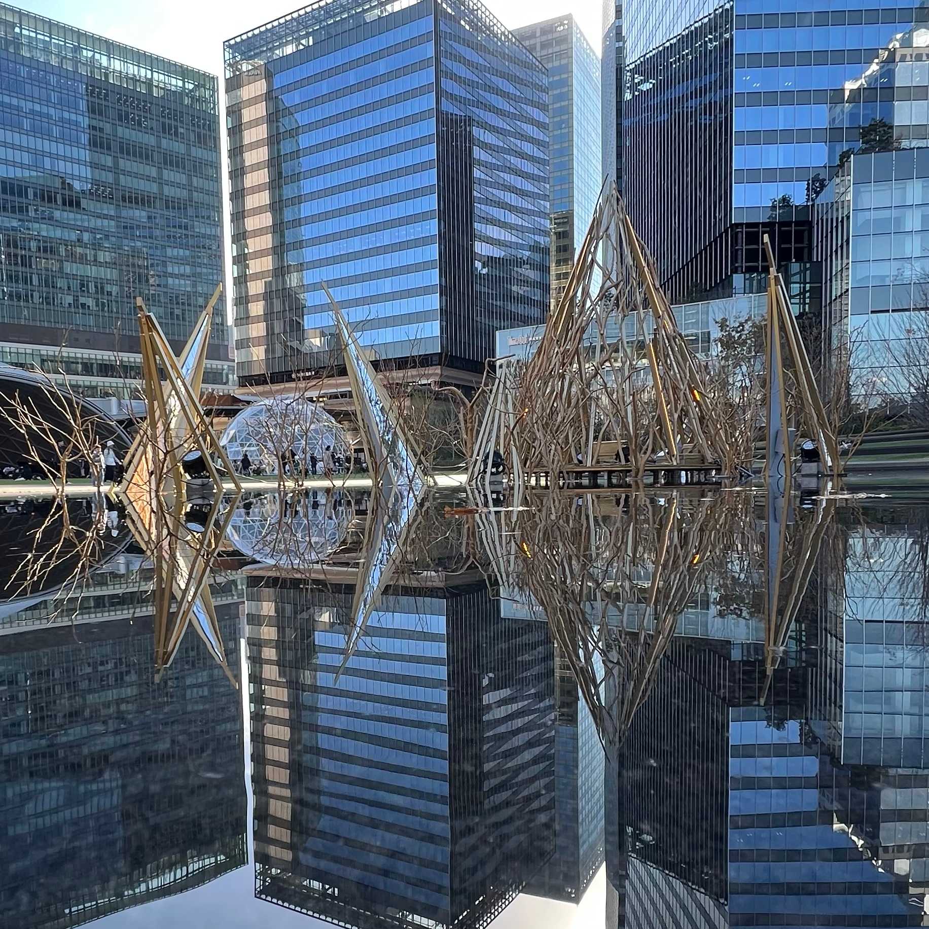 都市のど真ん中に浮かび上がる“揺らめく炎”の光と、焚火を囲んでいるような音楽で、来街者のまなざしを惹きつけ、体感温度を上げる、象徴的な存在