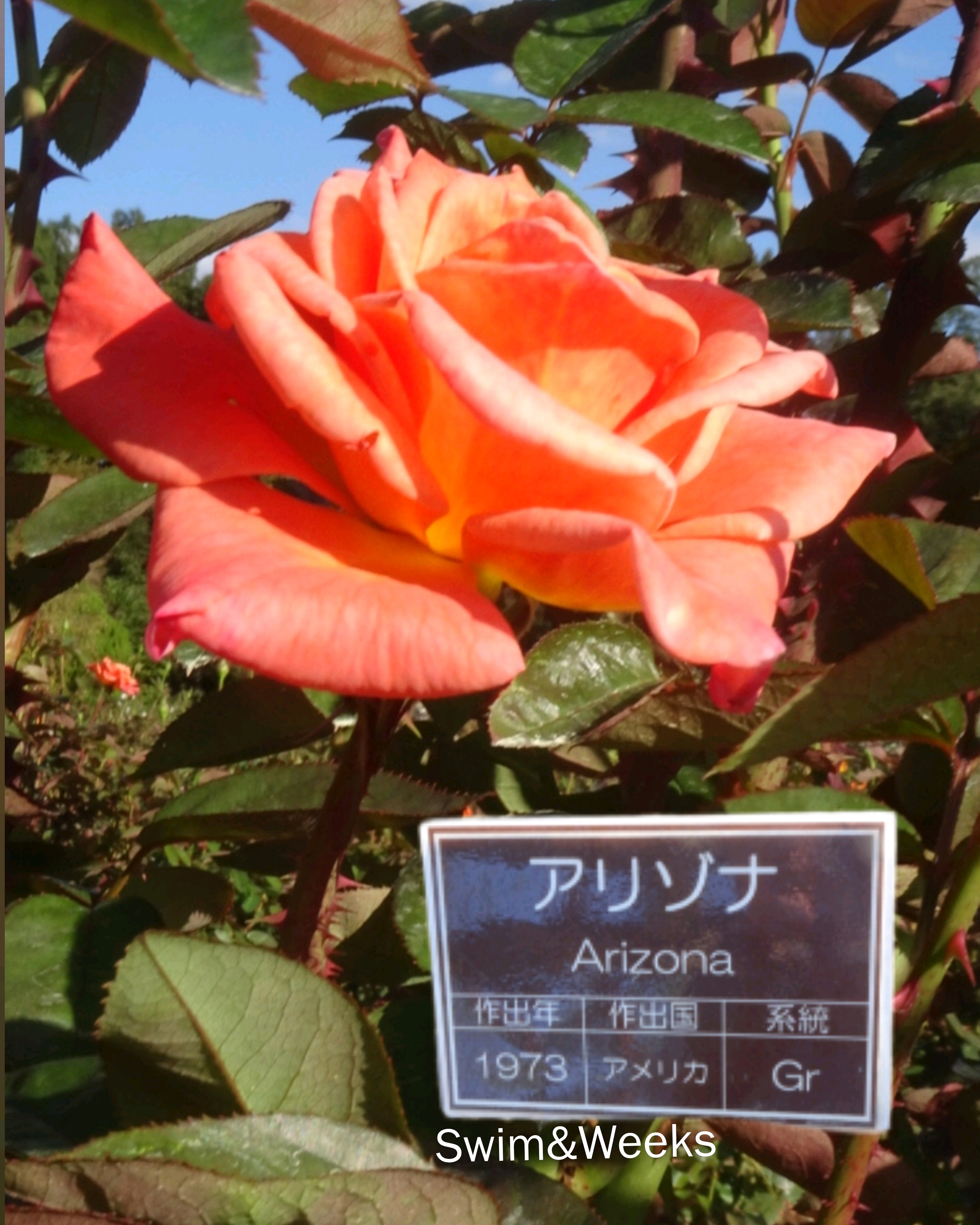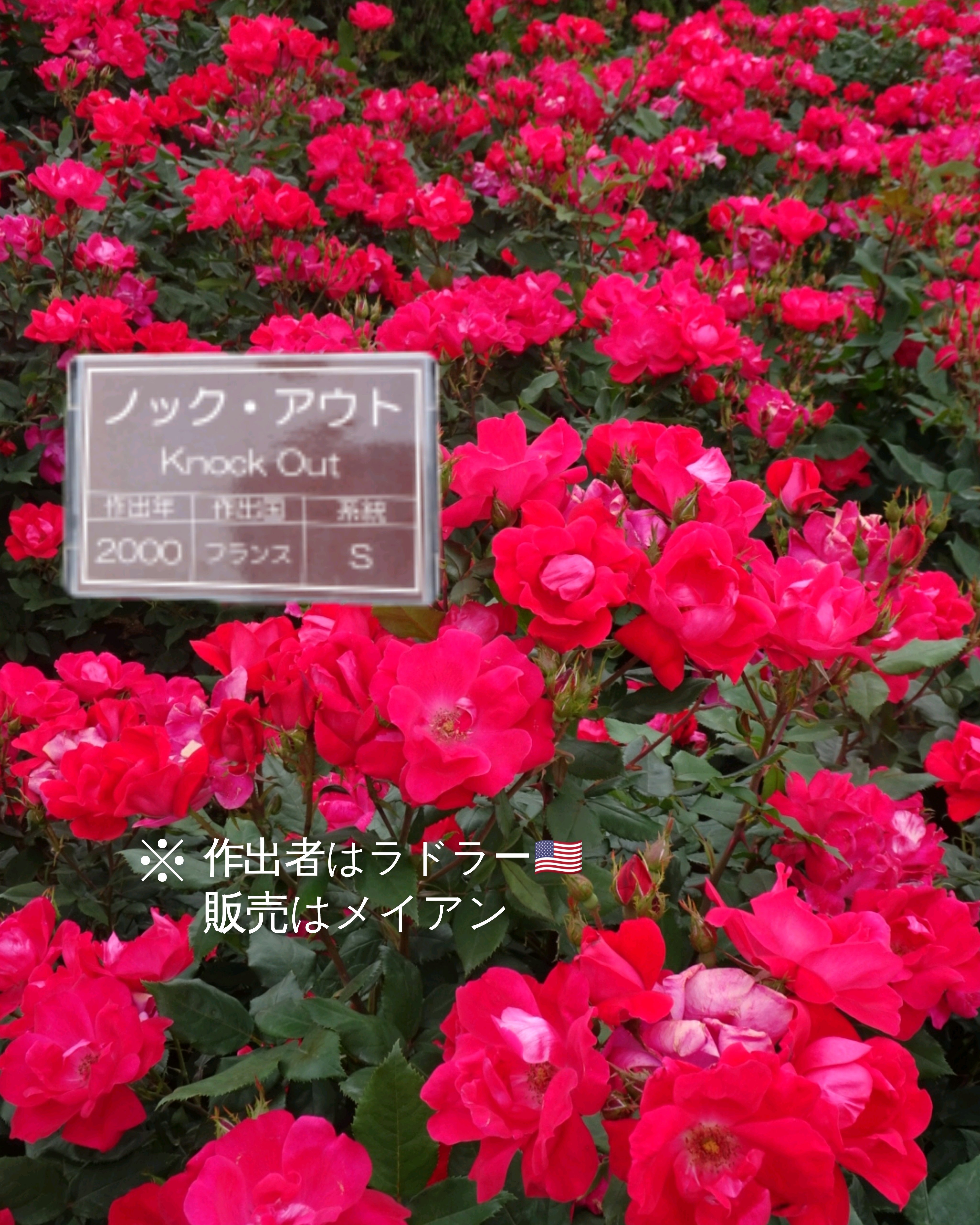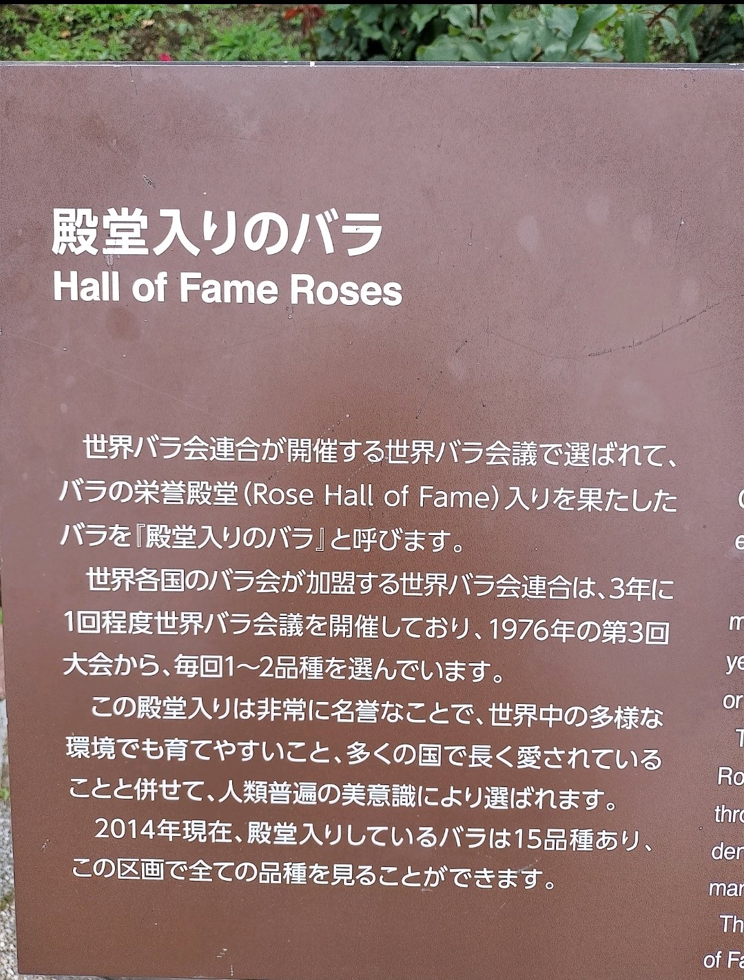 神代植物公園バラ園の名札は、薔薇の名前、作出年、作出国、系統が書いてあり、殿堂入りや、香りの薔薇はそれも書いてありました