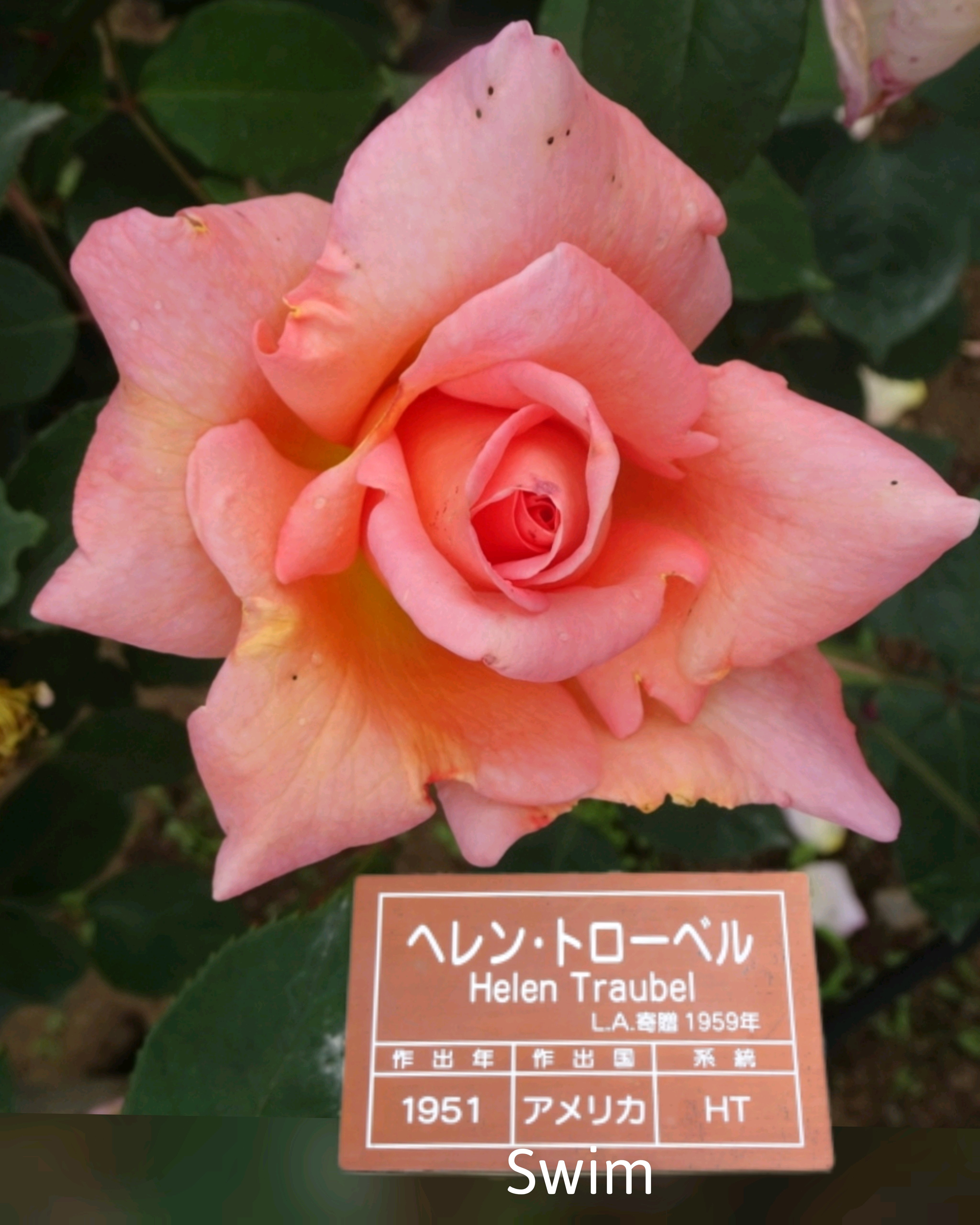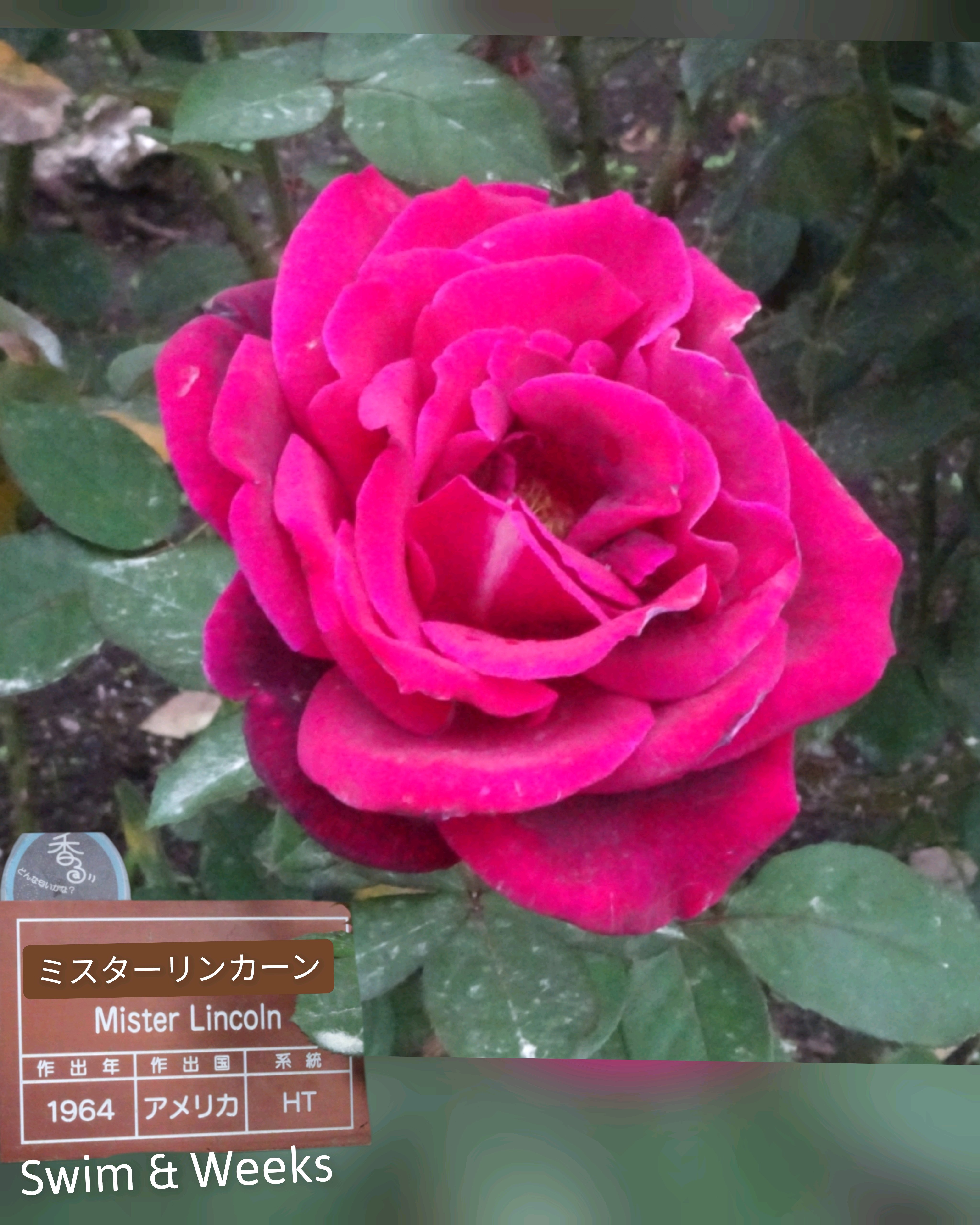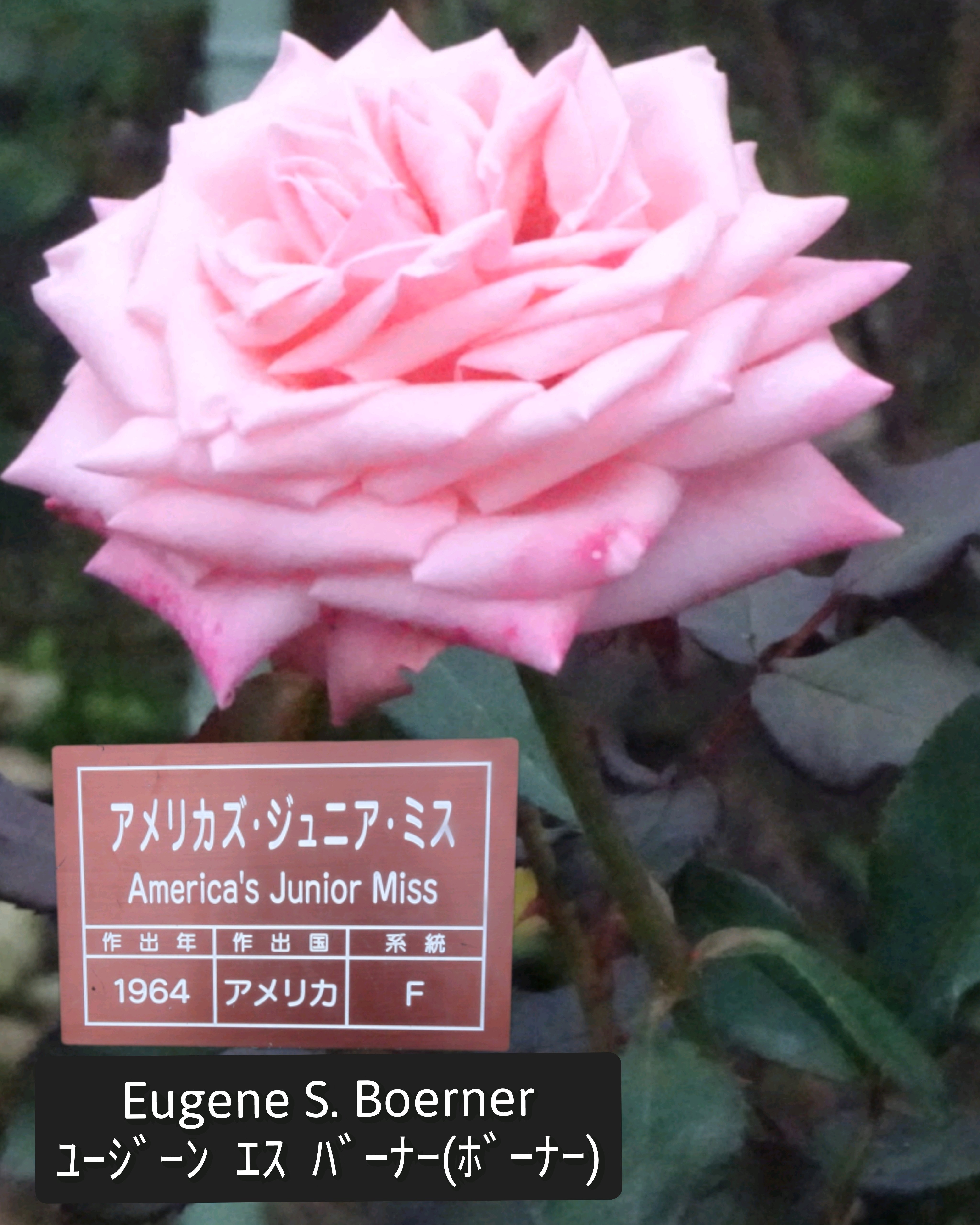 神代植物公園バラ園の名札は、薔薇の名前、作出年、作出国、系統が書いてあり、殿堂入りや、香りの薔薇はそれも書いてありました