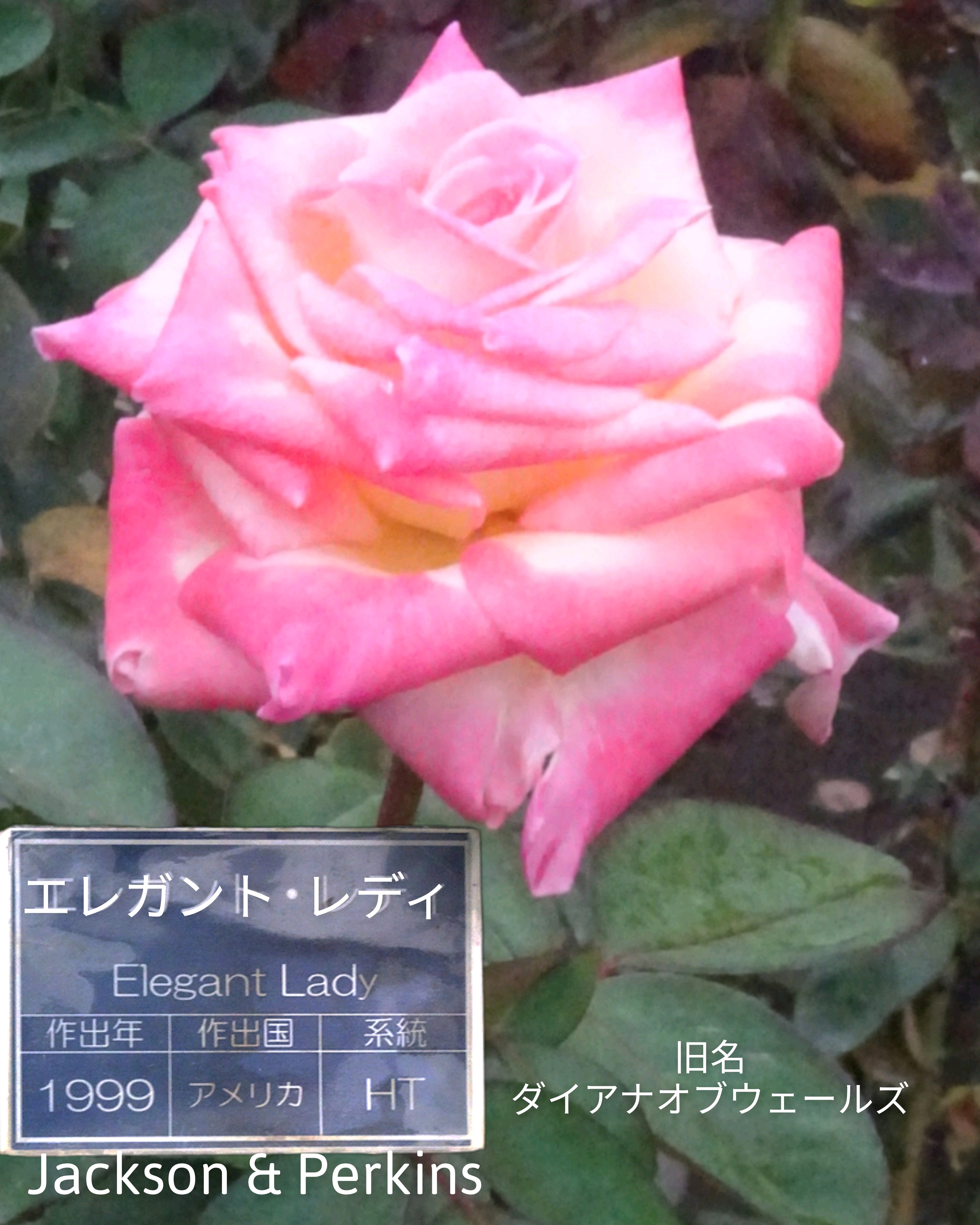期間限定でダイアナ プリンセス オブ ウェールズの名称を付けることを(苗木の売り上げの一部をダイアナ記念基金に寄付する条件で)エリザベス女王から許可されましたが、期間が終了したので、エレガントレディに変更されました