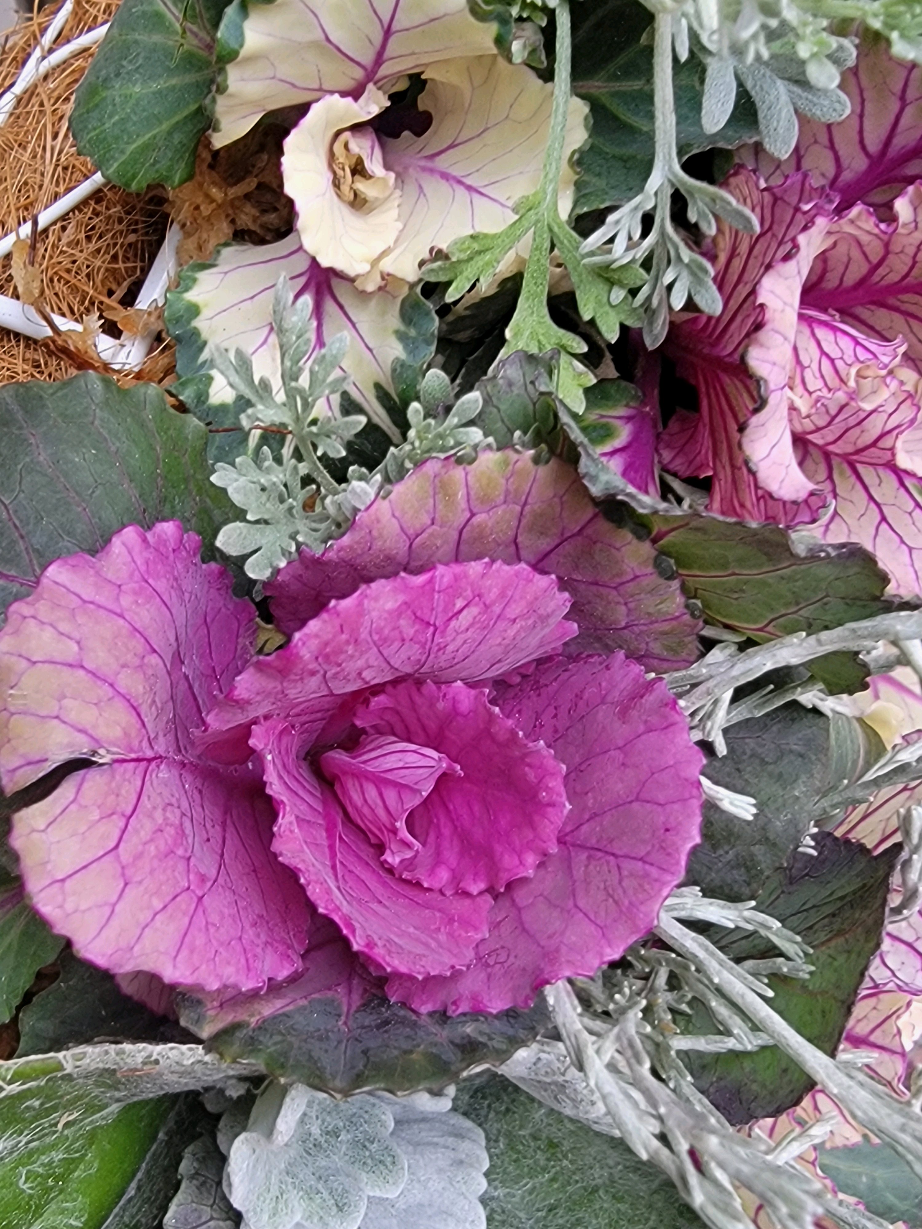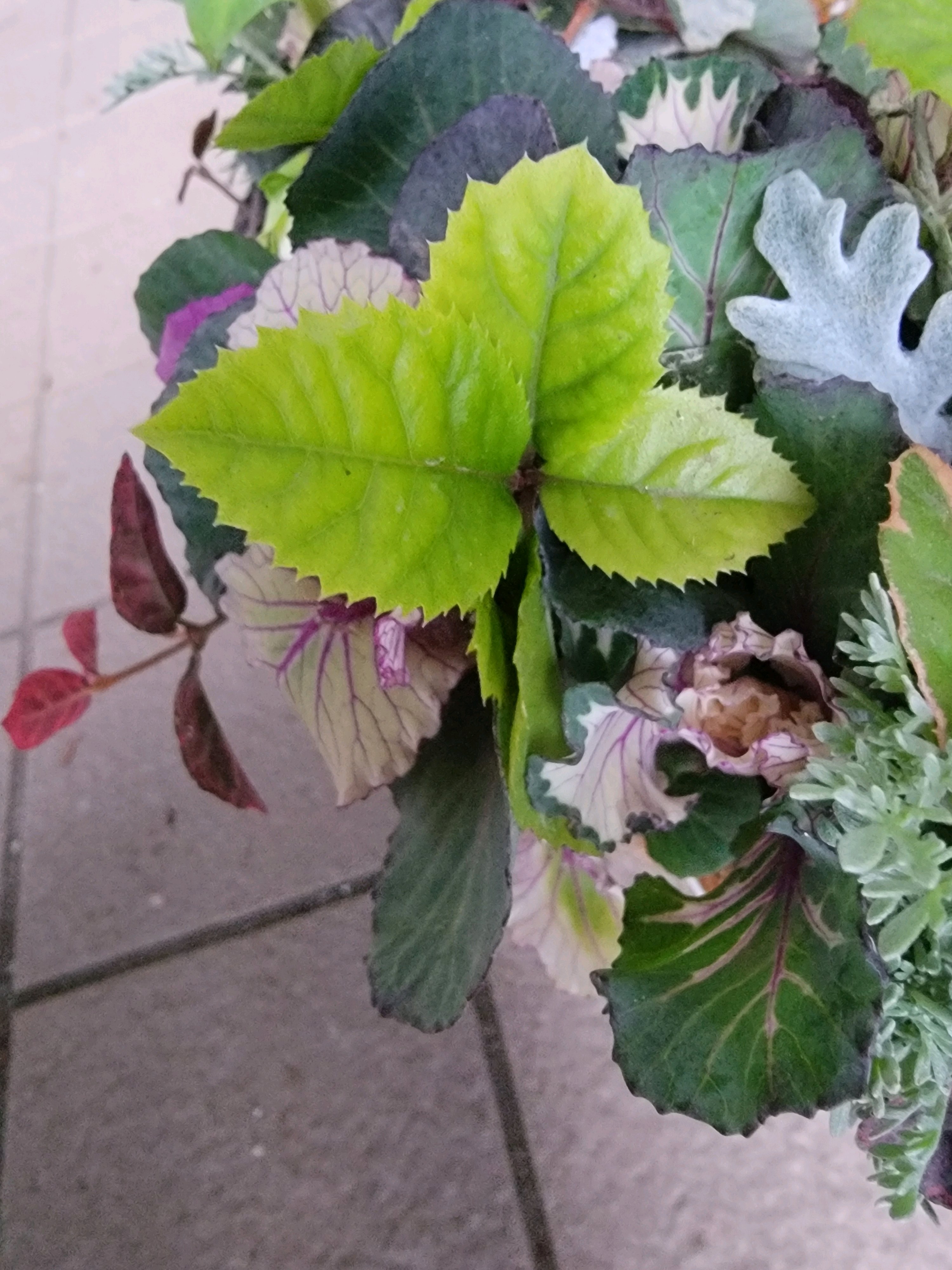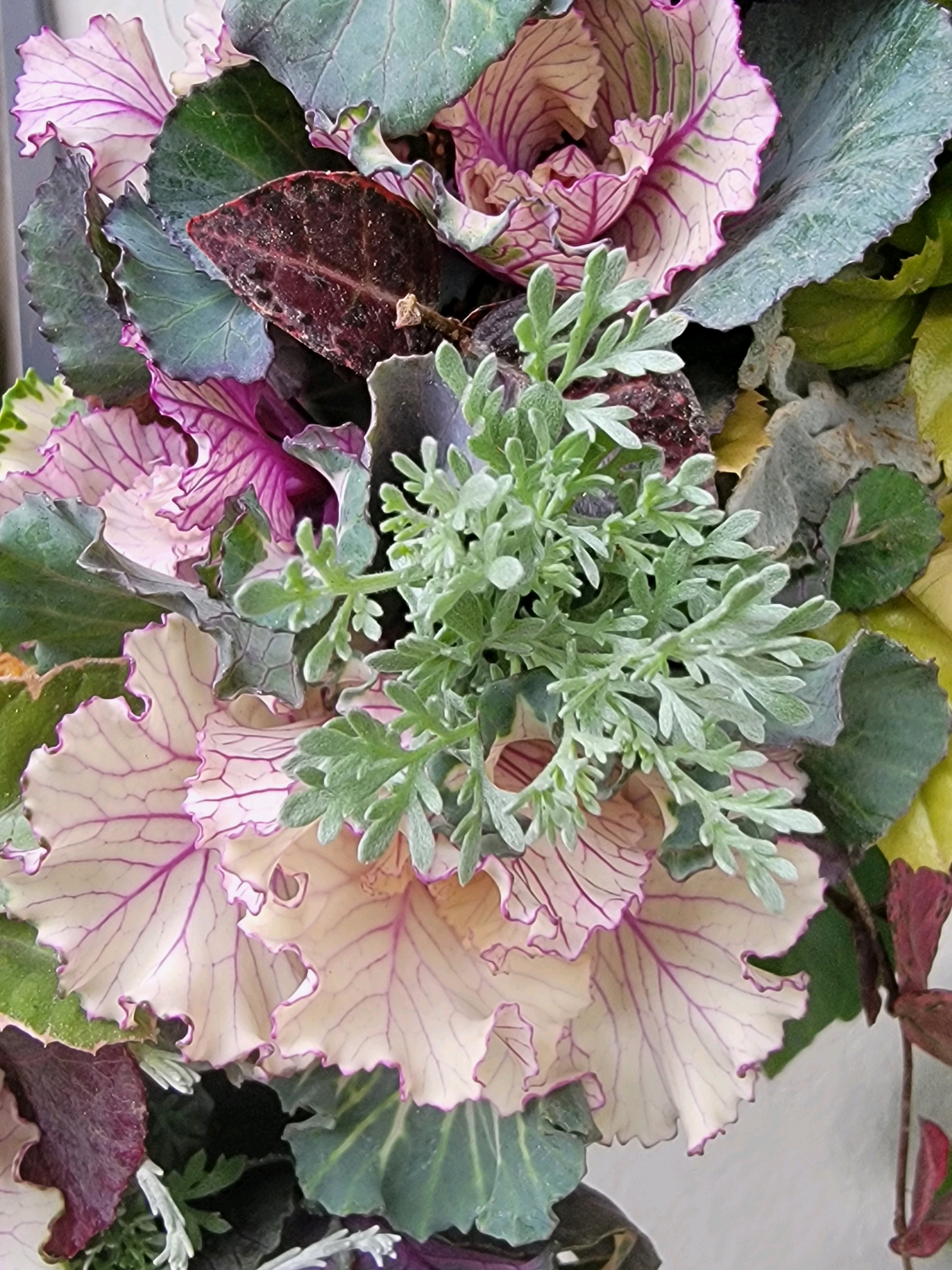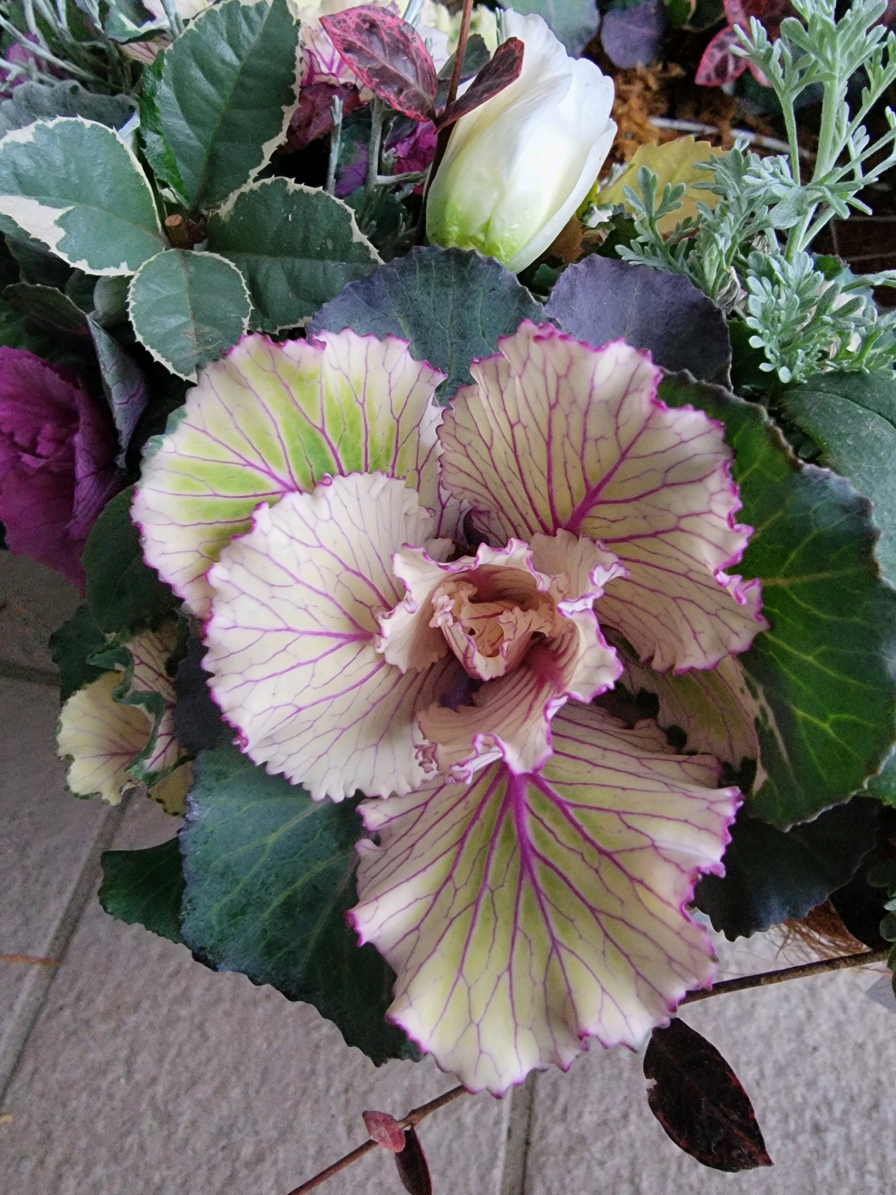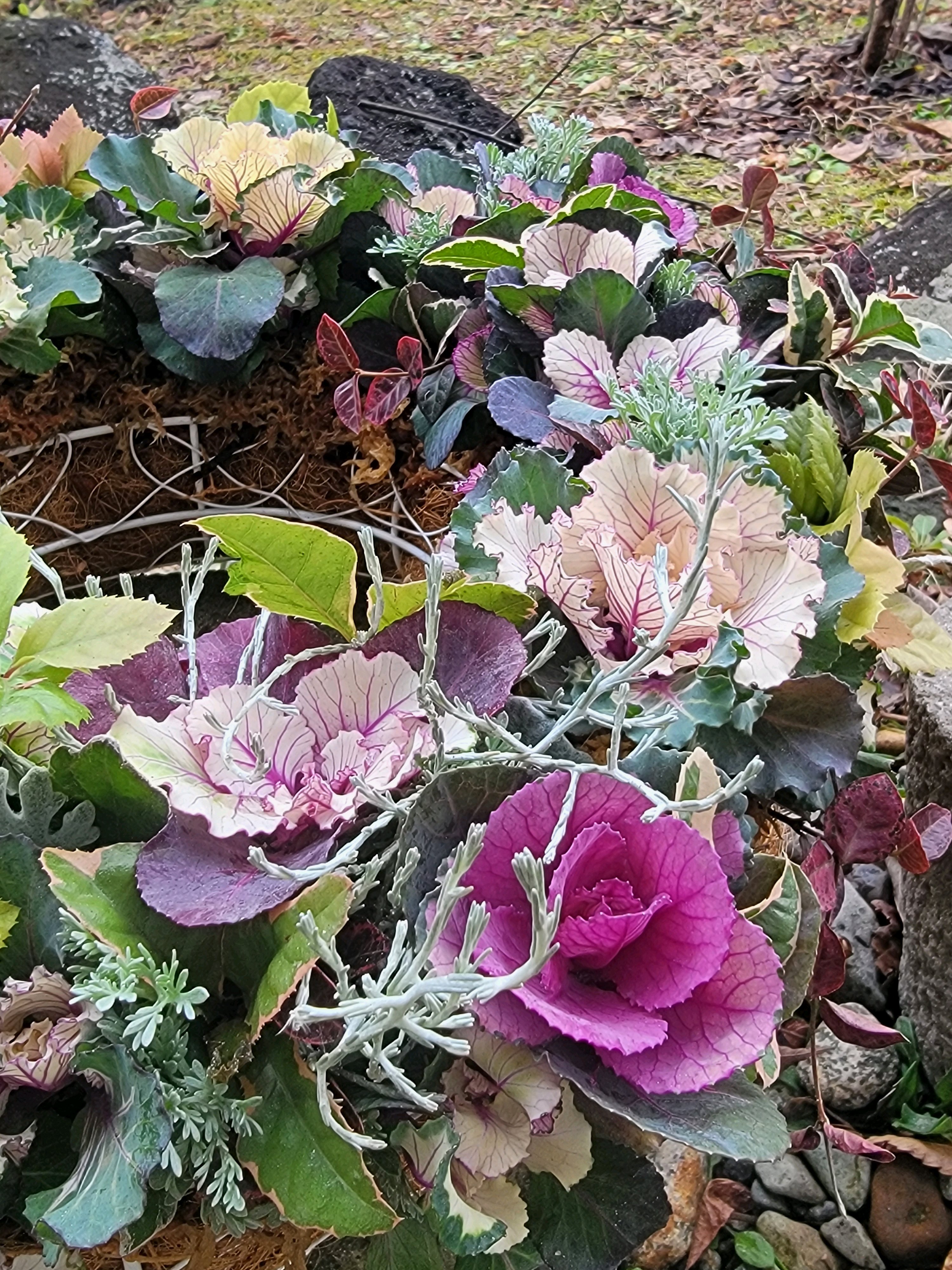 葉牡丹も葉脈の美しい、シックな葉牡丹💕
