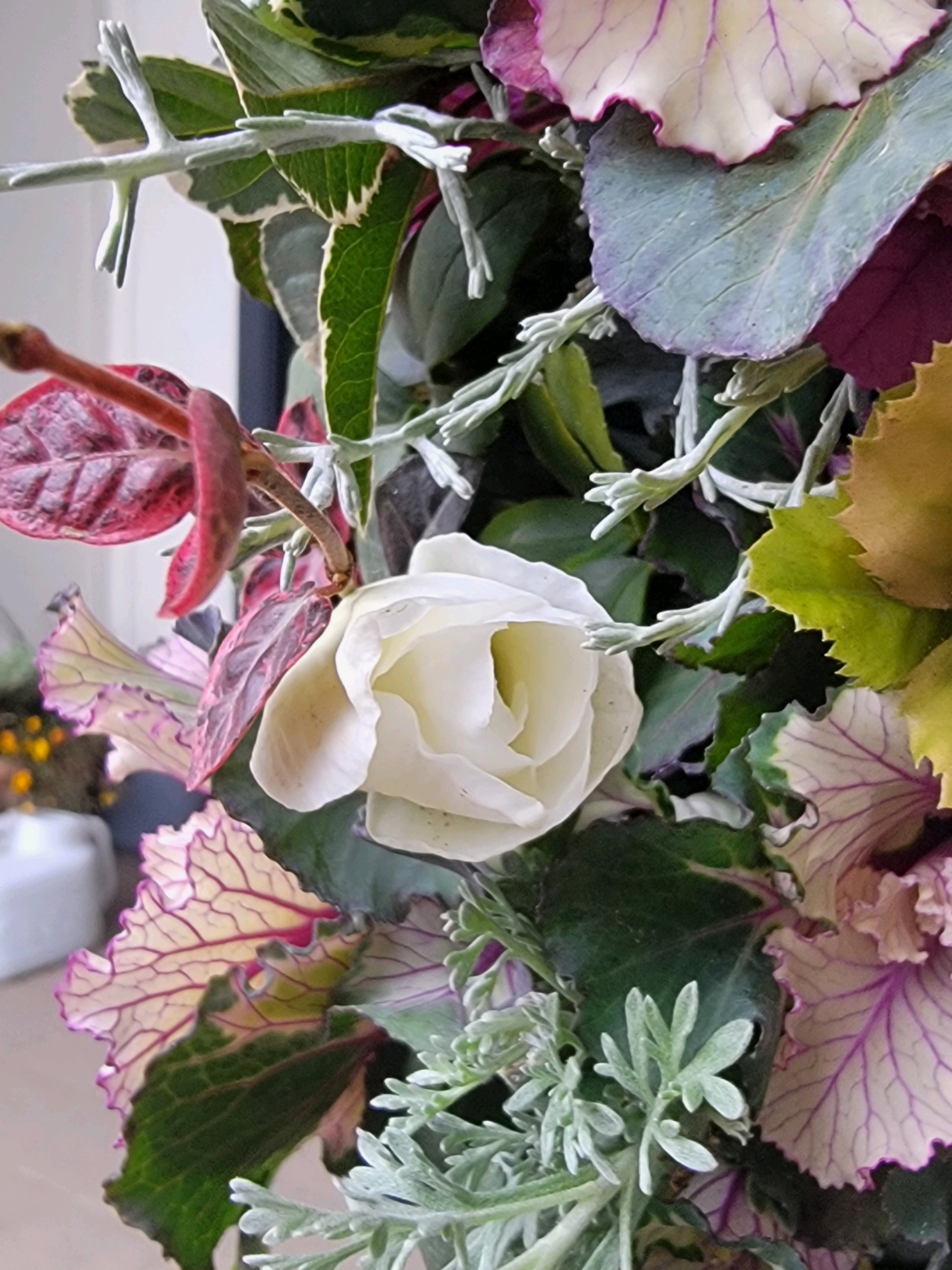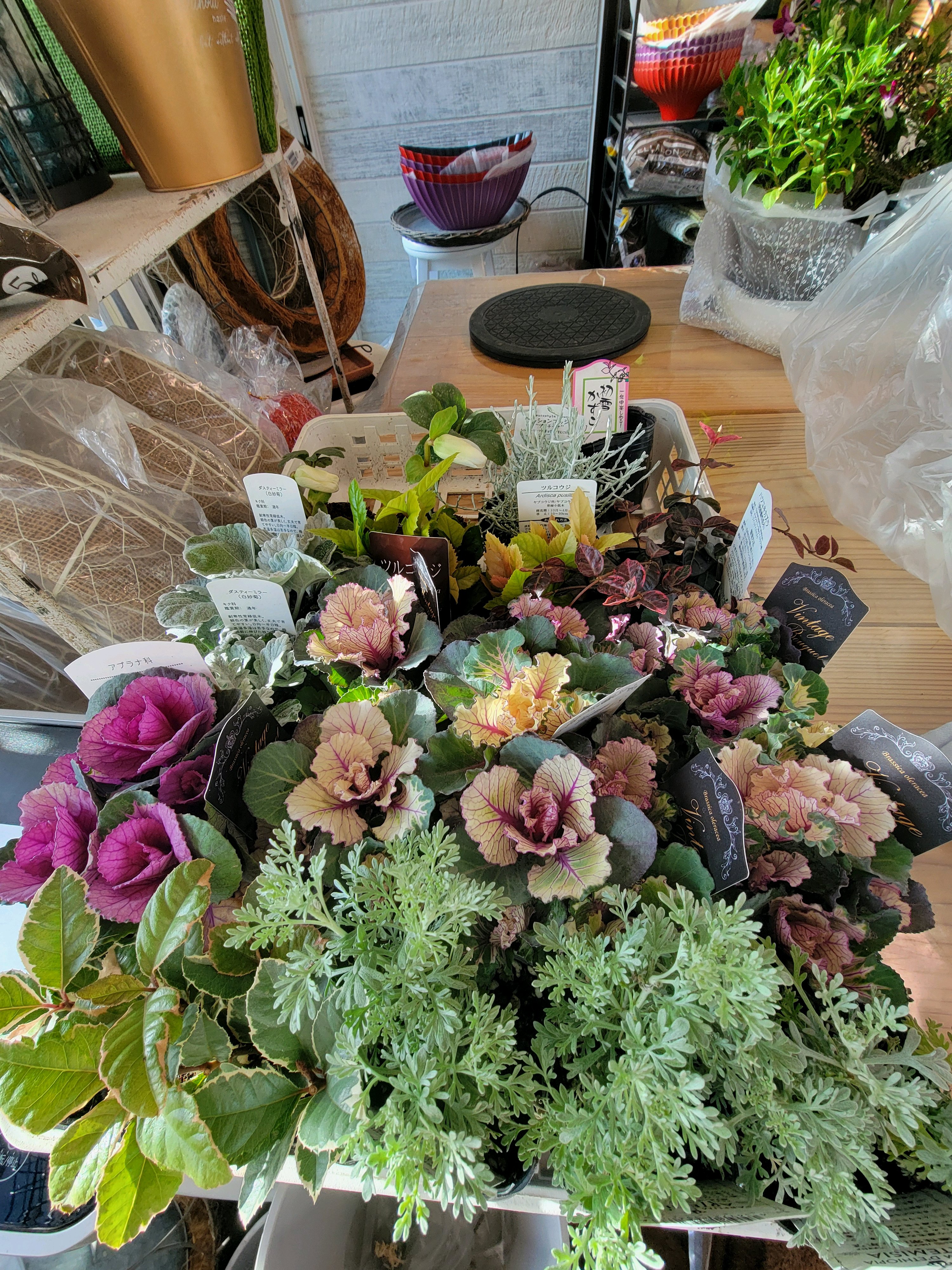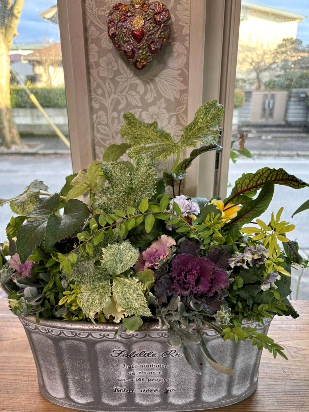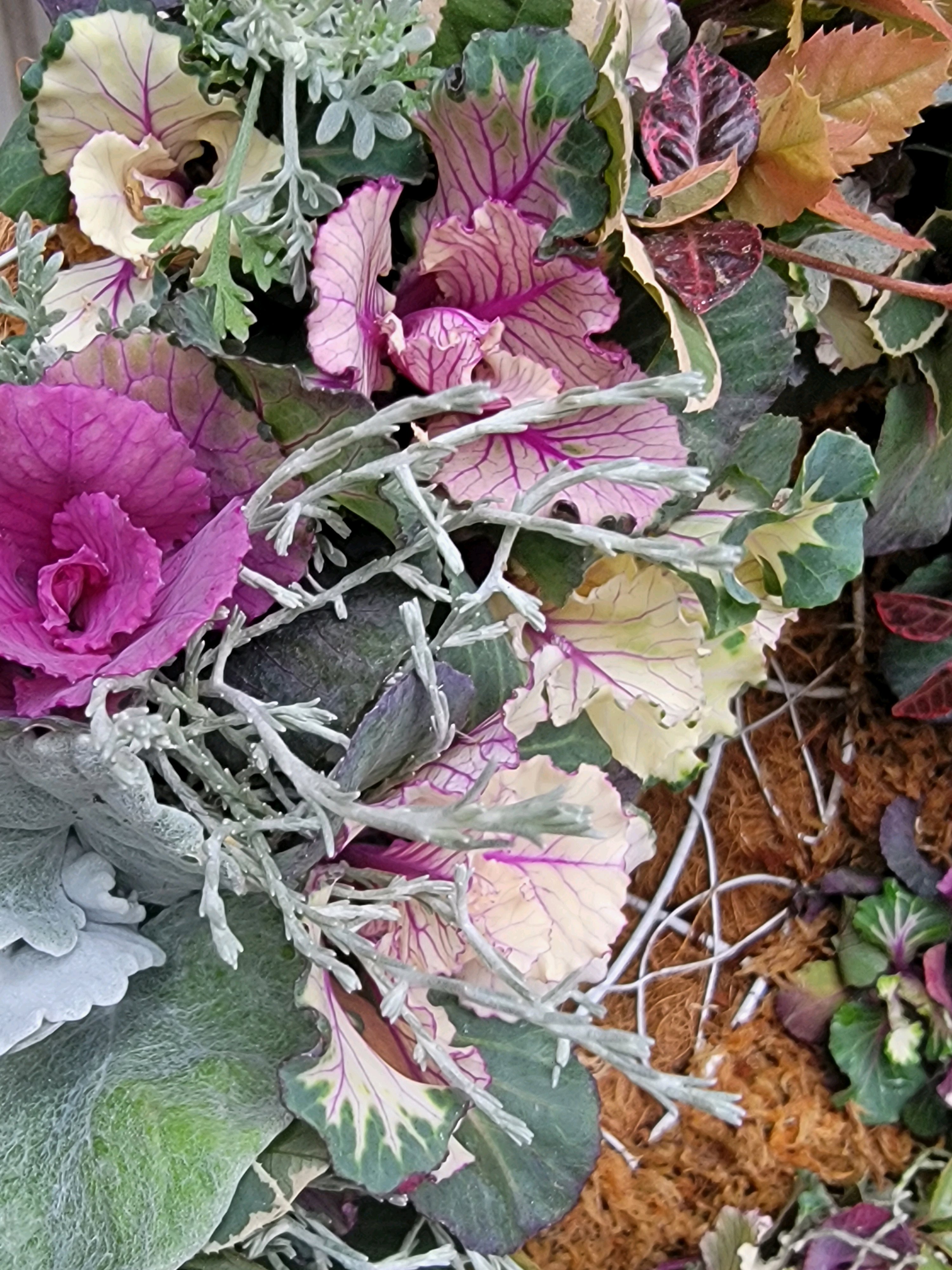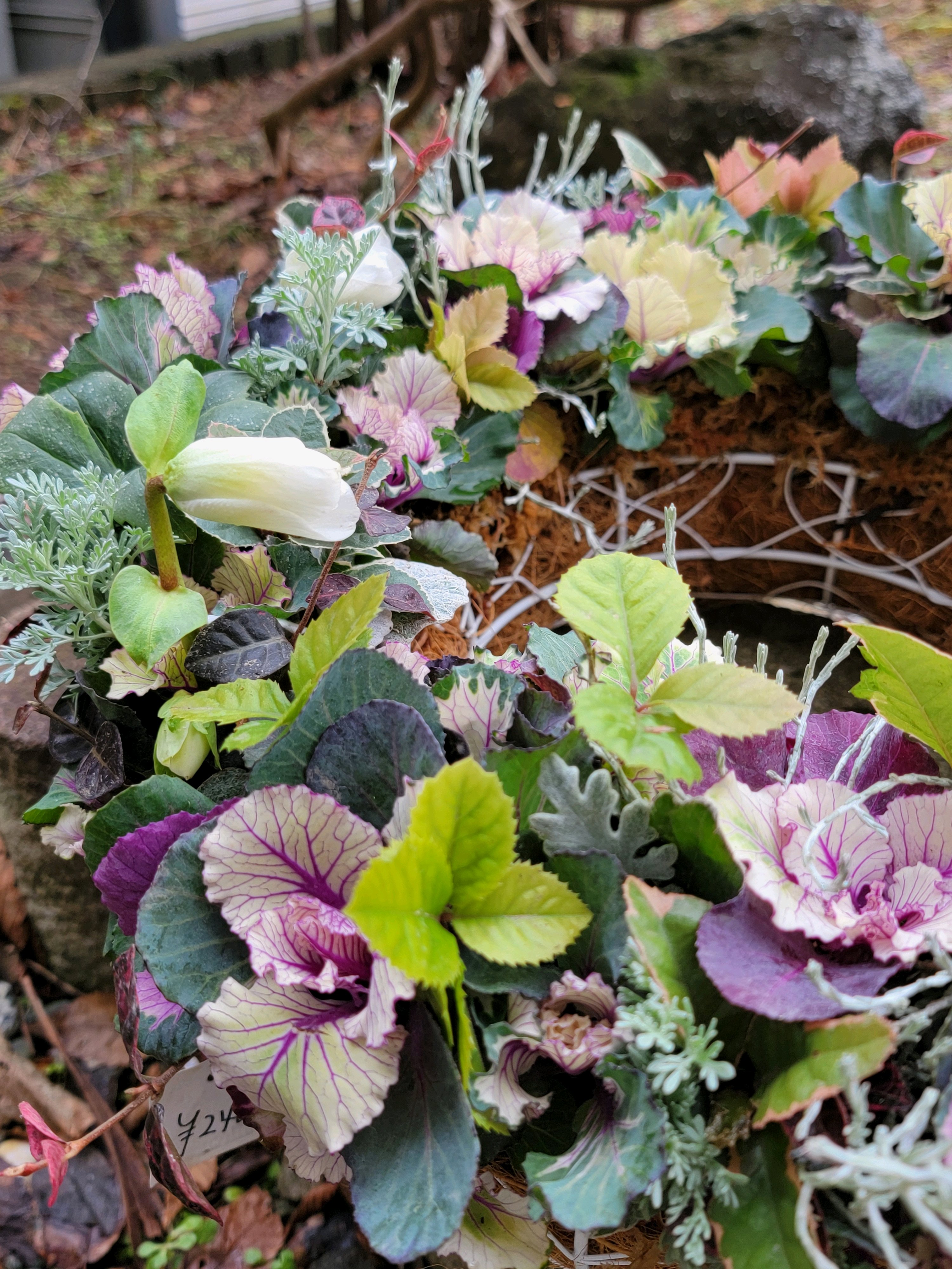 葉牡丹も葉脈の美しい、シックな葉牡丹💕
