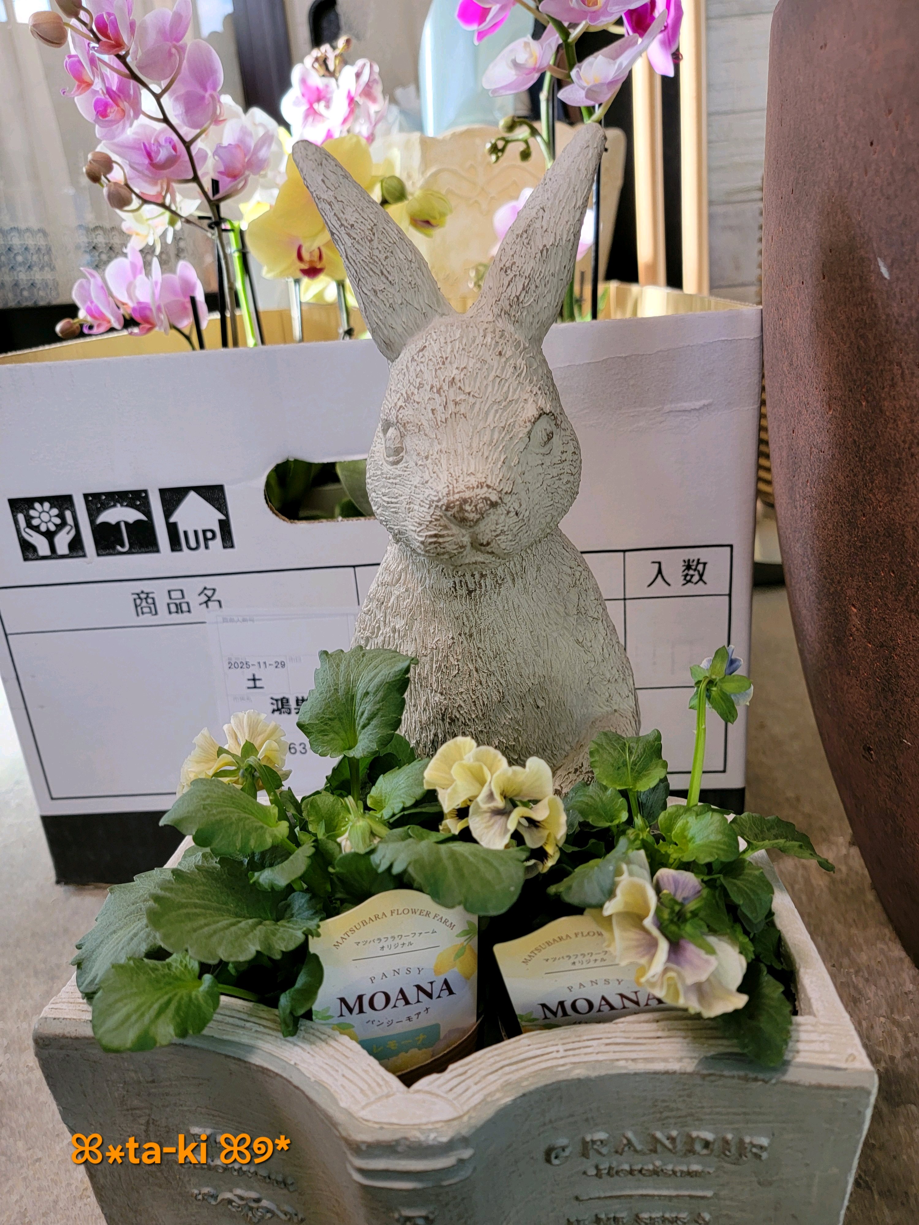 うさぎ🐰の鉢にパンジーモアナ🟡