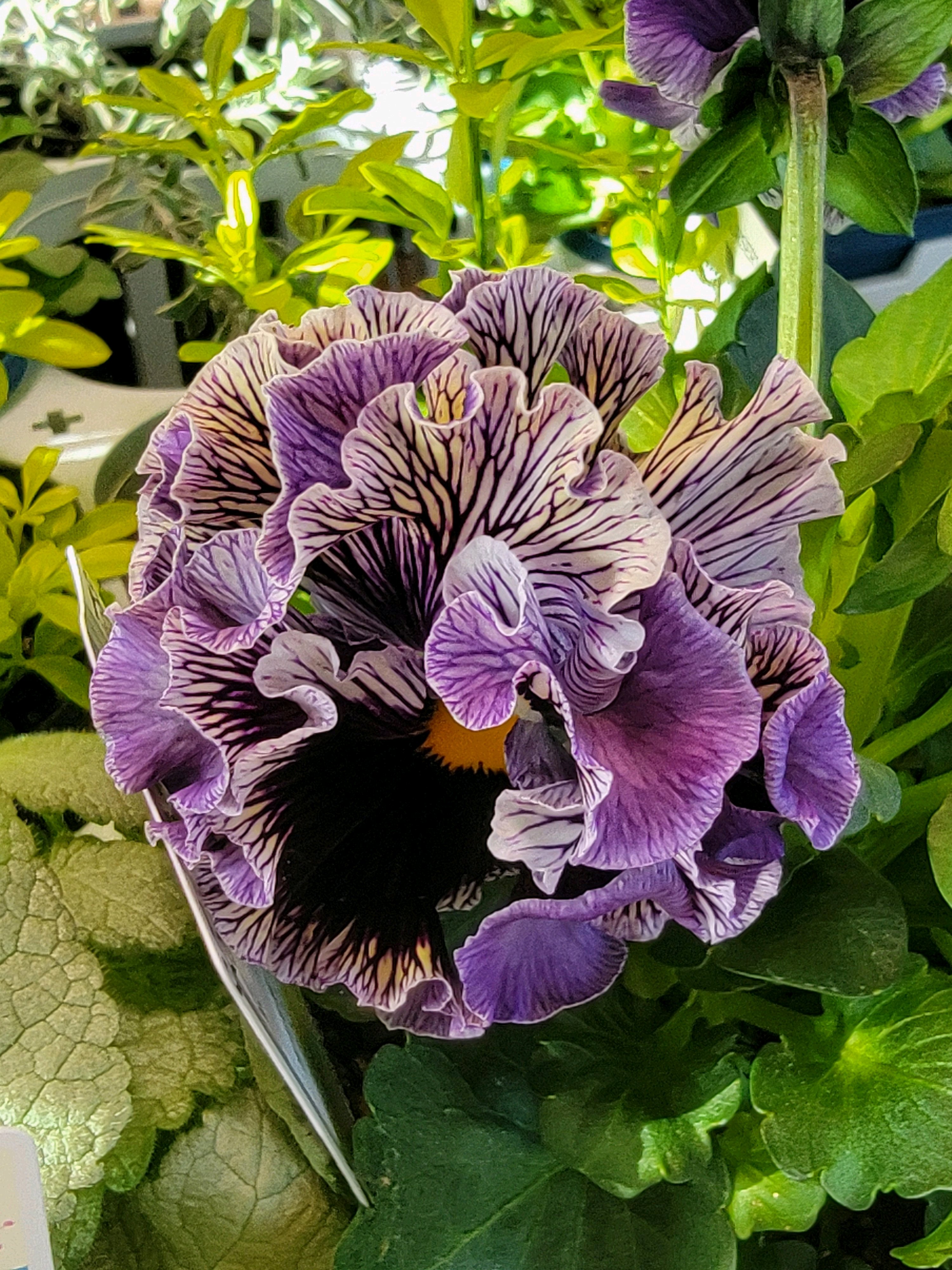 🌿パンジー・モアナ・レモーナ🟡💜も控えめに葉牡丹の影に咲いてます😍