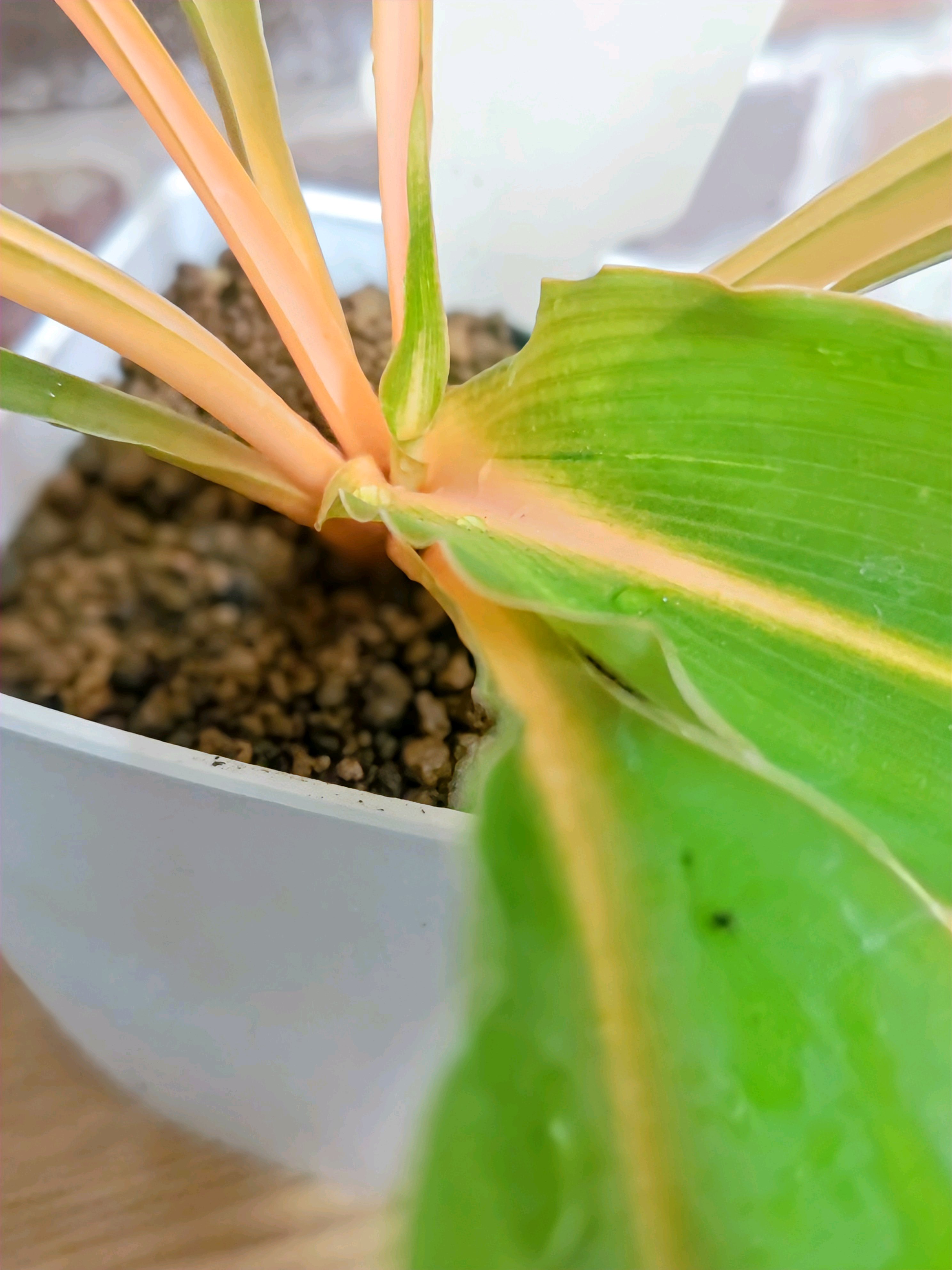 我が家にやって来たクロロフィツムプリンセスメイプル📛、葉っぱの数は中心からの新芽を入れて、全部で10枚。