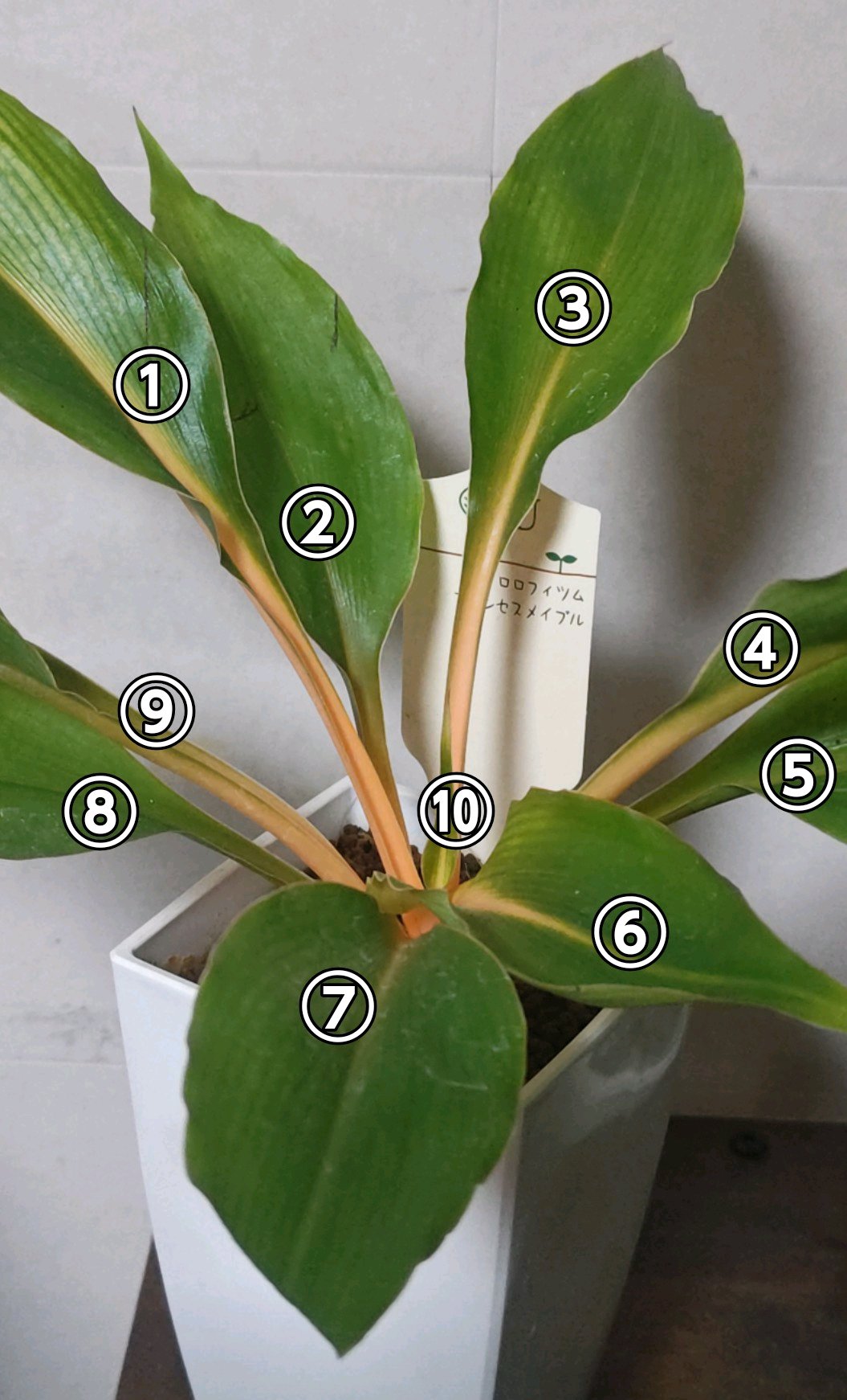 ④⑤が大きくカット✂️した葉っぱ。⑧⑨も葉先をカット✂️。
