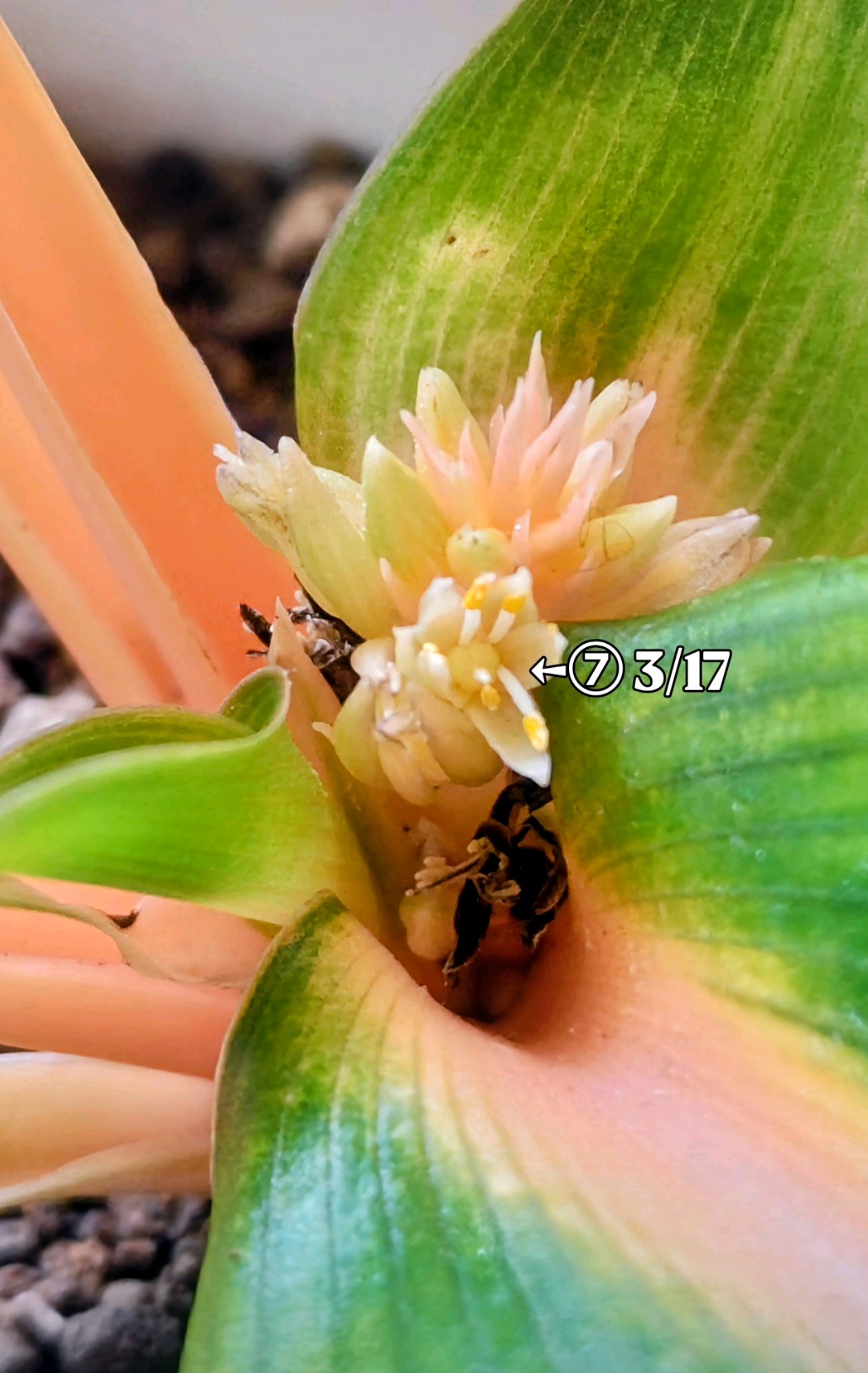 中心部、白っぽいギザギザした物は、花芽⁉️だと良いなぁ✨