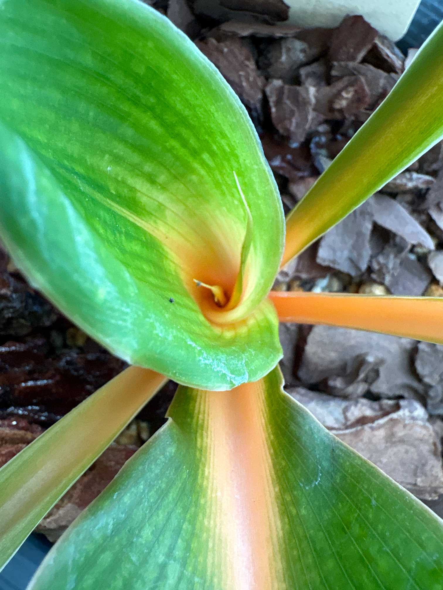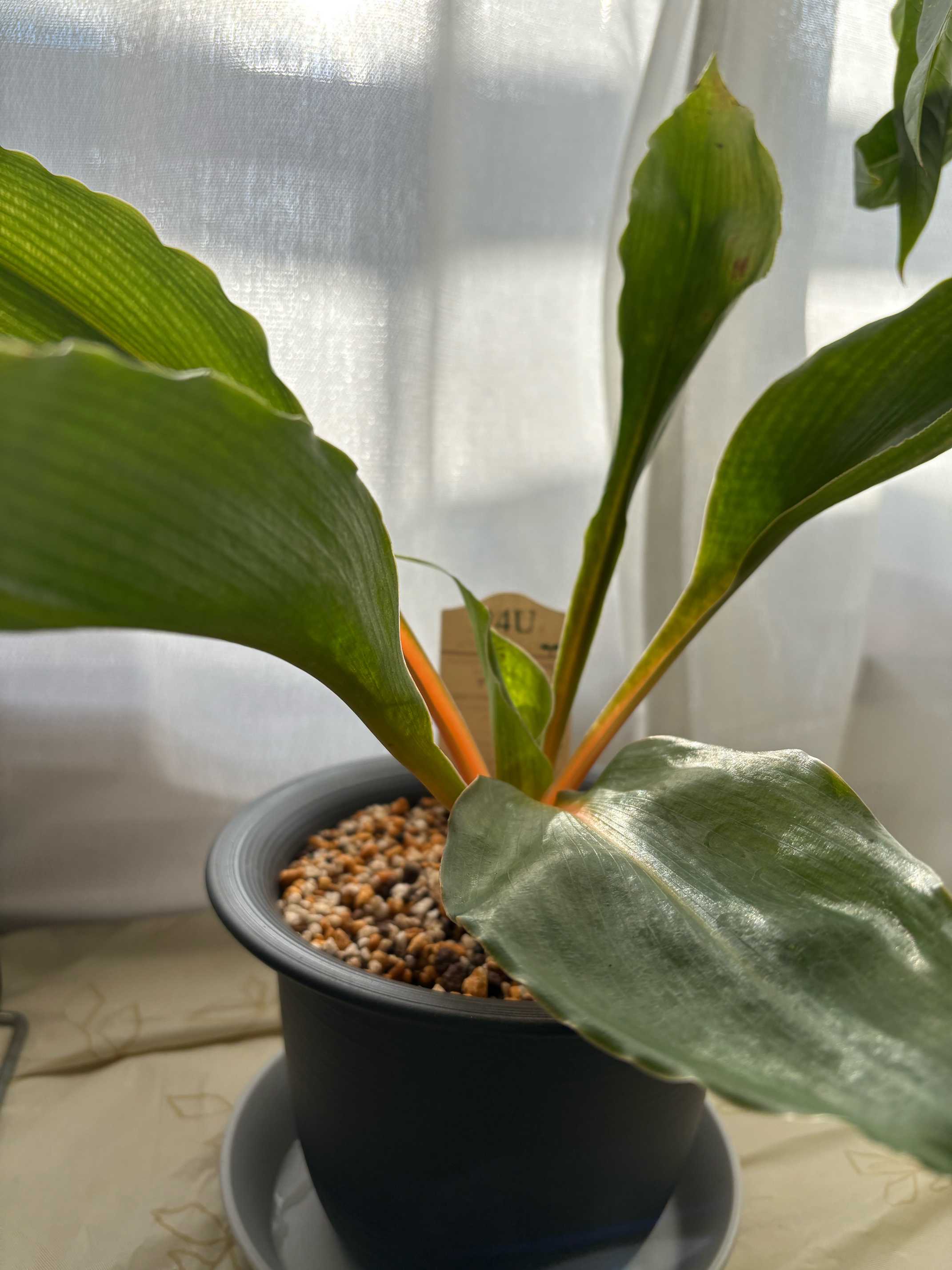 葉っぱが広がりオレンジ色の茎が放射線状に綺麗🧡