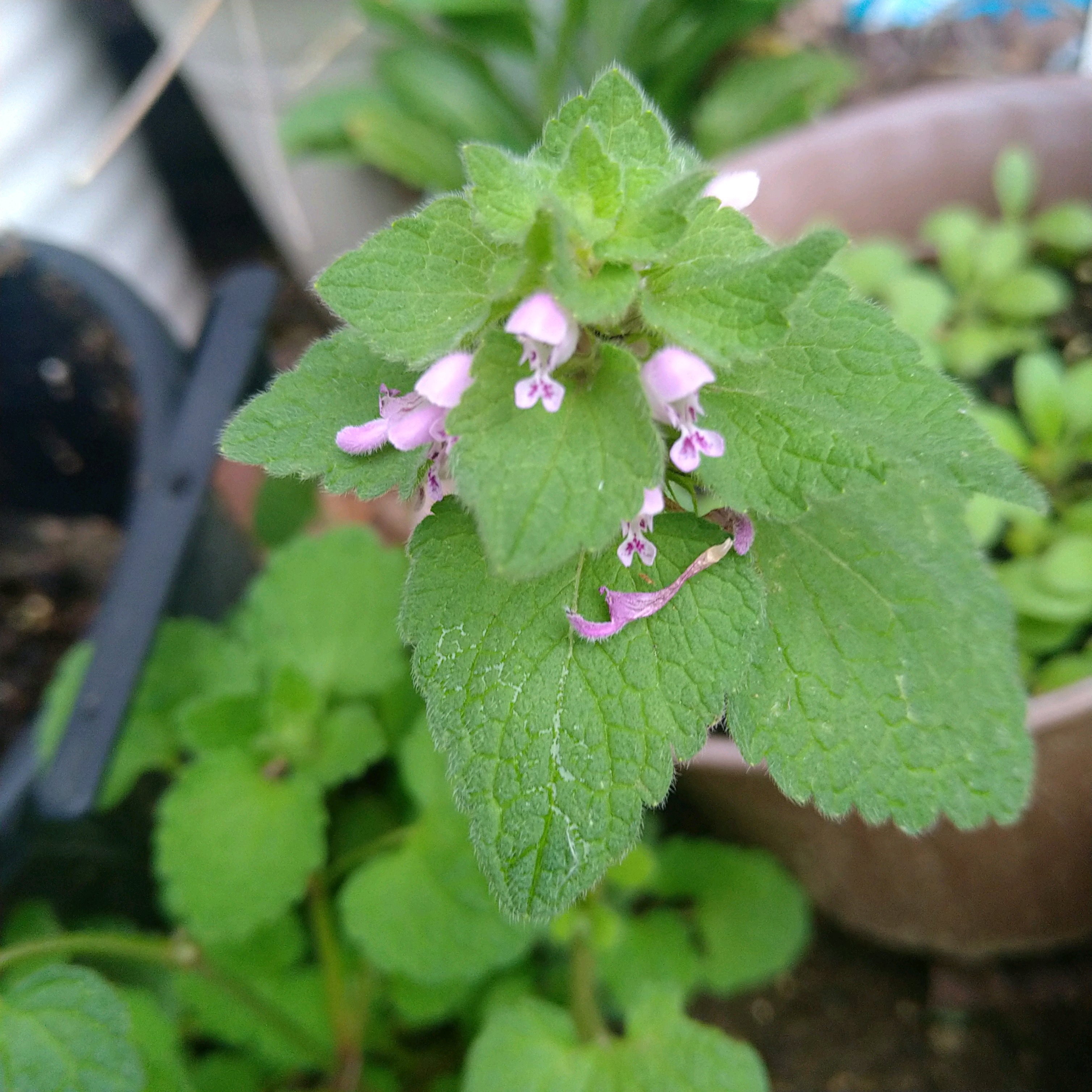 2025年12月の庭で咲いたヒメオドリコソウ