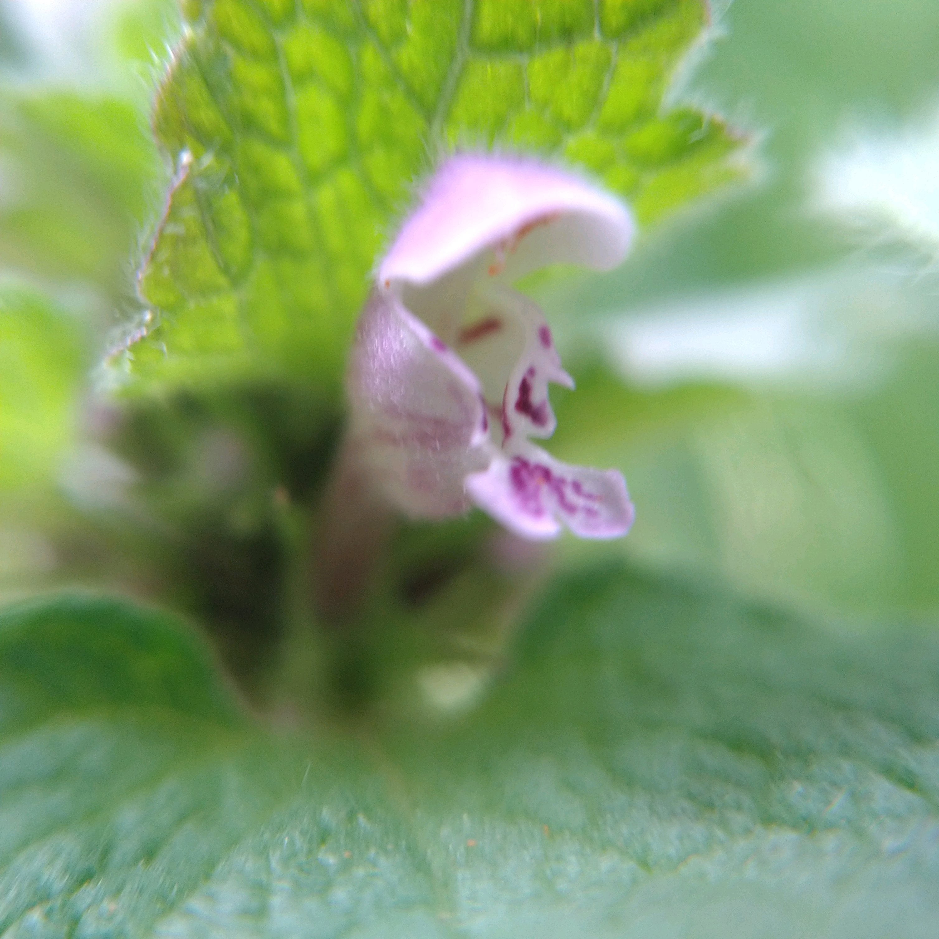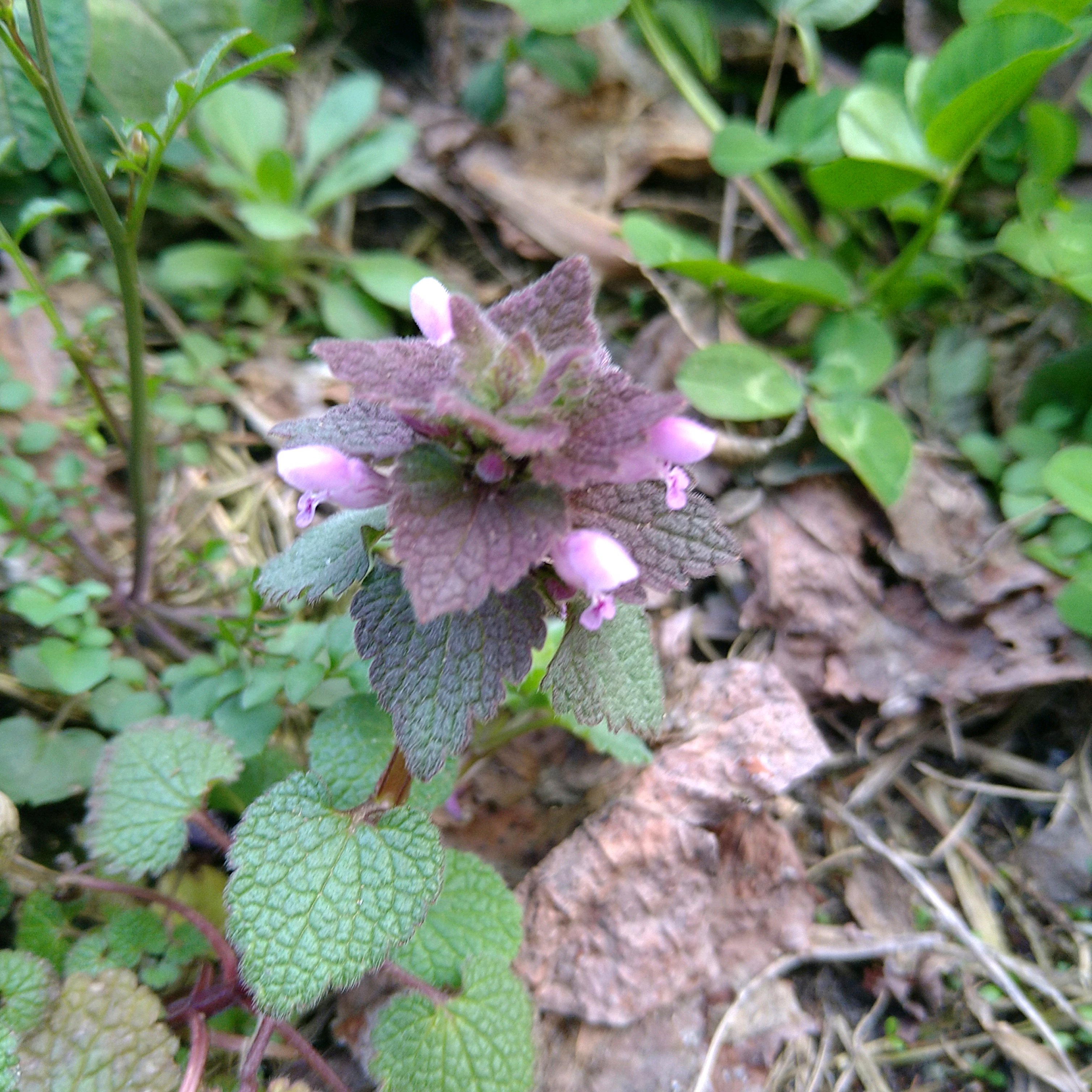 2024.4.1 庭でヒメオドリコソウをズーム…葉っぱが紫色がかっています