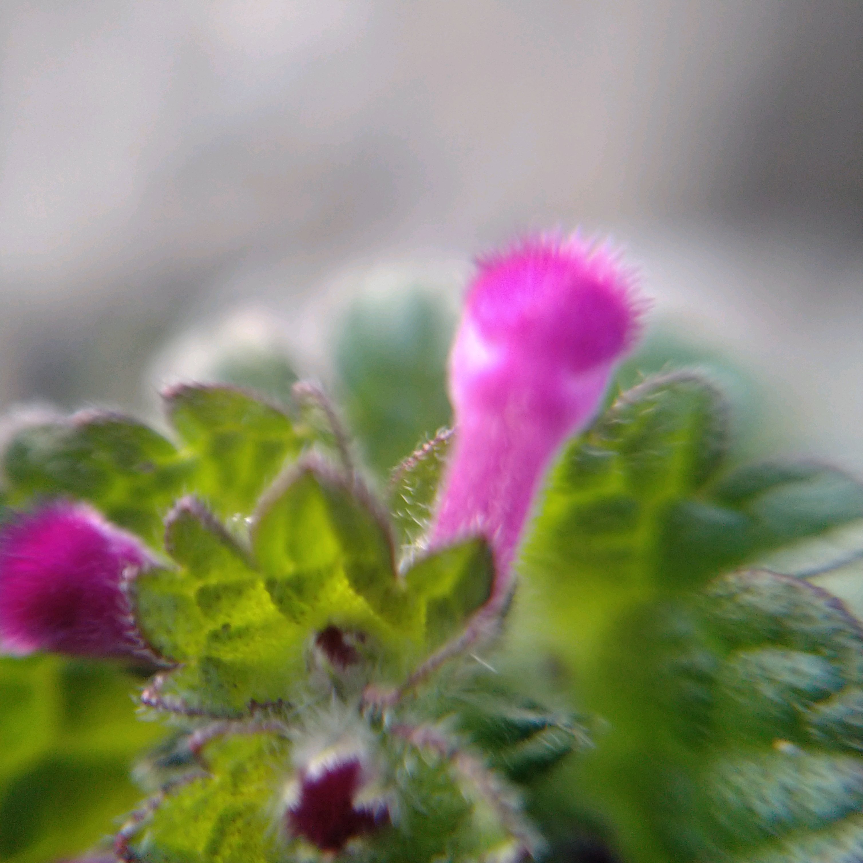 2024.4.1 庭のホトケノザの蕾が開きそうに見えてズームしてみました…開いたかと思いましたがまだお花の先端がすぼんで居ました