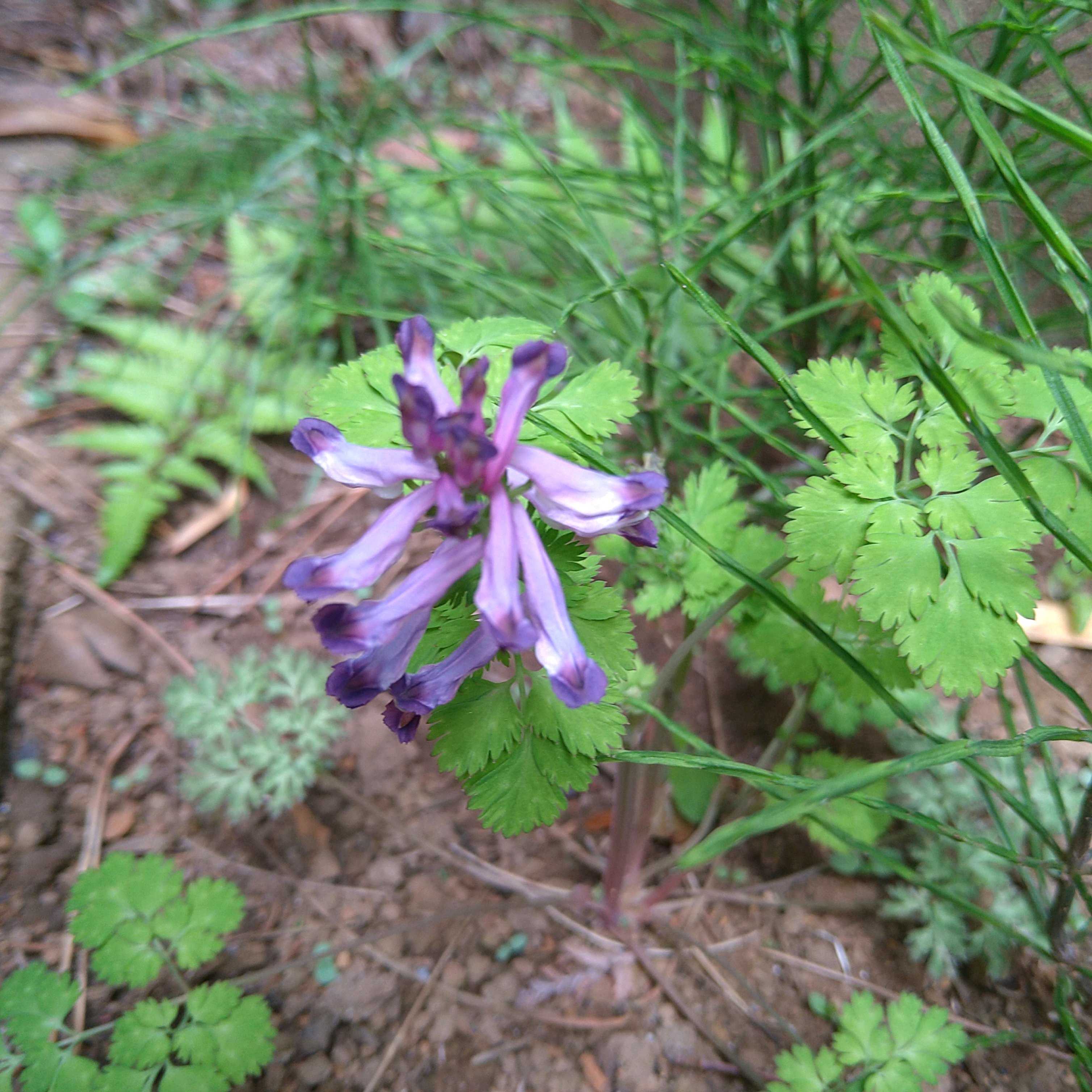 2024.4.16 庭で見付けたムラサキケマン ケシ科キケマン属 直射日光を好まない植物 日陰、やや暗い場所に自生する