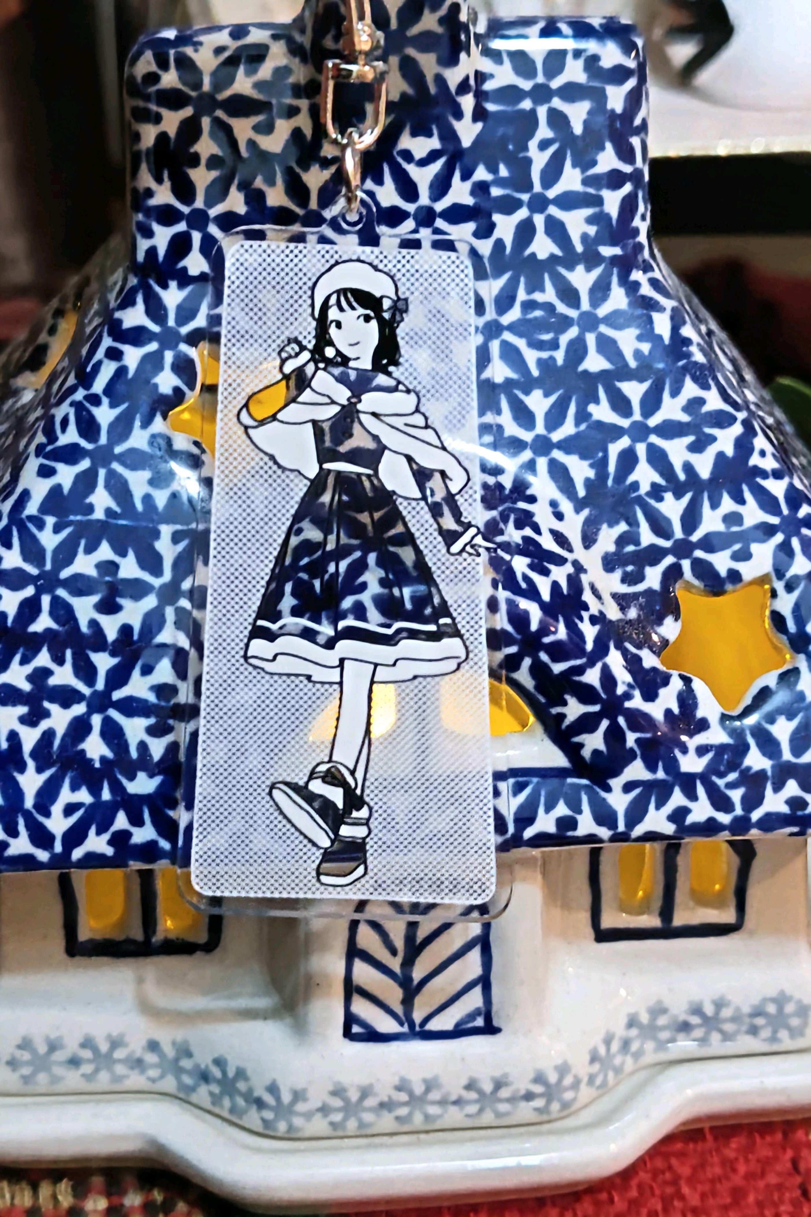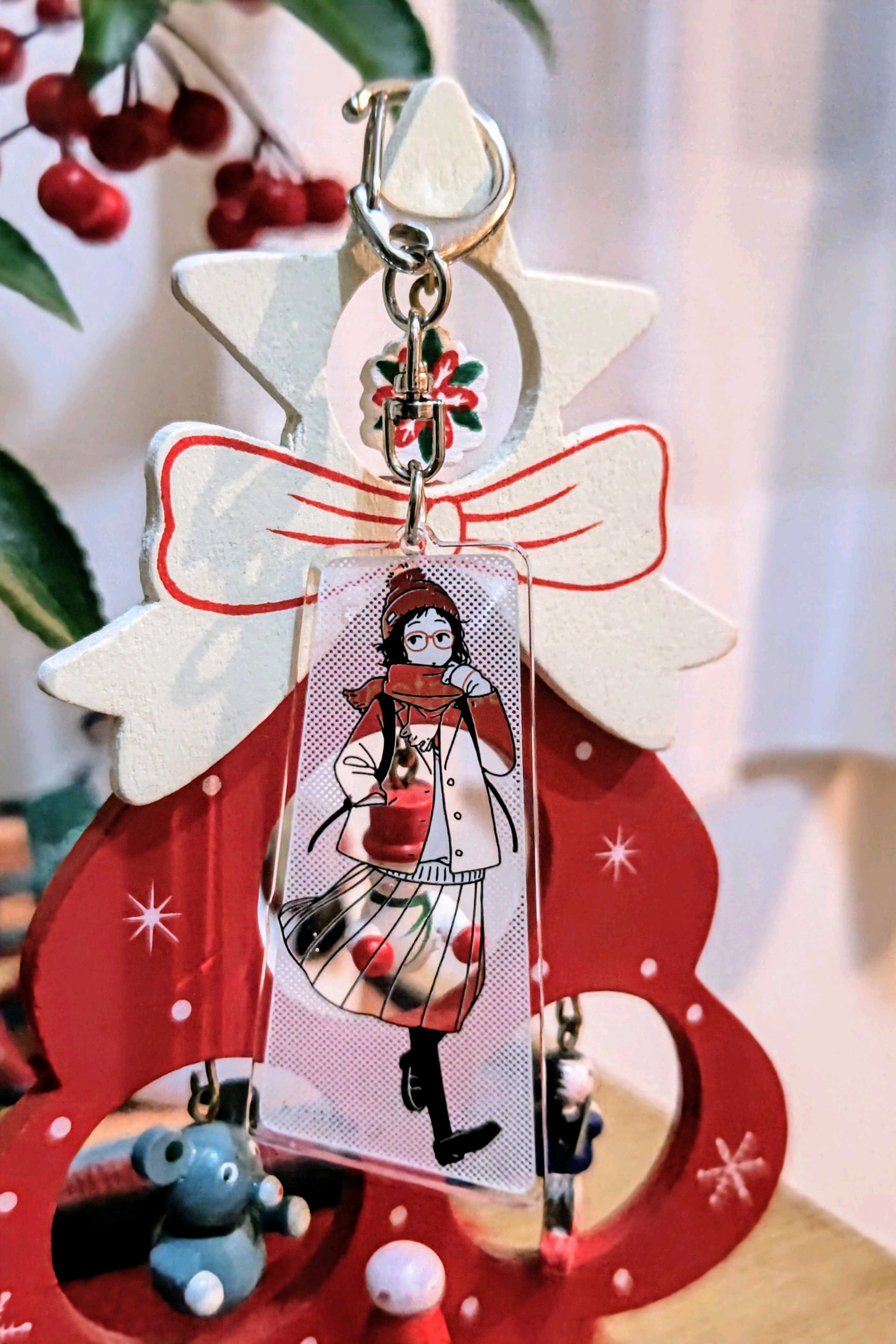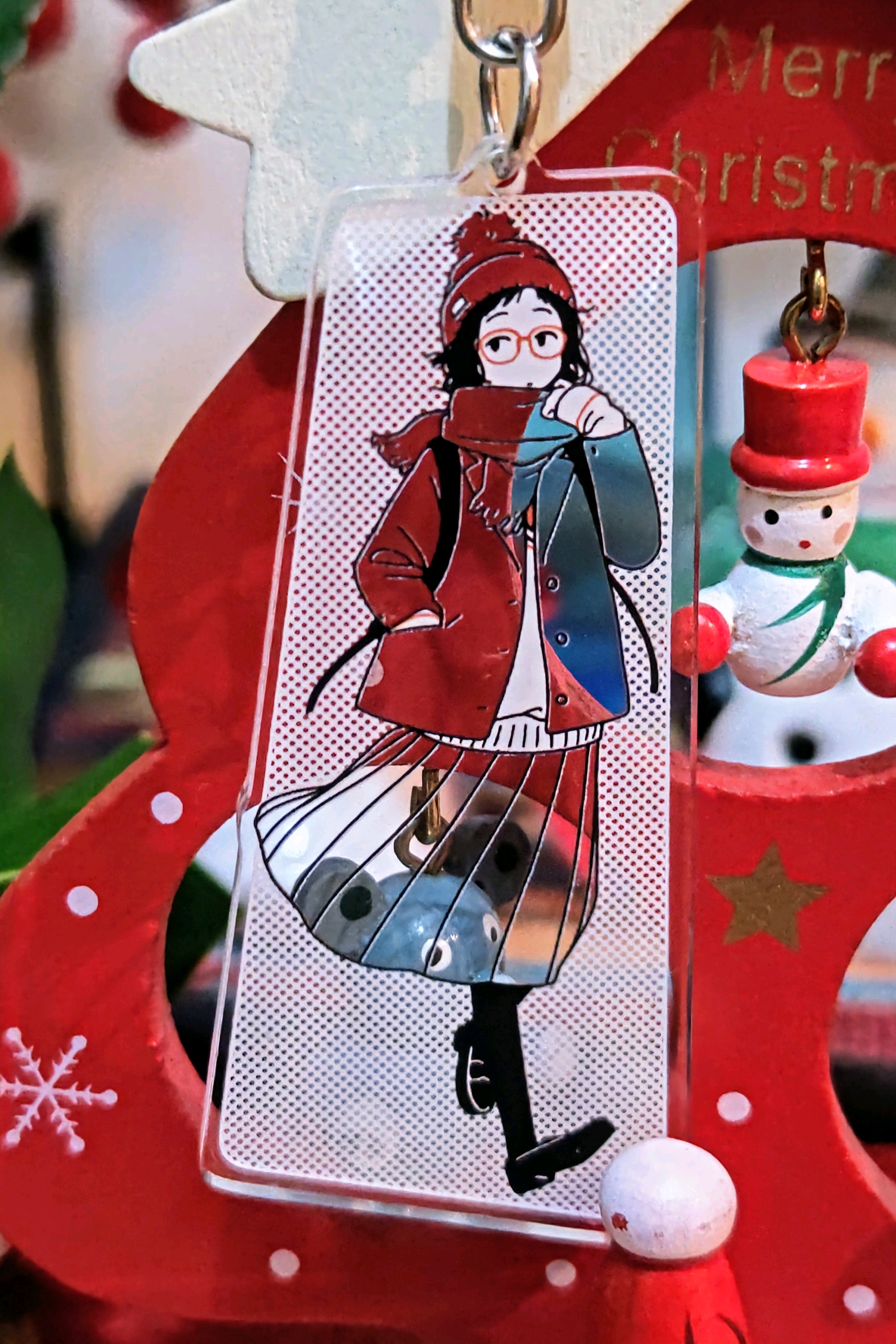 木製の赤いクリスマスツリーにクリスマスコスチュームのさくらちゃんを、あわせて。