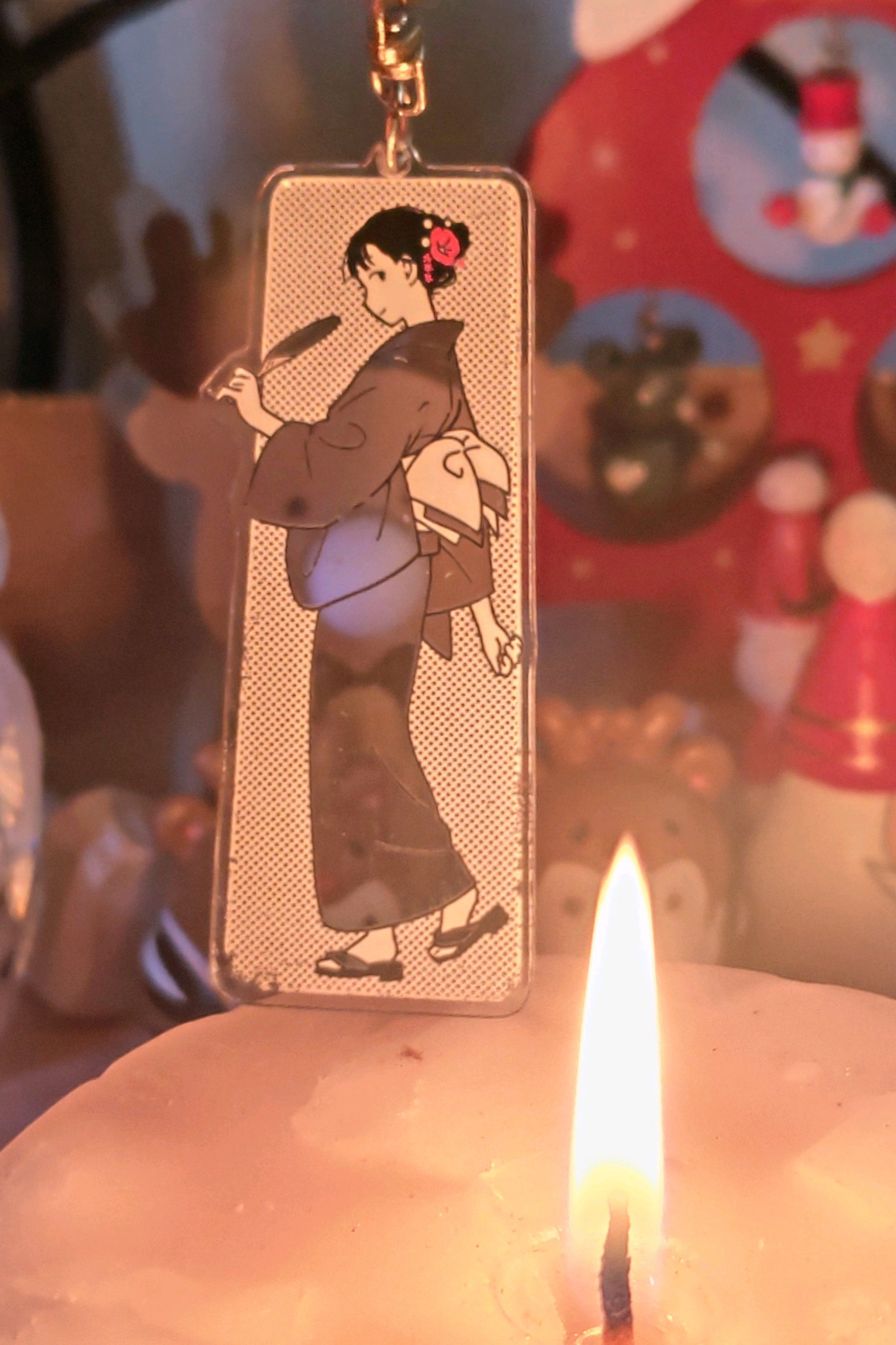 ぷっくりクリアステッカー、100均の赤い紙盆に飾って。