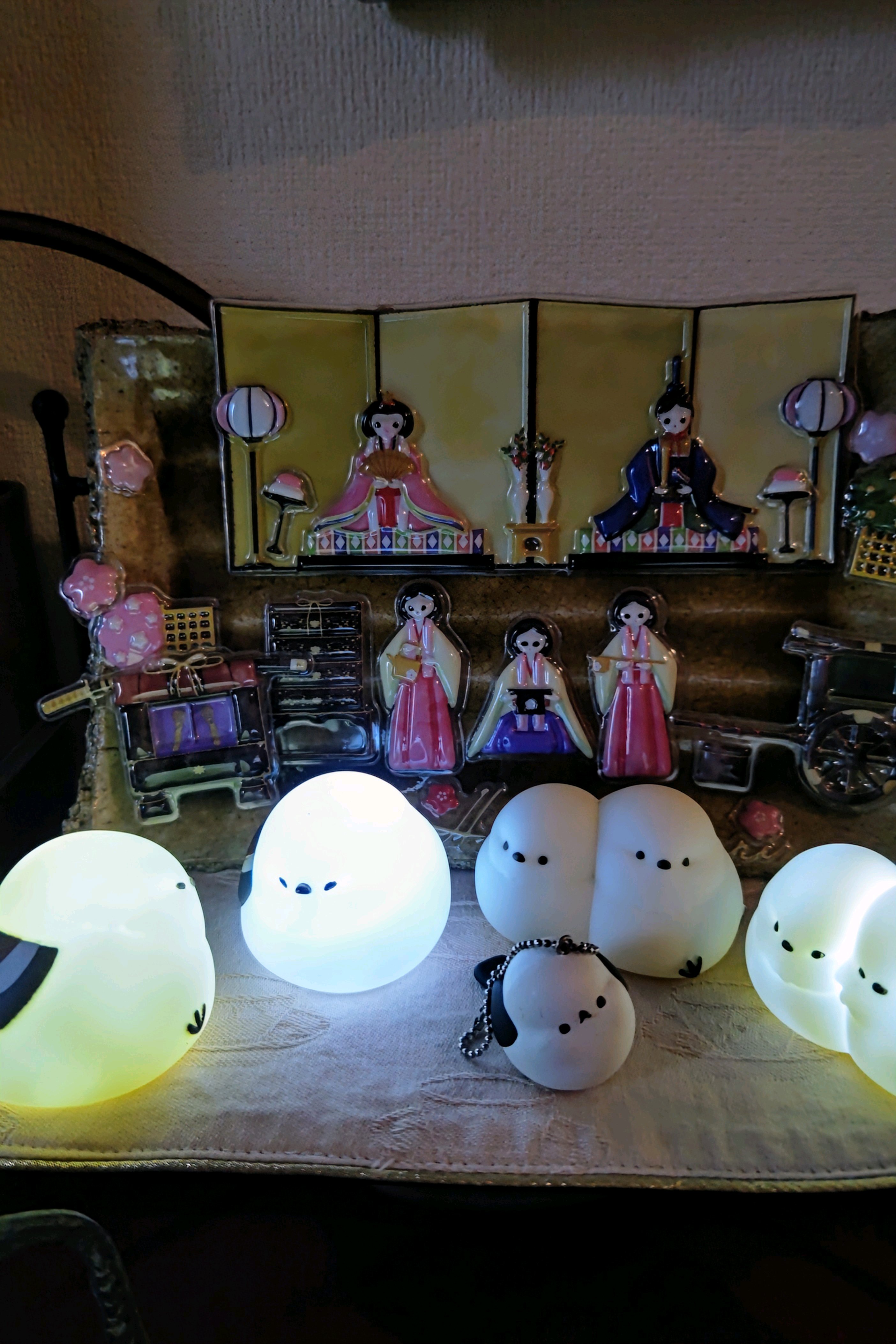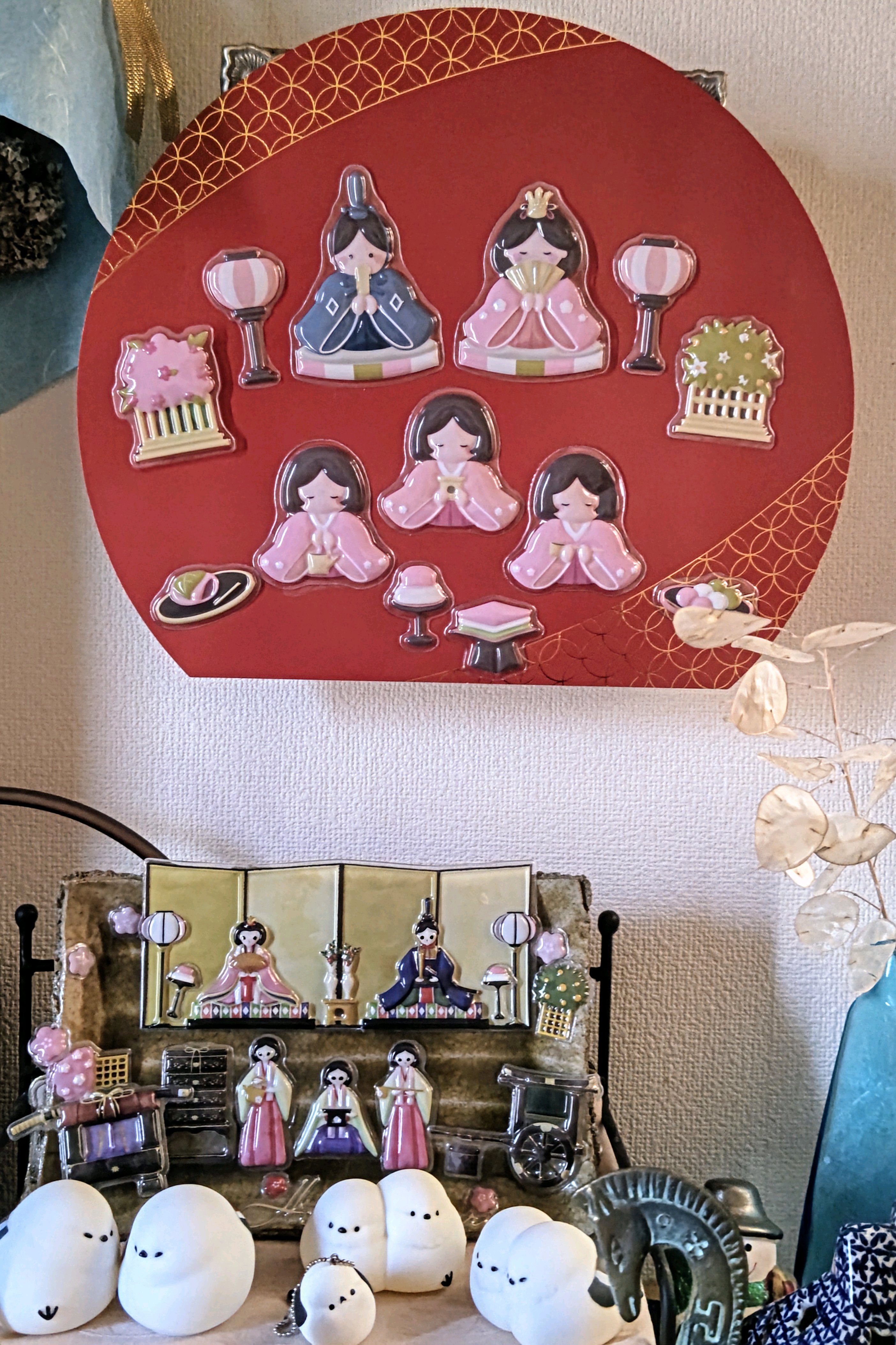 お雛様、100均のぷっくりクリアステッカーを長皿に貼り付けたもの。