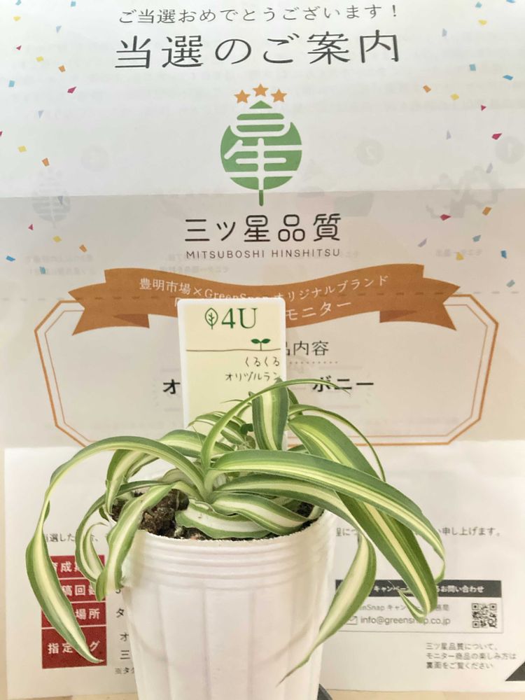 くるくるくるるカールのオリヅルランボニーちゃん、可愛いですね。