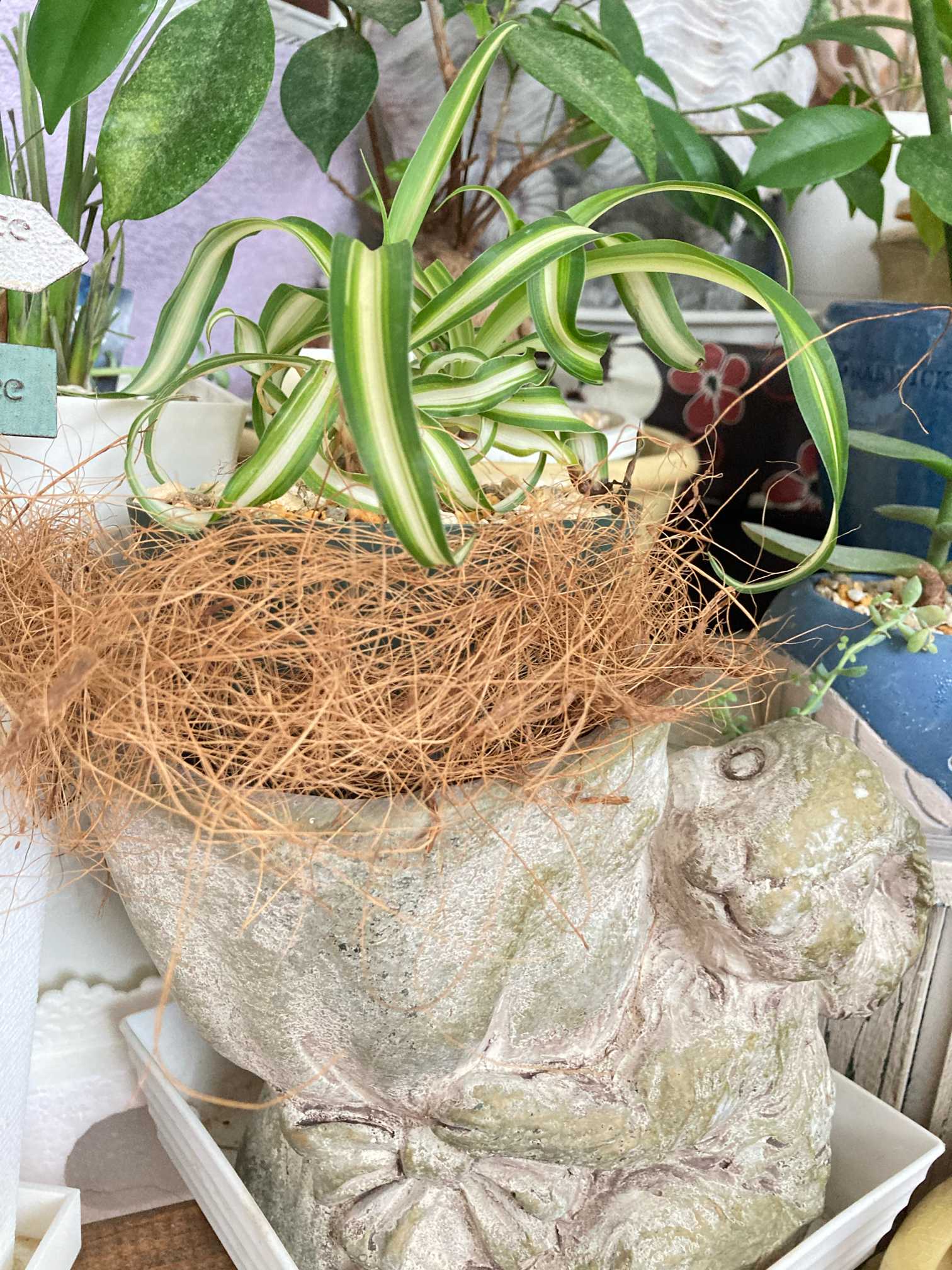 スリット鉢を隠したくて、ウサギさん鉢に入れたらフィットせず💦💦💦