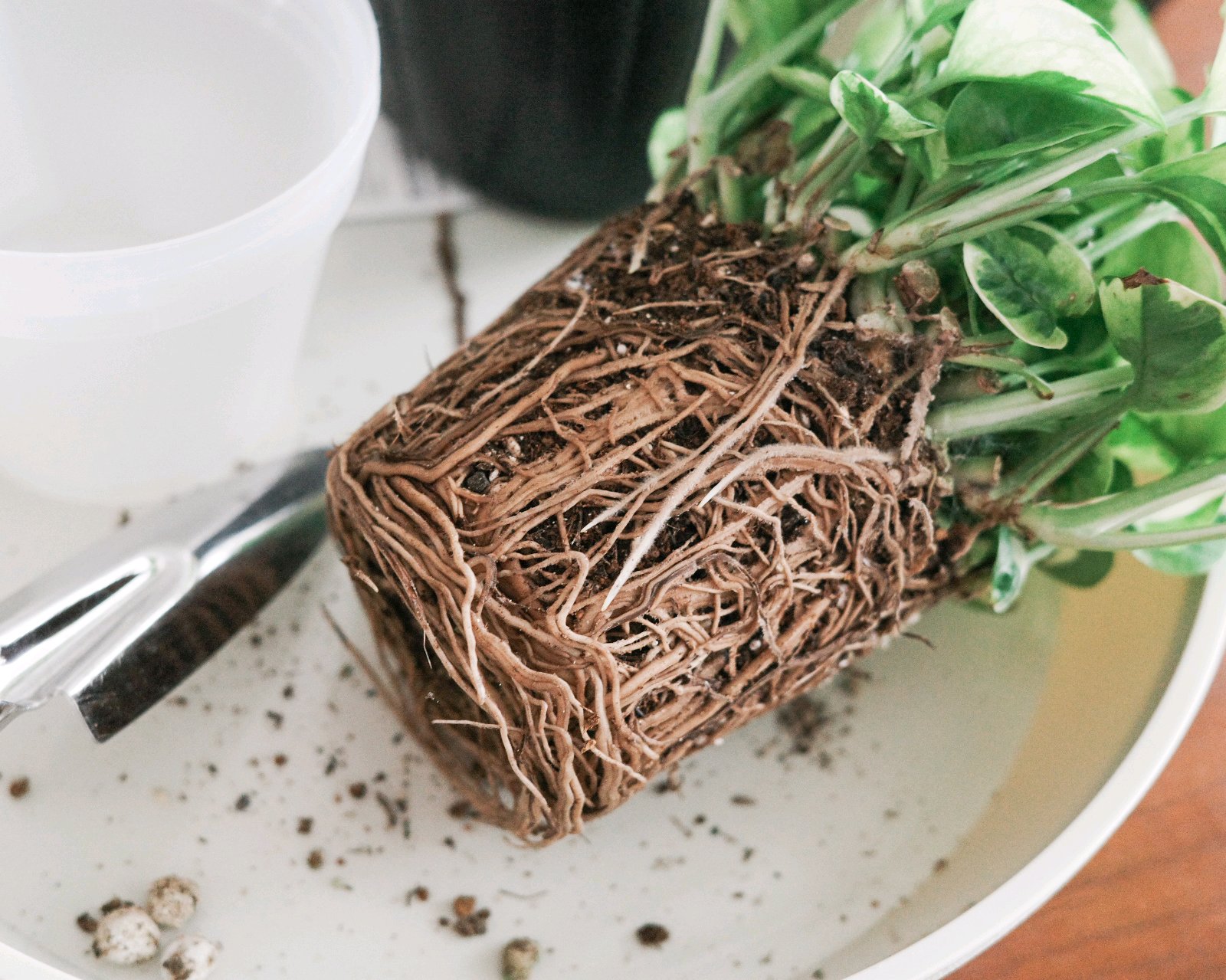 しかーし、元気にポットの中パンパンに根が回った良株だったもんですから、同じ3号には入らず、あわてて引っ張り出してきた3.5号に少しだけ観葉植物の土を足して鉢増しすることにしました。