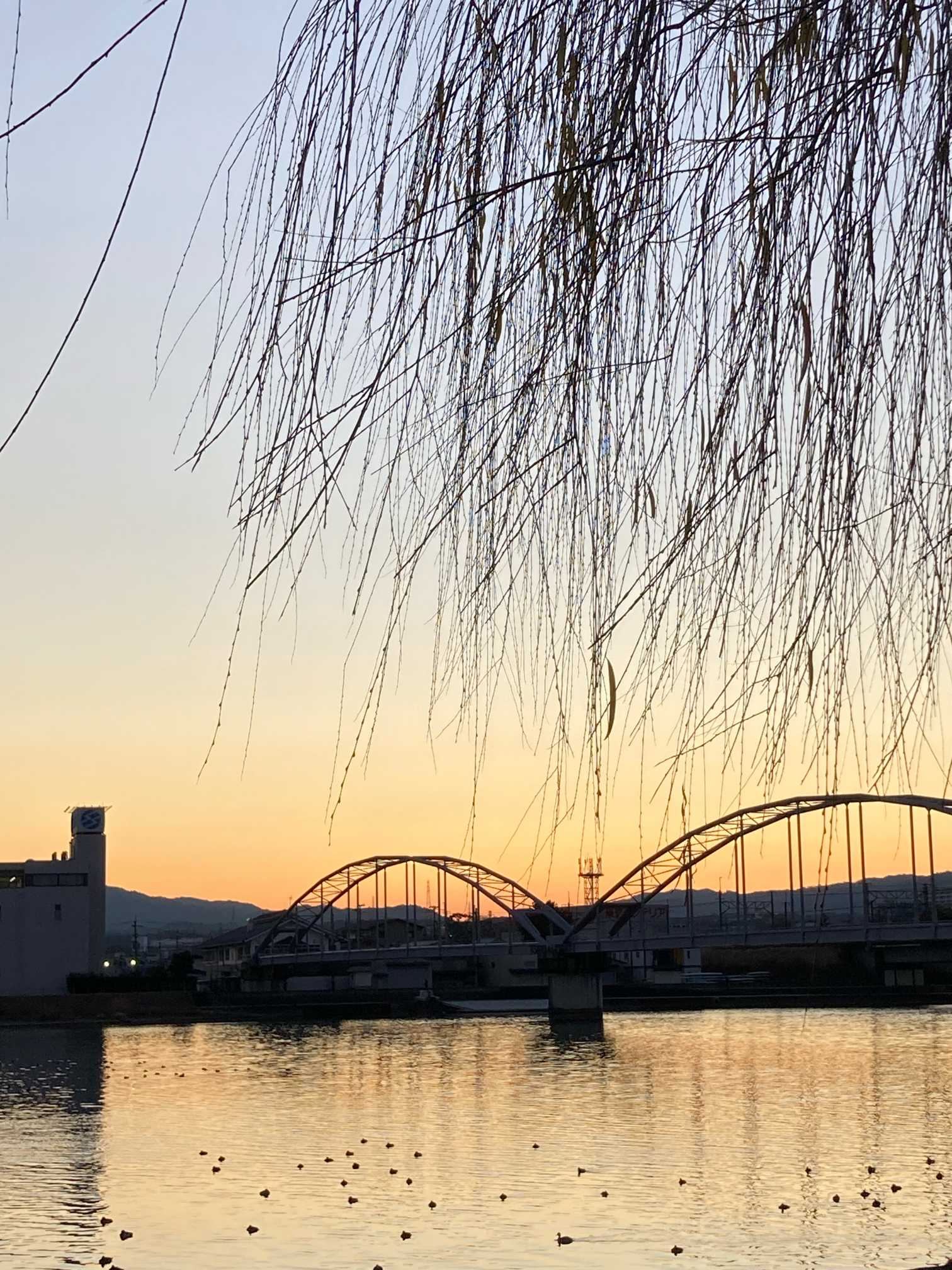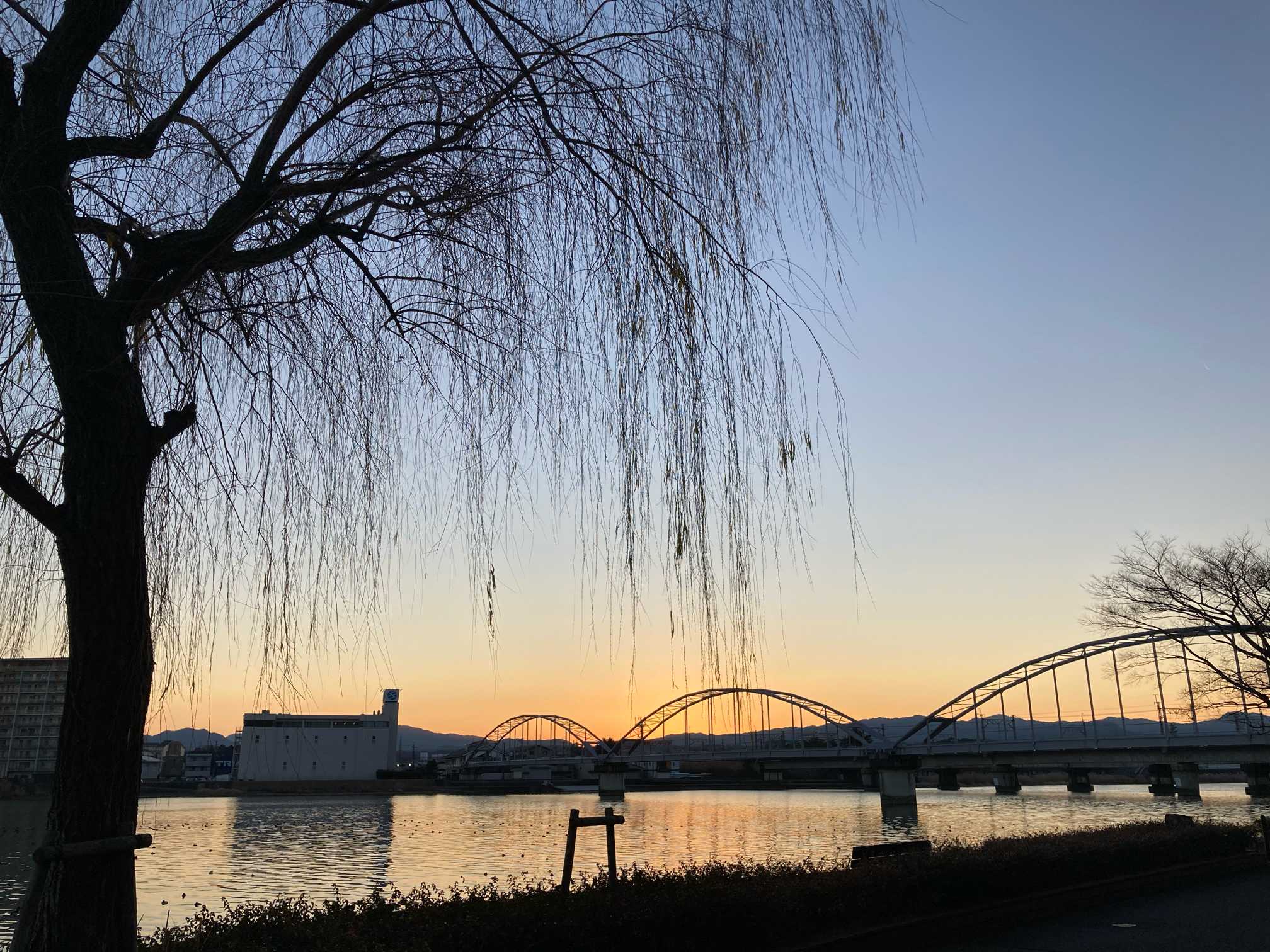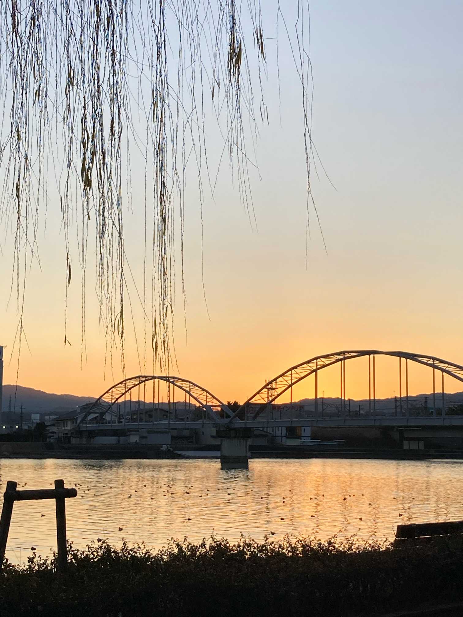 ✨️鉄橋とヤナギと朝焼け 6:59