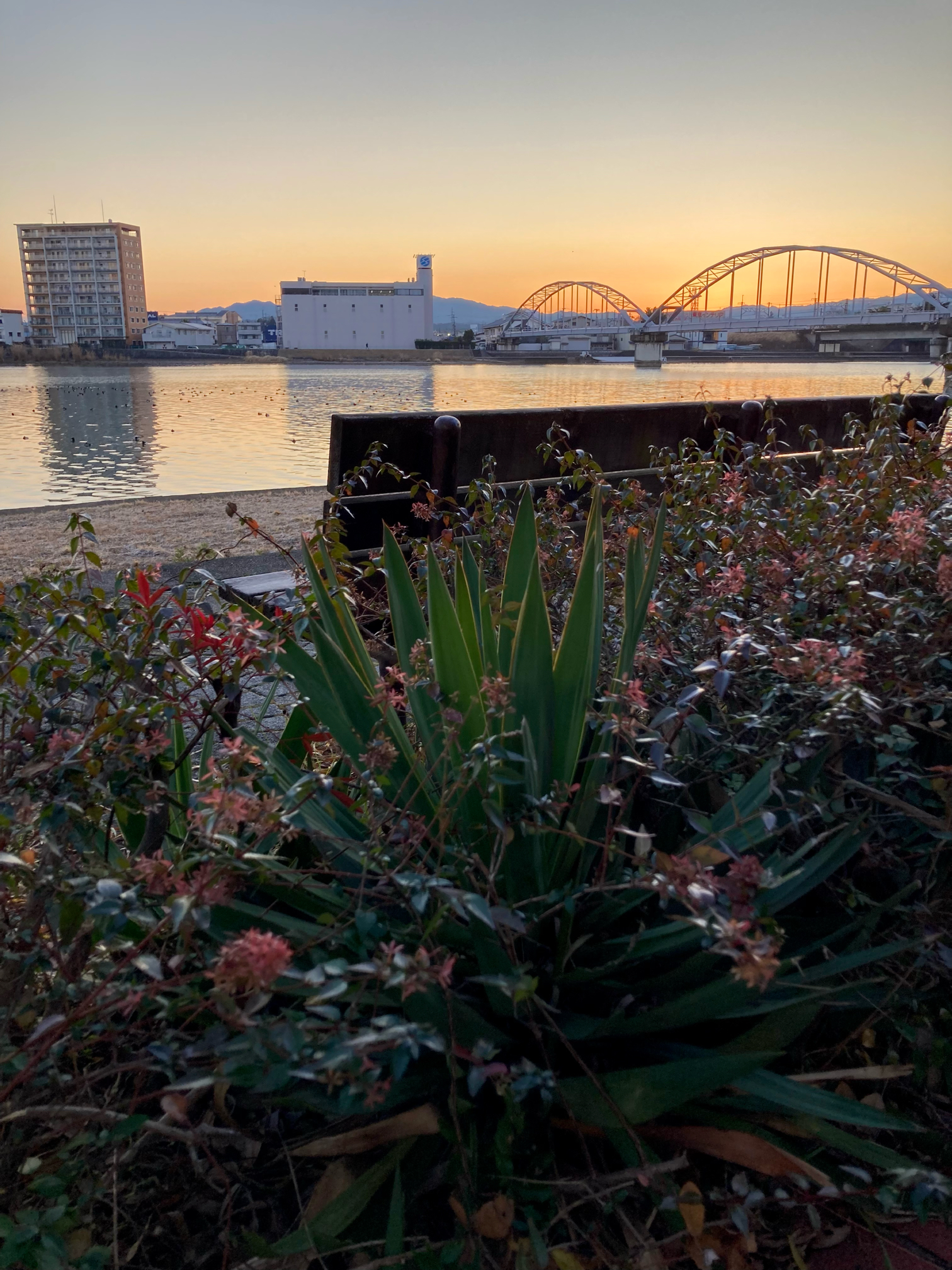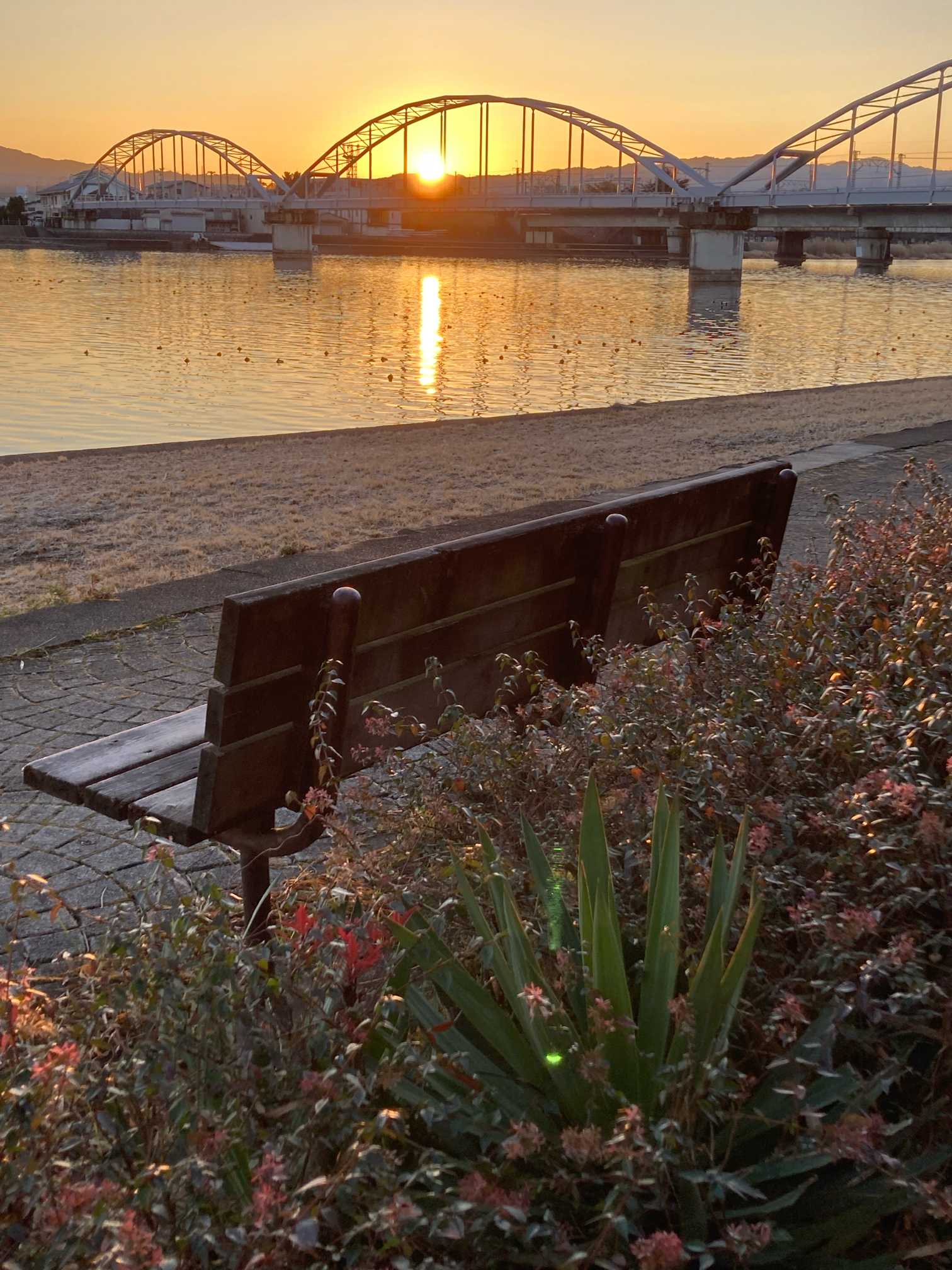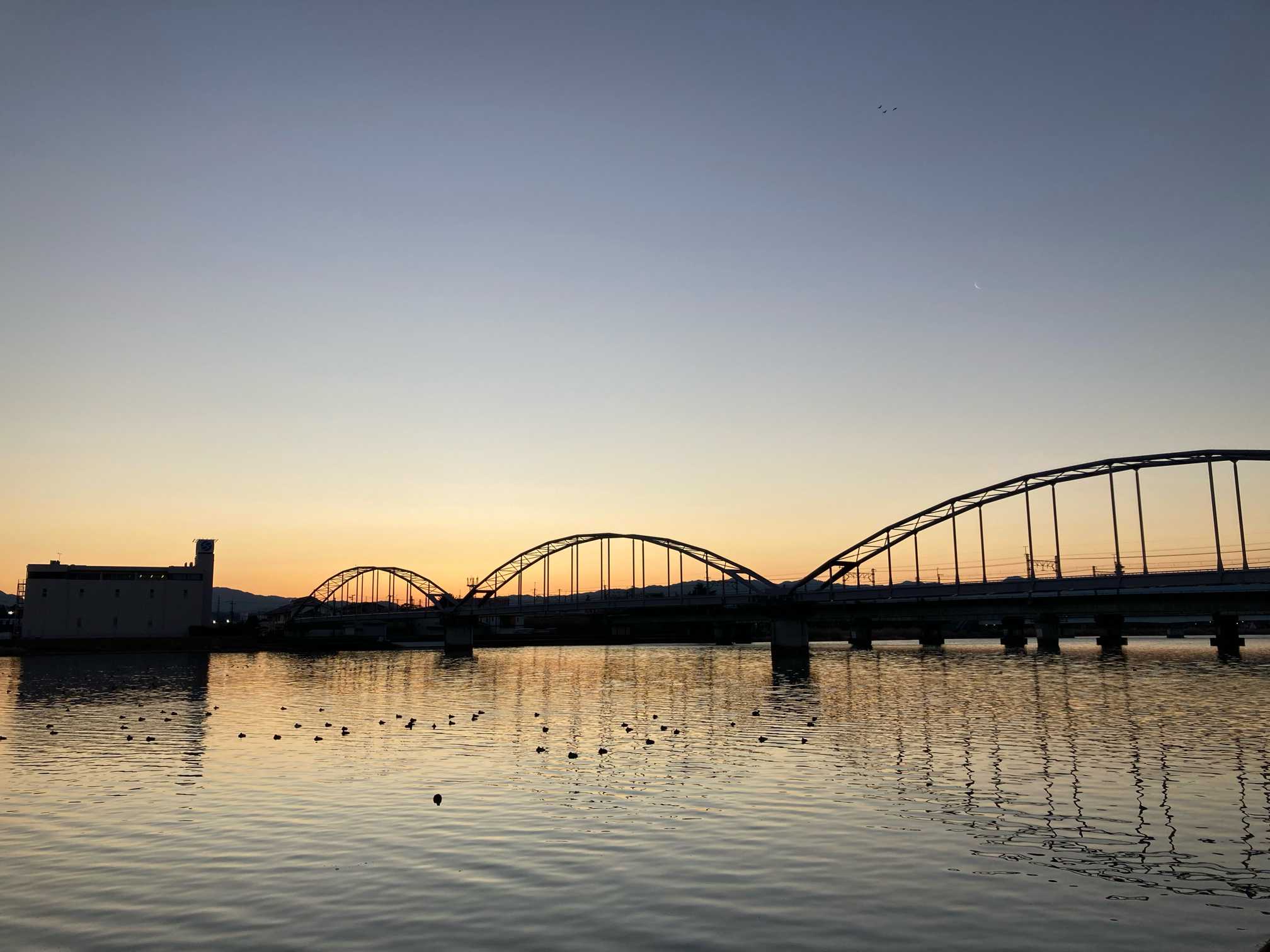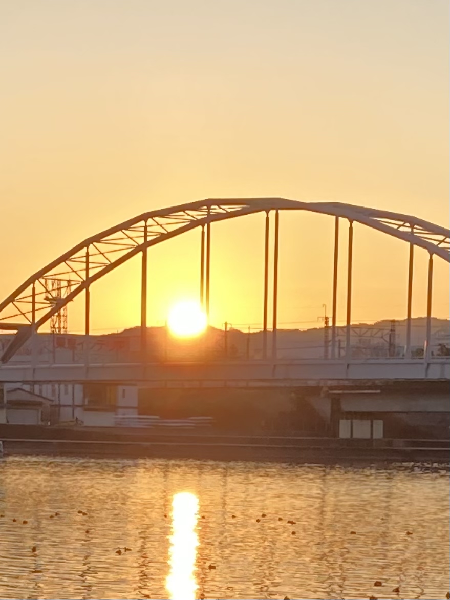 ✨️鉄橋とヤナギと朝焼け 6:59