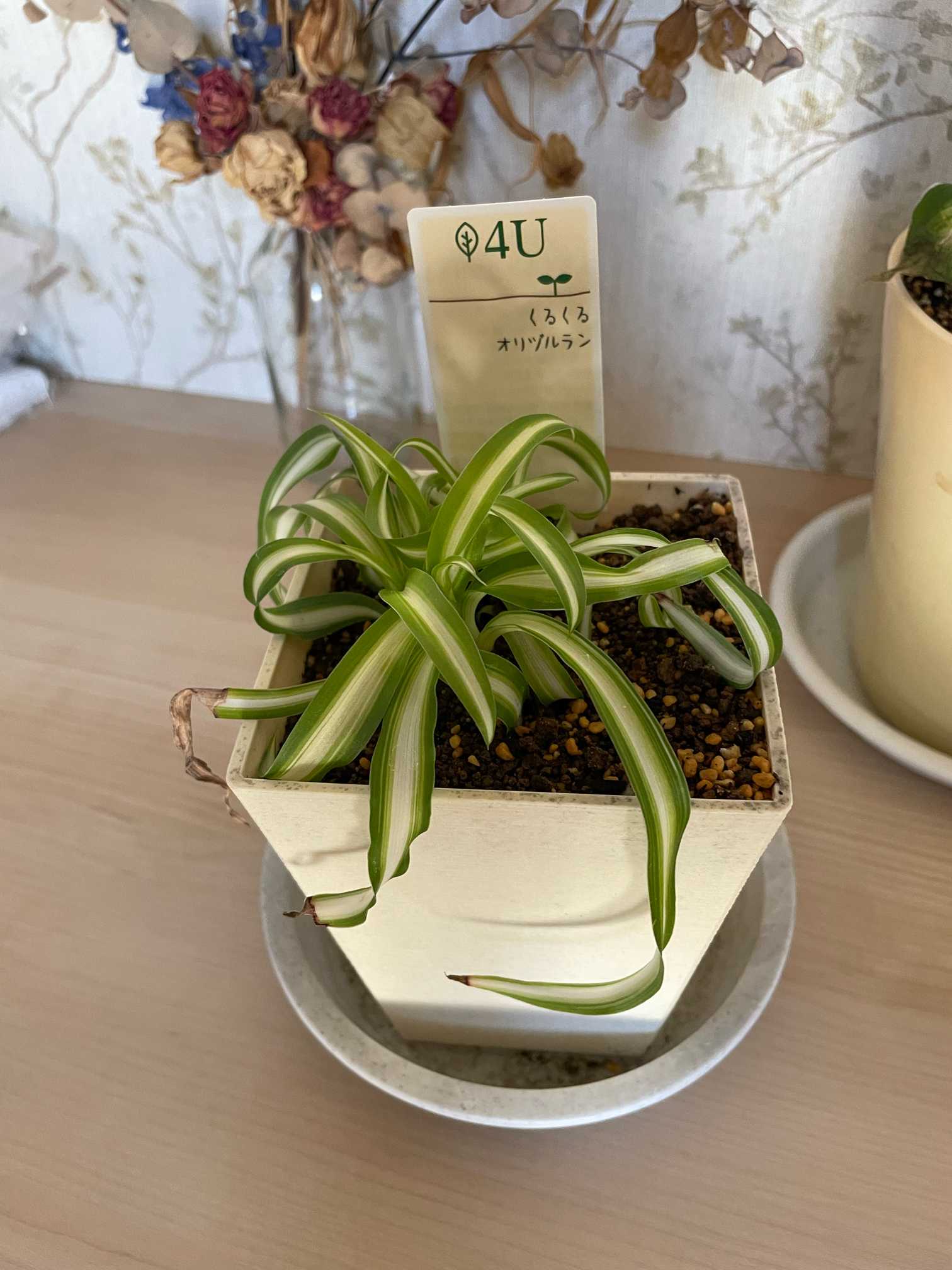 今回届いた植物も斑入りで可愛い「くるくるオリヅルラン」がいらっしゃいました🤗