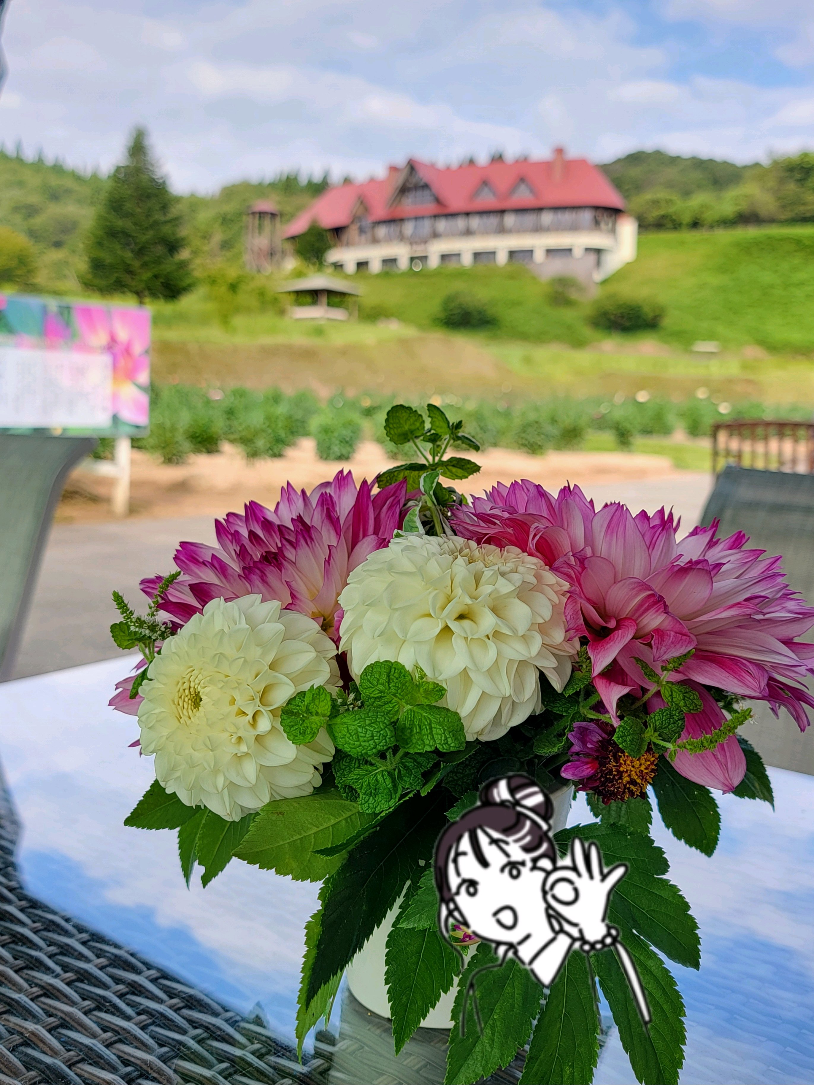ウエルカムフラワーとダリア園と青空