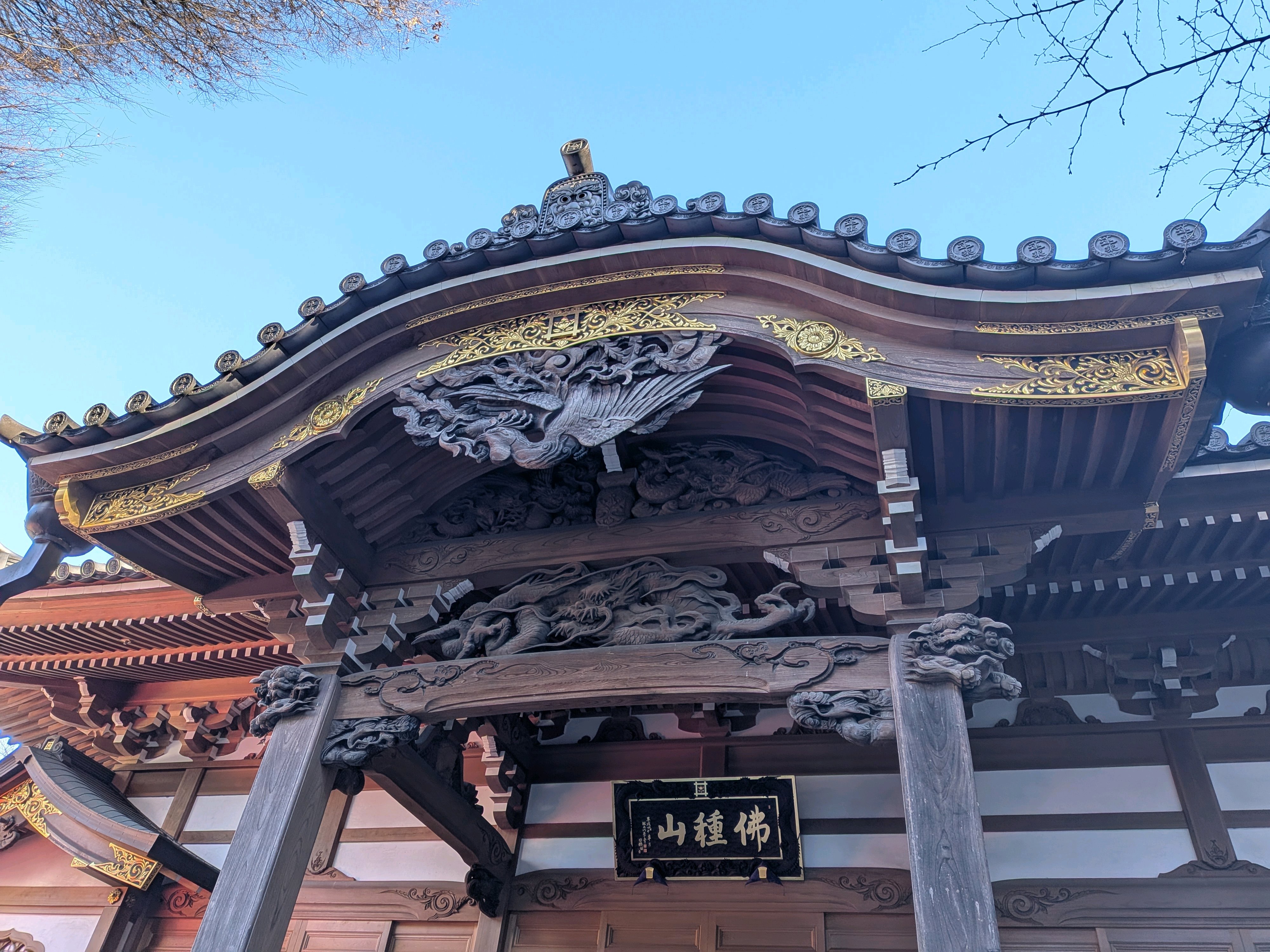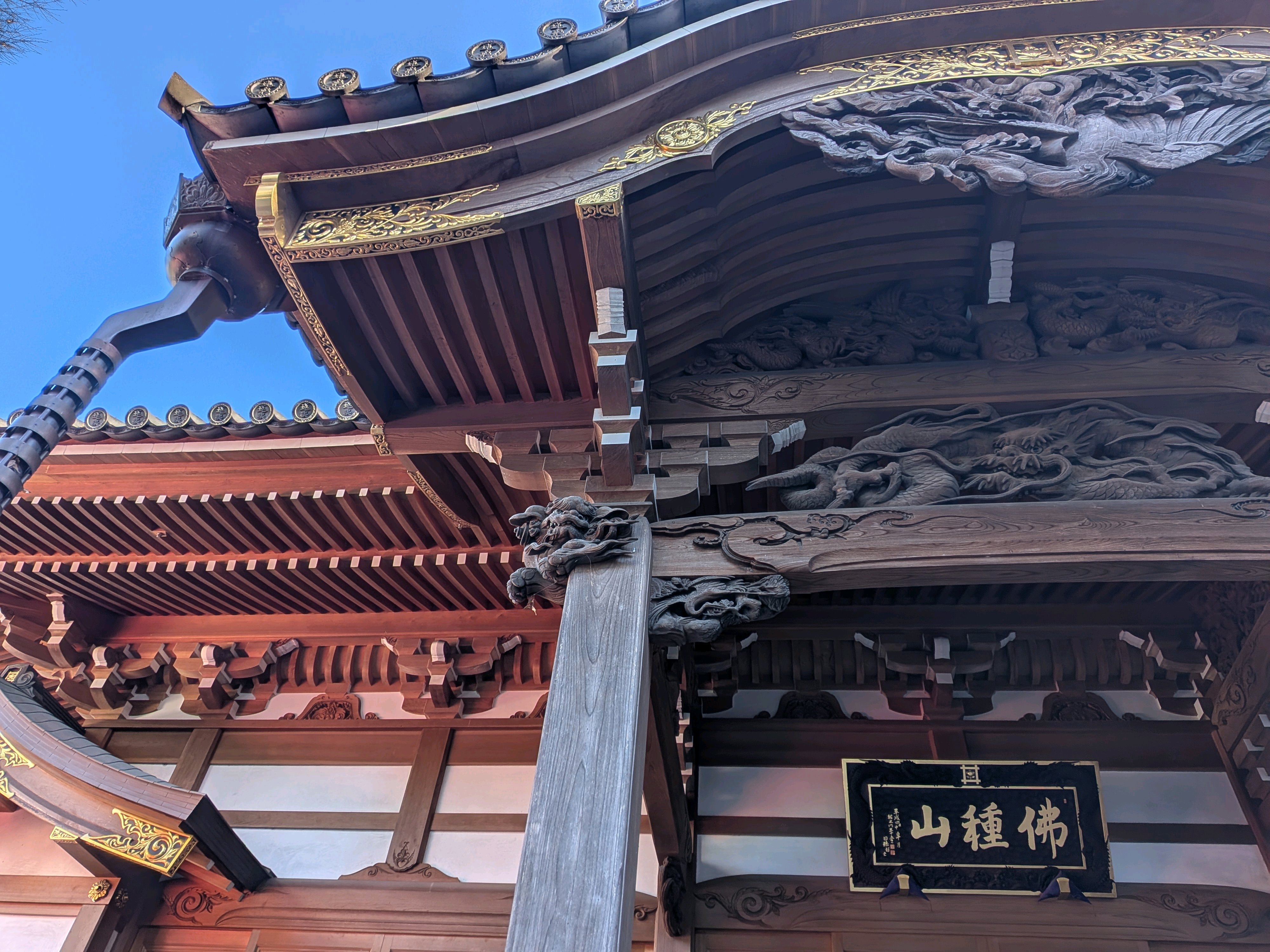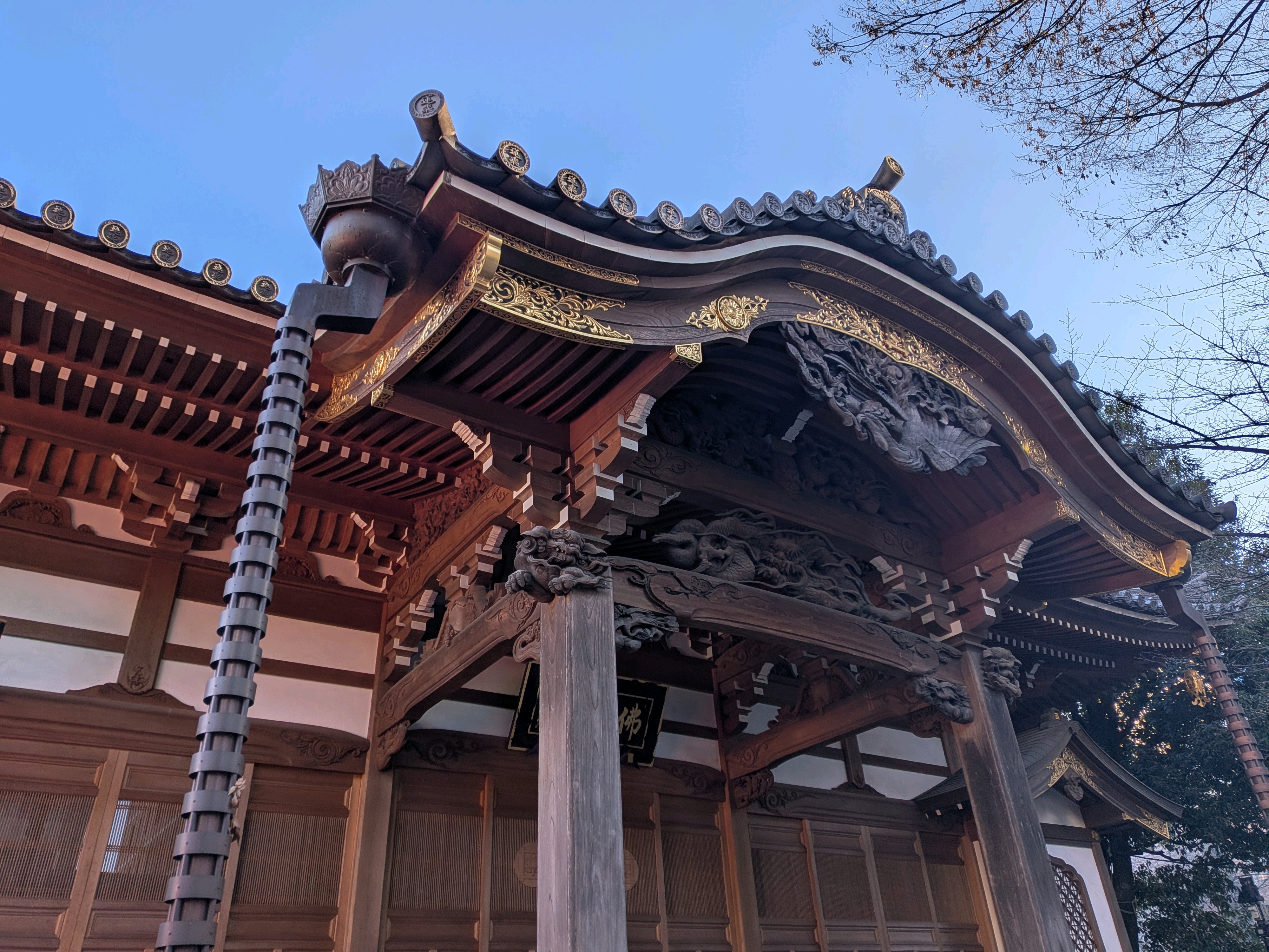 柱のうえに狛犬や龍がいた。